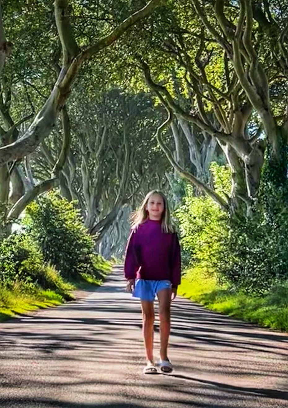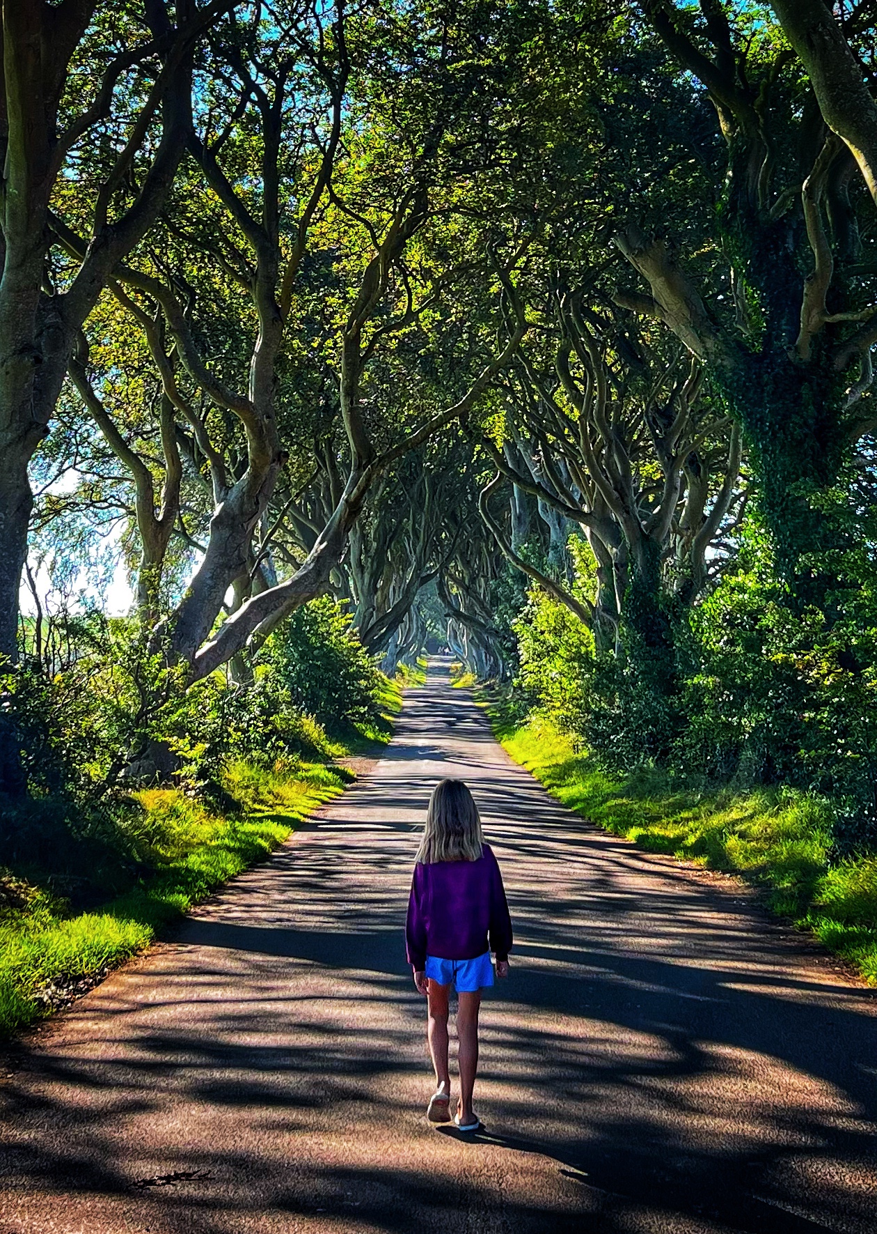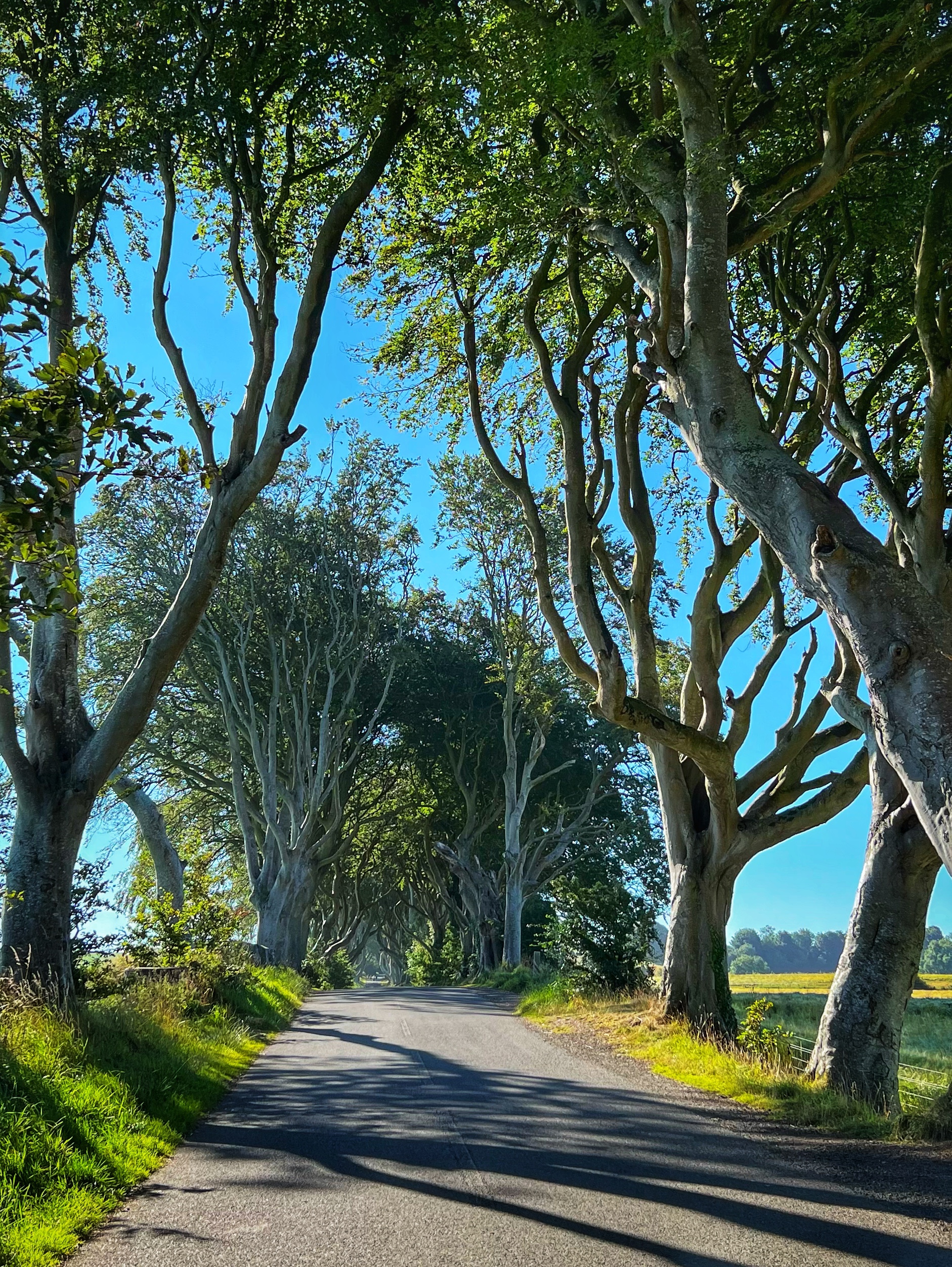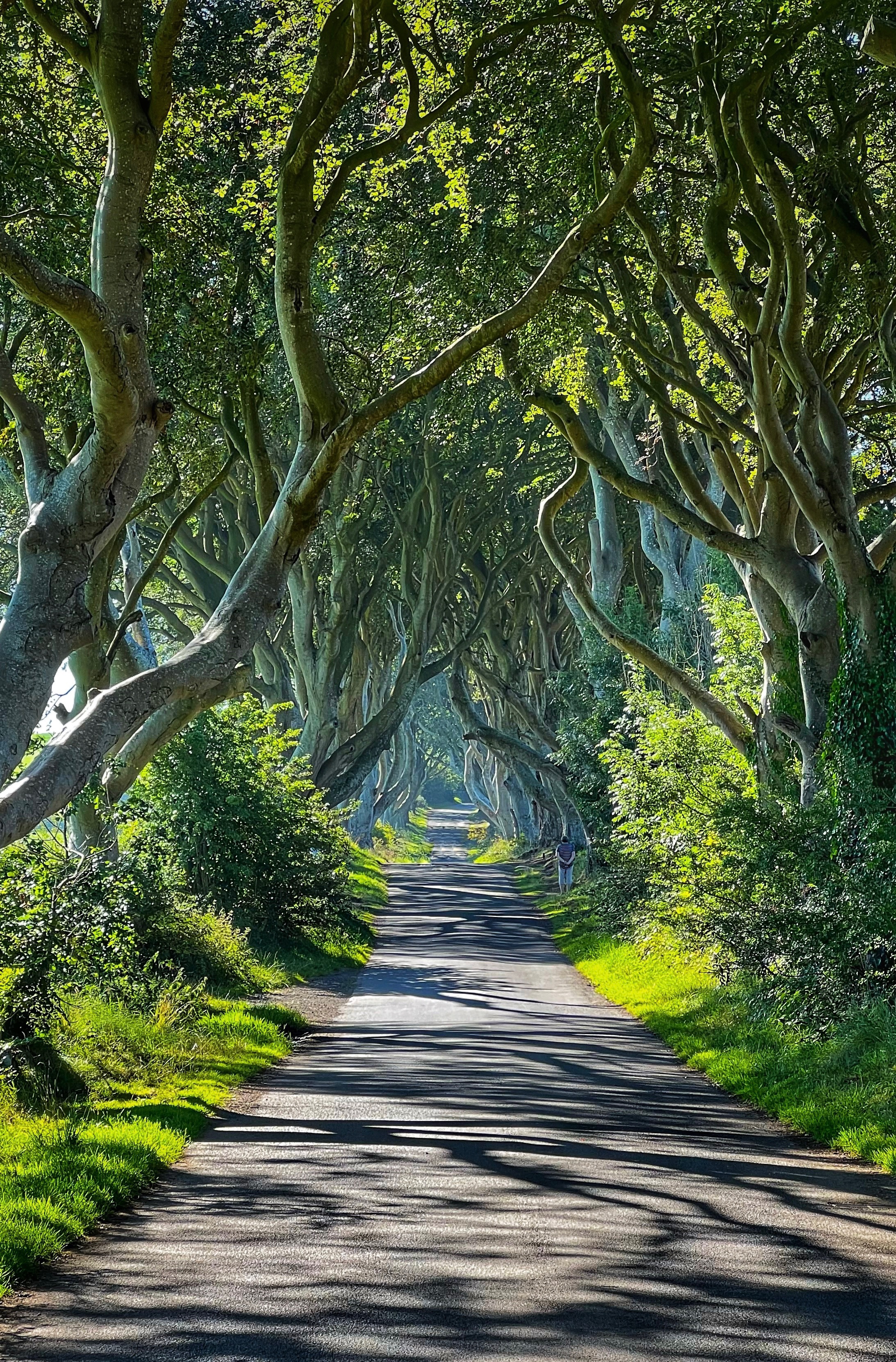 On day eight we left Belfast very early and drove about an hour north to The Dark Hedges. This was a must see, but only a pitstop on our way to the north shore and Causeway Coast. We arrived at about 9:30 and we were surprised to find almost no one in the parking lot. We expected this to be a fairly busy area, but apparently it doesn’t get busy until mid day with tour buses, and after all, it was a Thursday. The luck of the Irish struck again, and we were strolling down this infamous lane of beech trees all alone. From the car park it takes about 5 minutes to walk to the Dark Hedges lane, and it’s free to visit, but no vehicles are allowed to drive down the lane any more. These “hedges” were planted by James Stuart in 1775, making each of these trees older than the USA! They were popularized as a filming location for Game of Thrones – as were several other locations we visited this day. We spent less than an hour here, and then headed north.