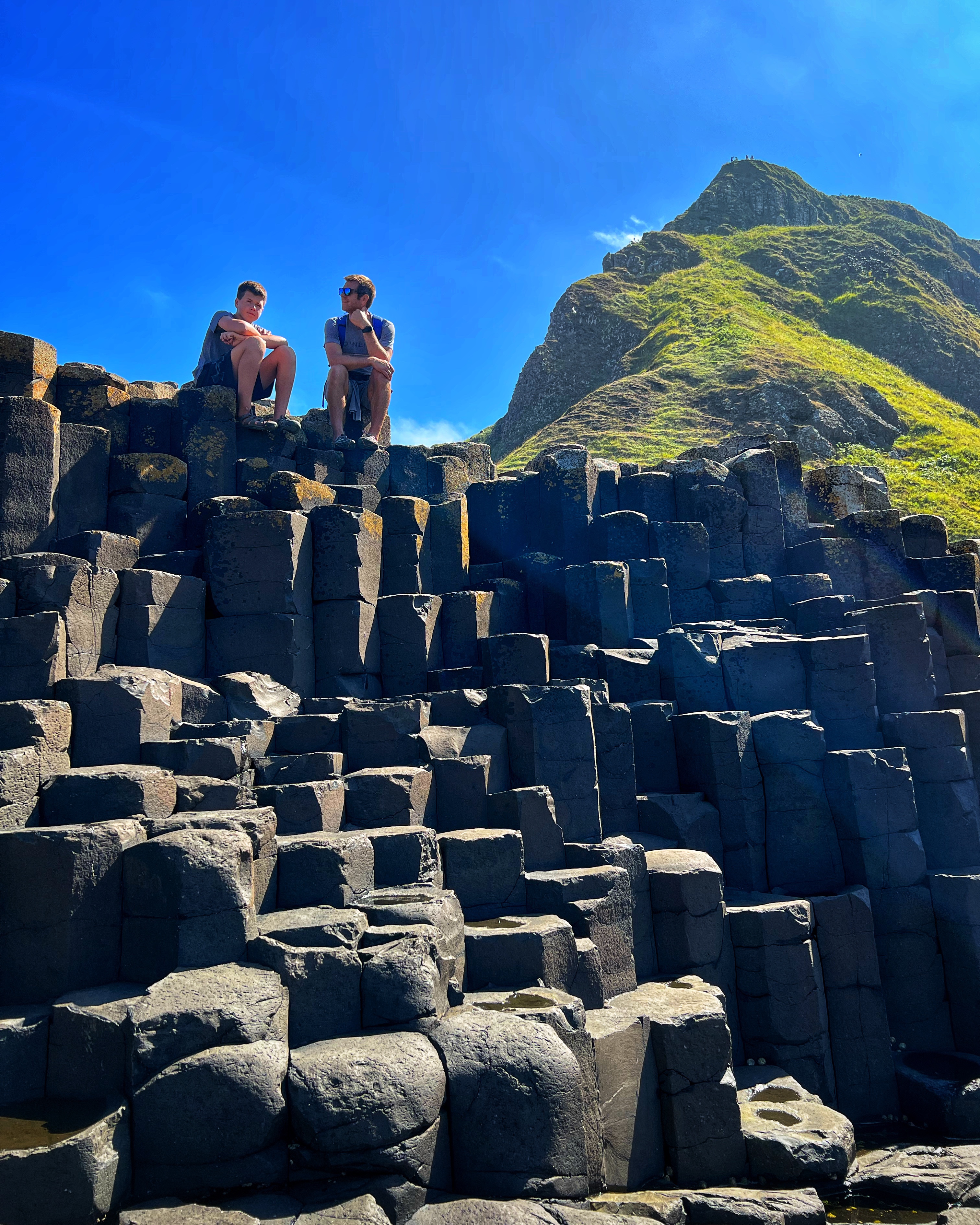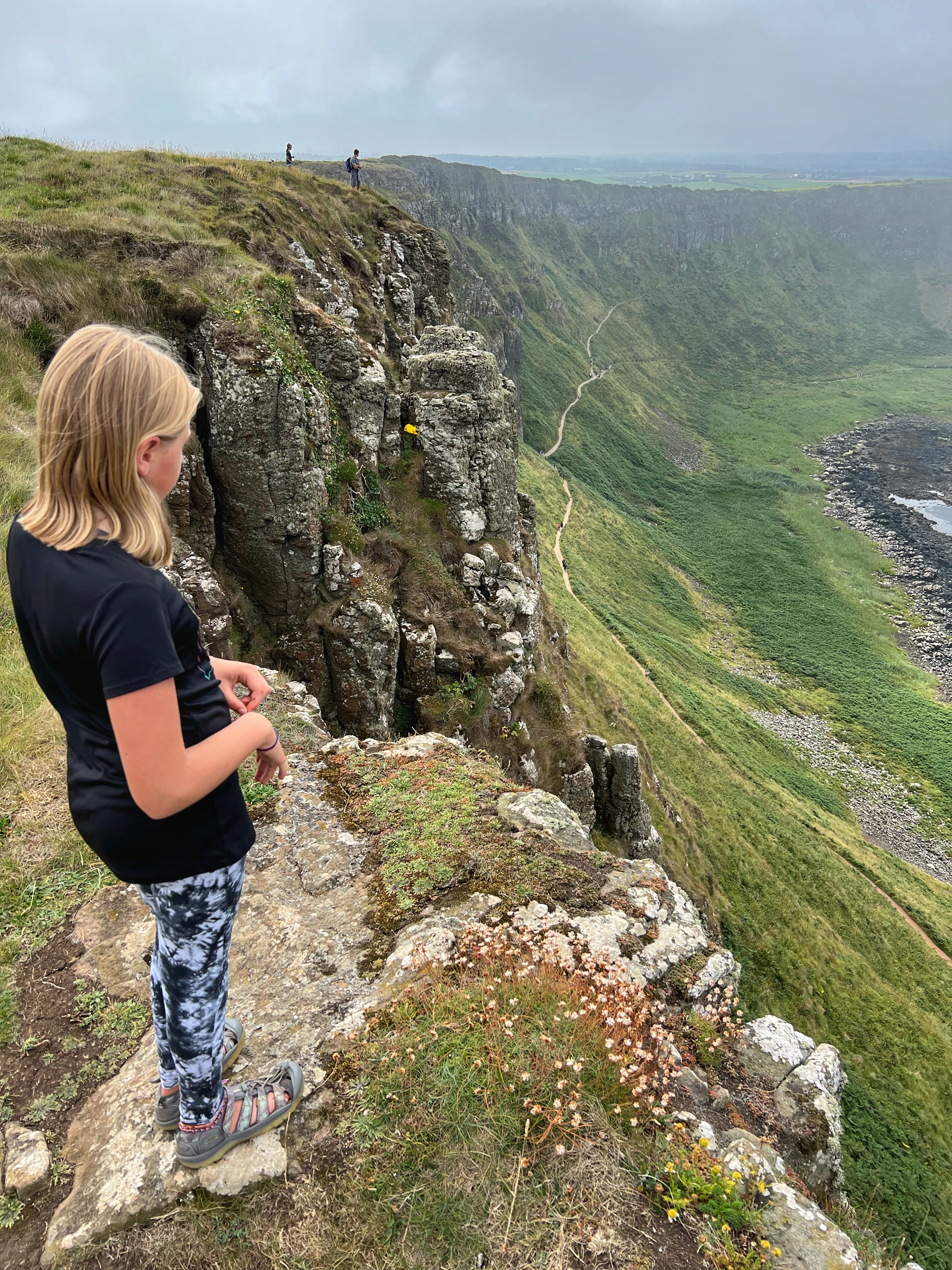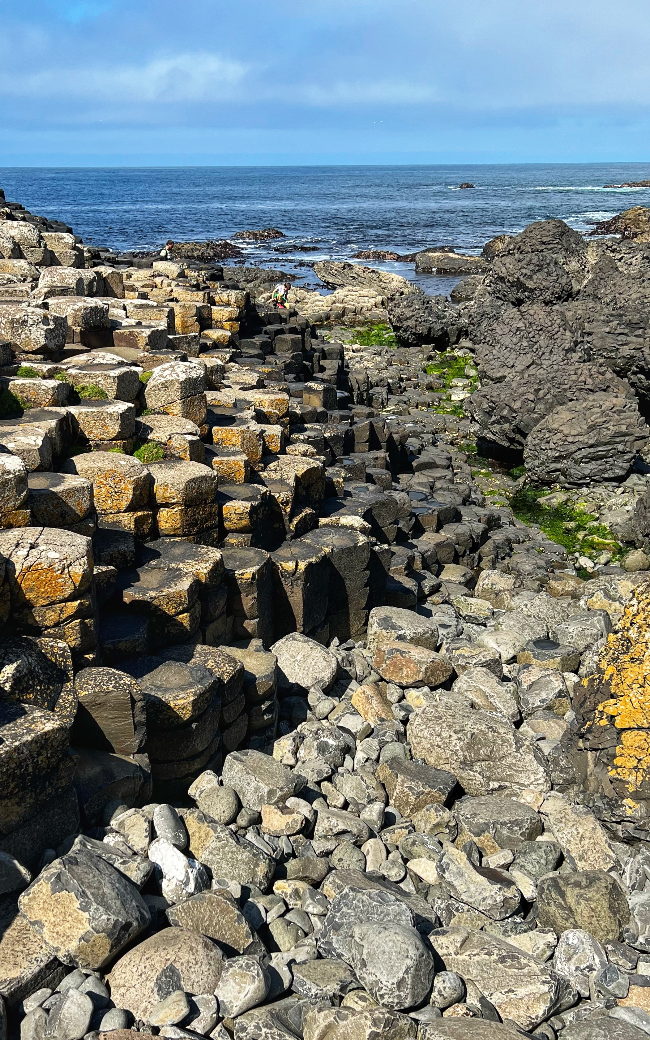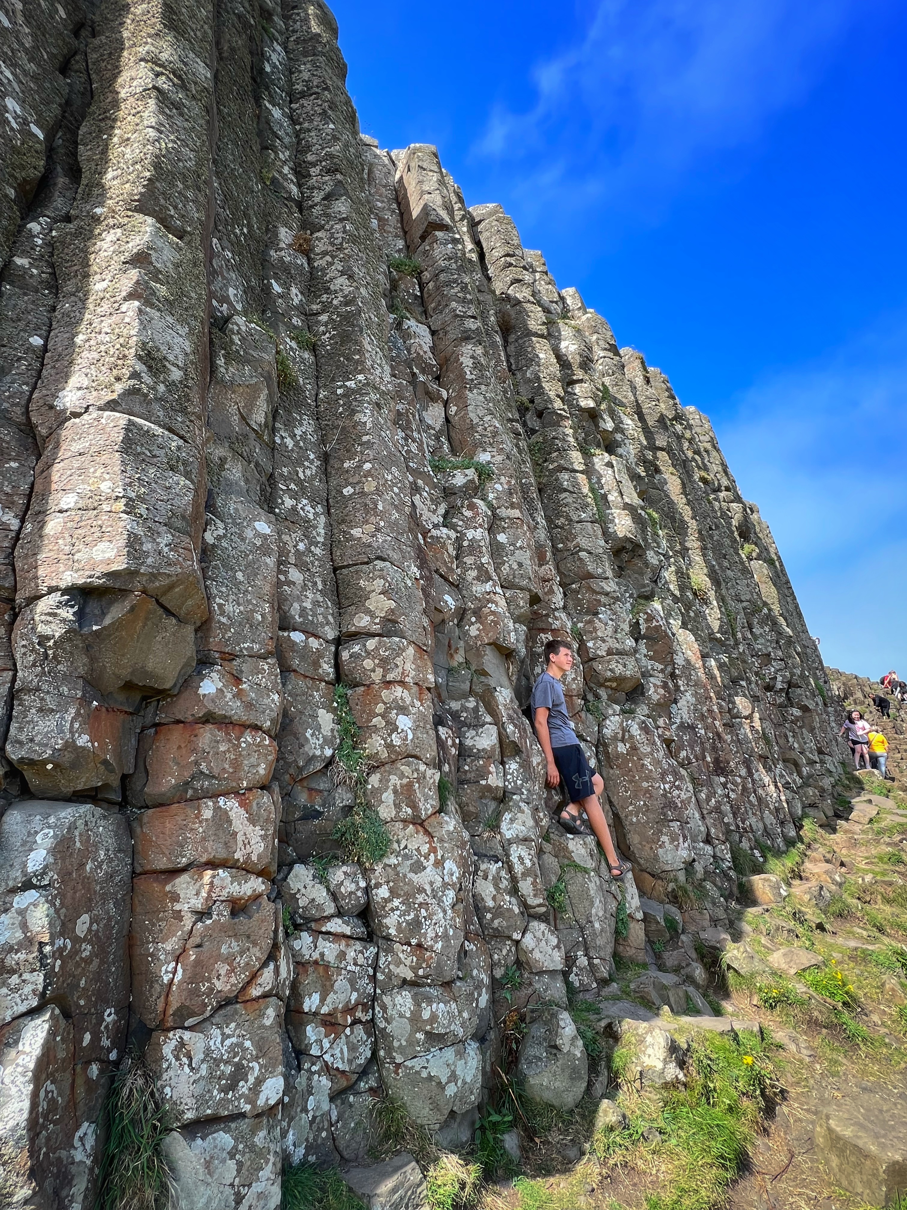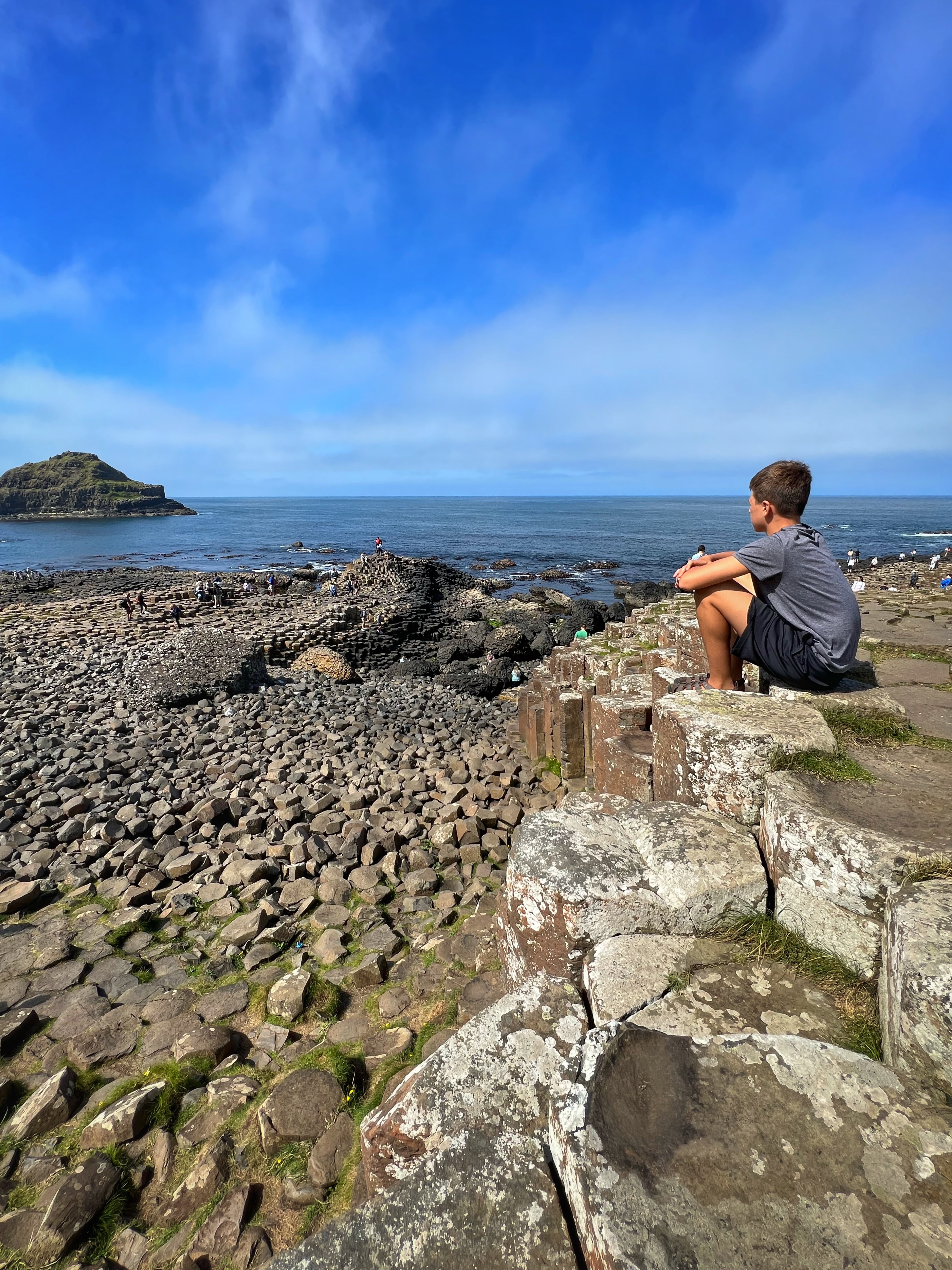 We also downloaded the free Giant’s Causeway app and listened to the little stories at various points with the kids. It was fun to learn about the lore and stories of this magical place, including a ship wreck near the Amphitheater that held some of the most valuable treasures ever discovered. From the path along the cliffs, we walked down a very steep set of steps to the lower trails and made our way to the incredible Giant’s Causeway. This impressive collection of over 40,000 hexagonal basalt columns has been wowing visitors for centuries. They were formed when lava pooled and cooled in just the right way, and this isn’t the only place on earth these kinds of formations can be found. They are also in Iceland, Scotland, Canada, and many other places around the globe.