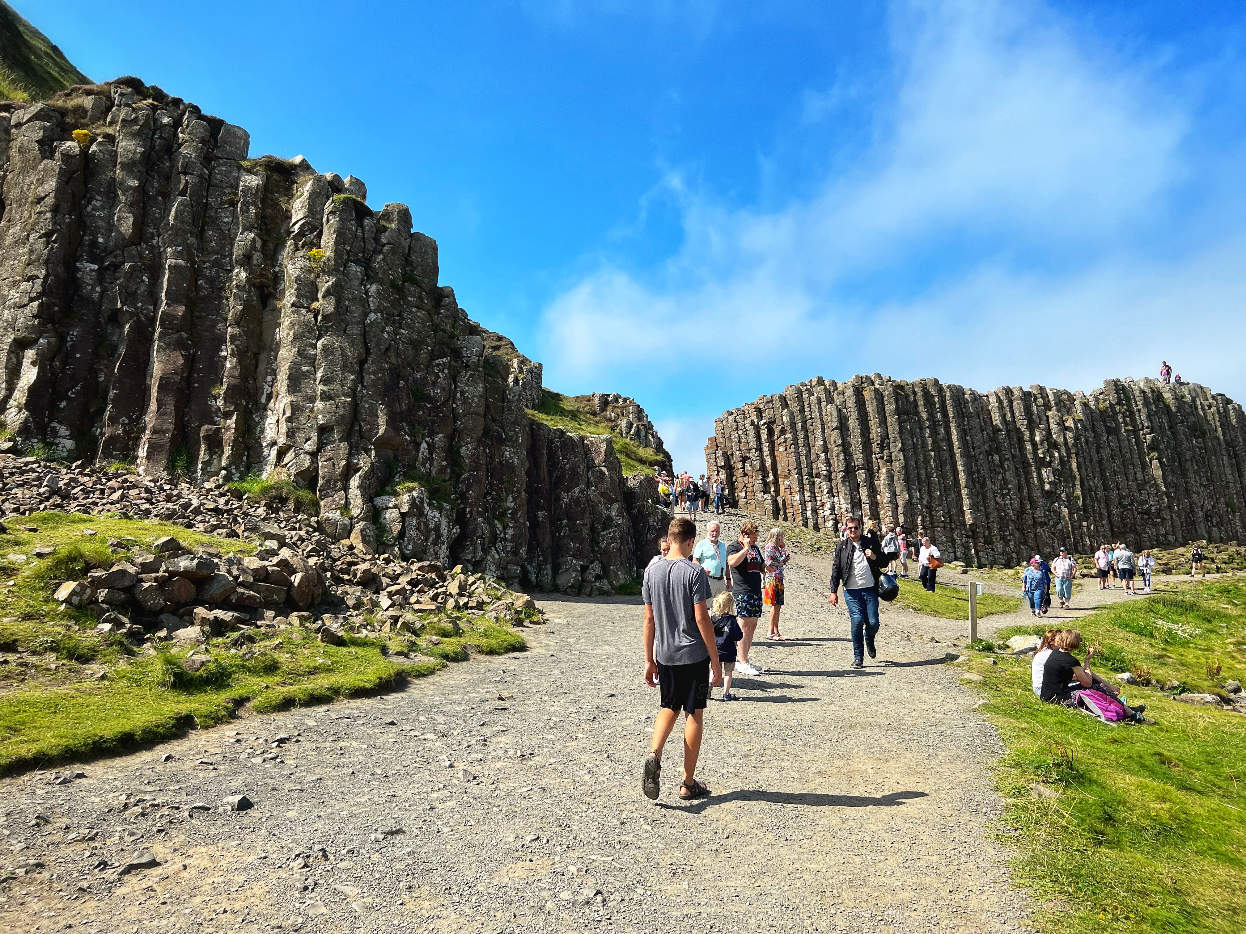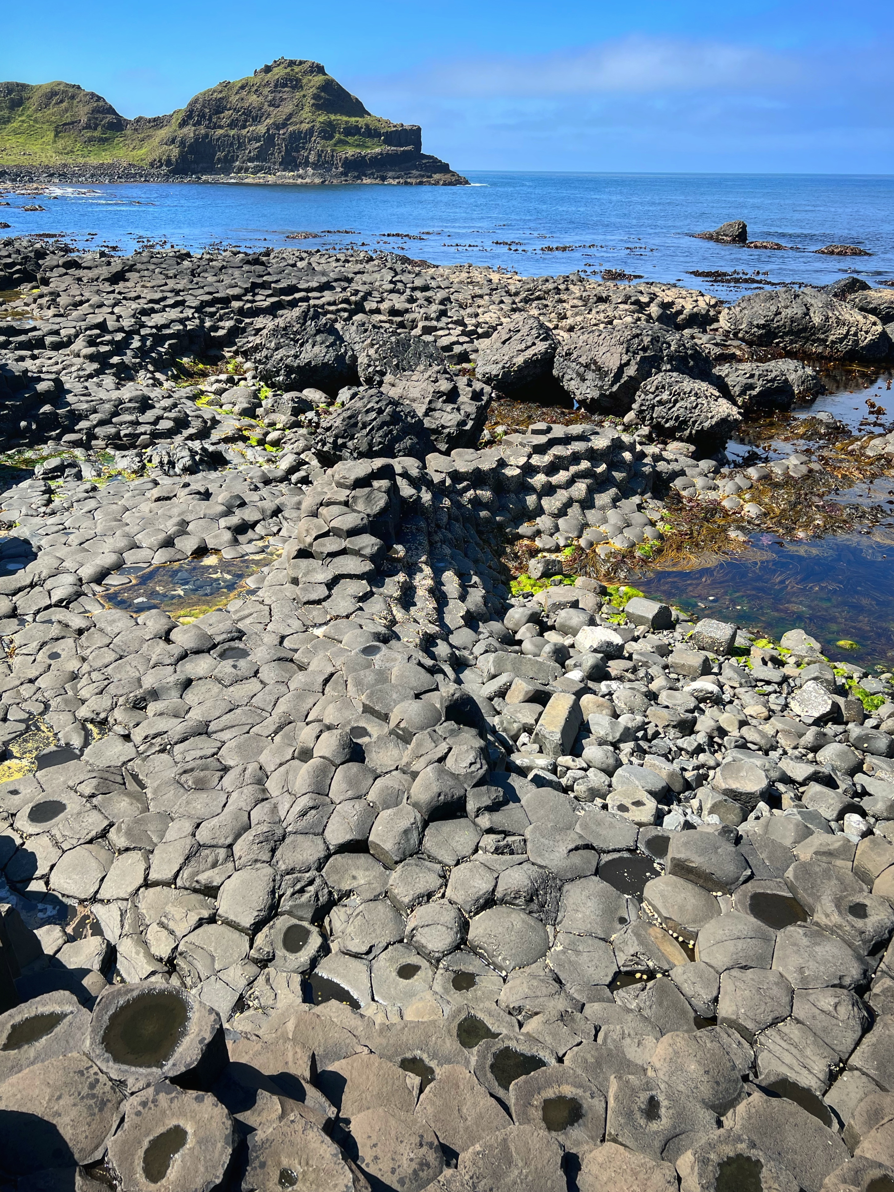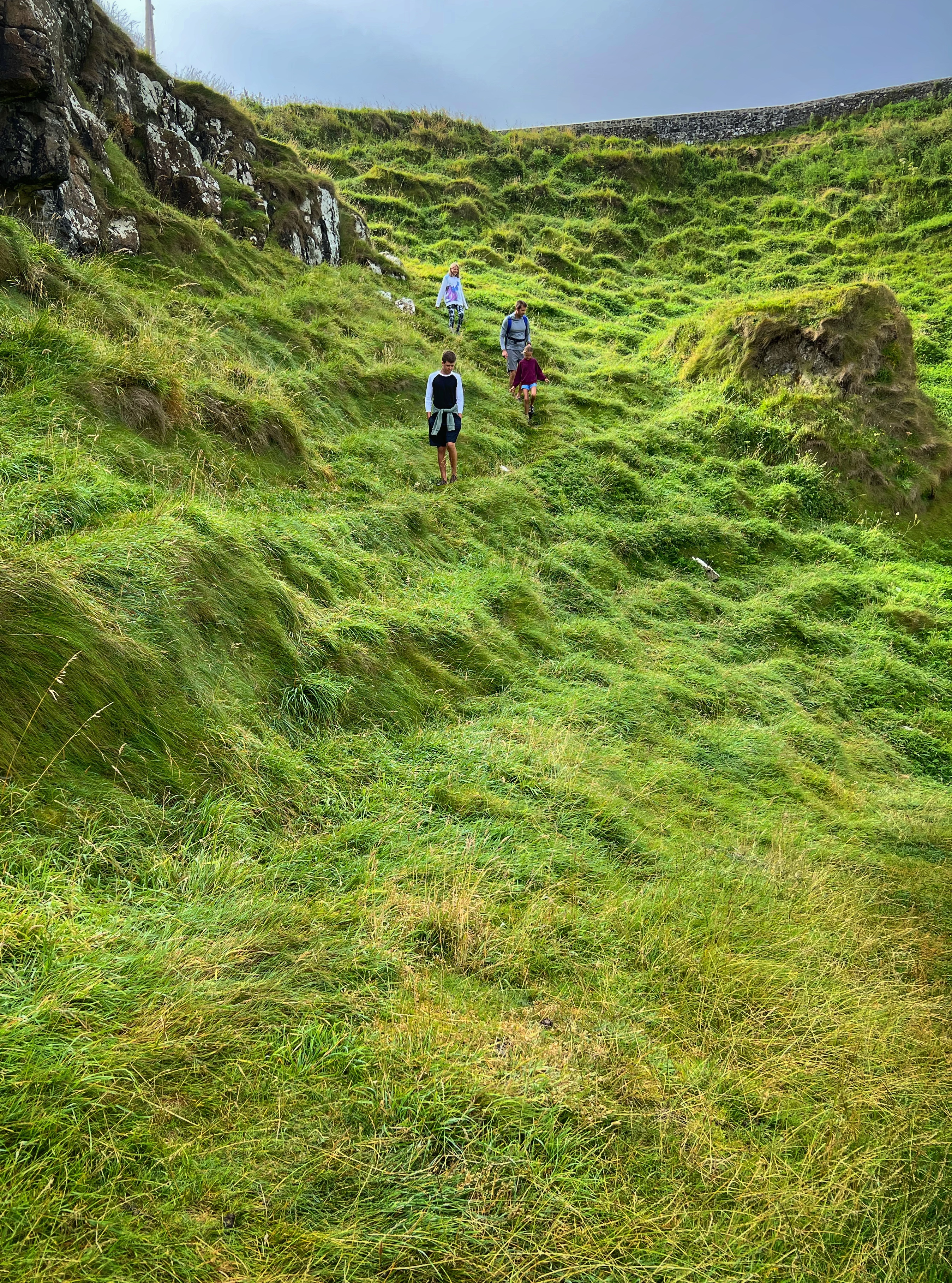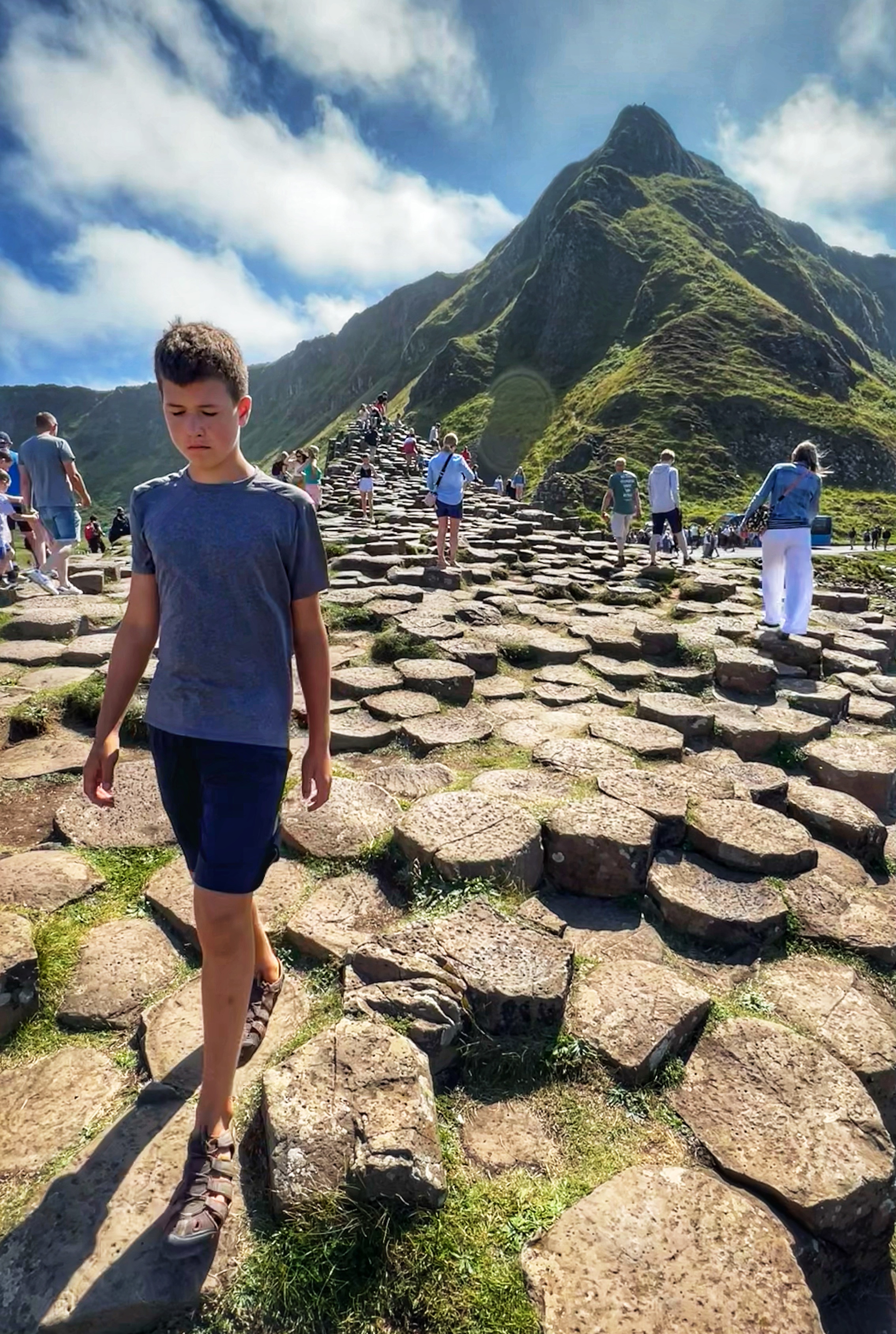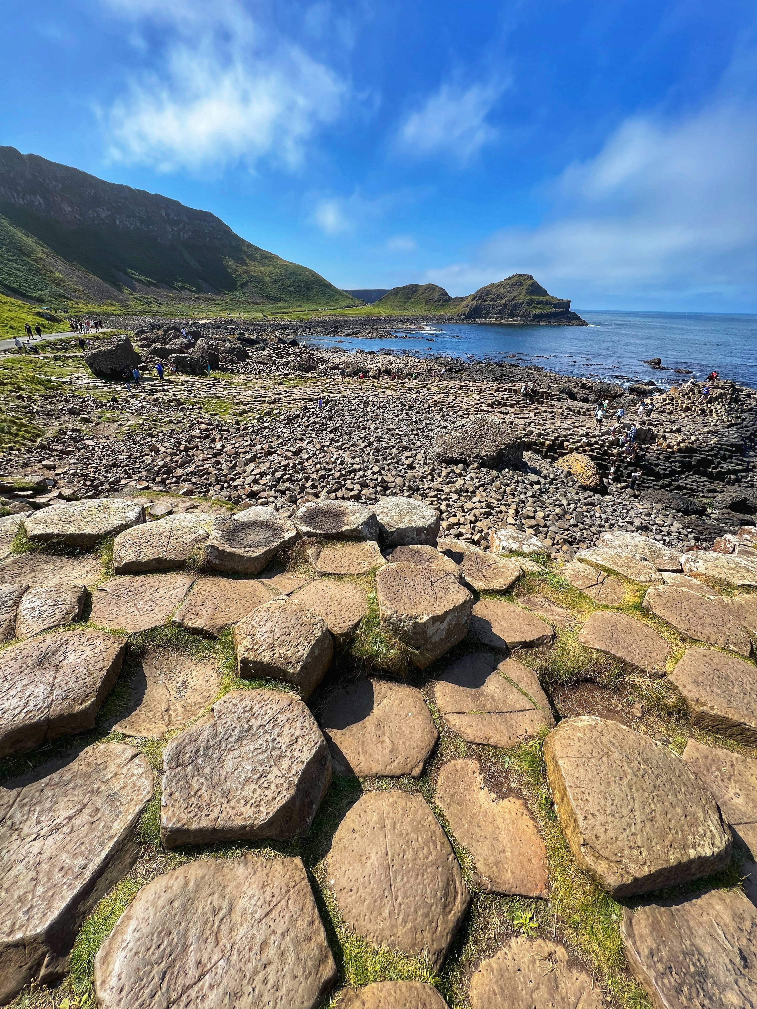 We also downloaded the free Giant’s Causeway app and listened to the little stories at various points with the kids. It was fun to learn about the lore and stories of this magical place, including a ship wreck near the Amphitheater that held some of the most valuable treasures ever discovered. From the path along the cliffs, we walked down a very steep set of steps to the lower trails and made our way to the incredible Giant’s Causeway. This impressive collection of over 40,000 hexagonal basalt columns has been wowing visitors for centuries. They were formed when lava pooled and cooled in just the right way, and this isn’t the only place on earth these kinds of formations can be found. They are also in Iceland, Scotland, Canada, and many other places around the globe.