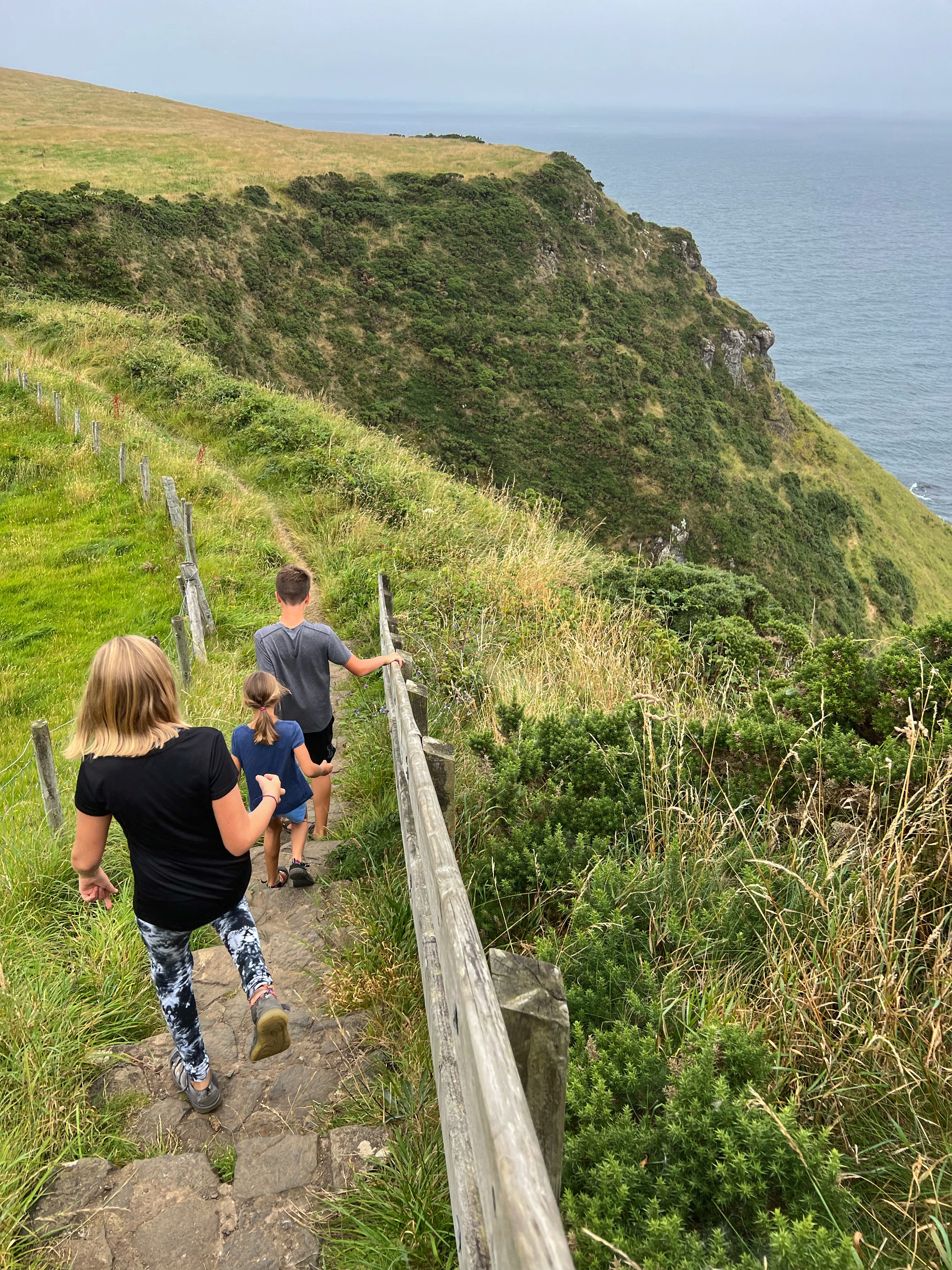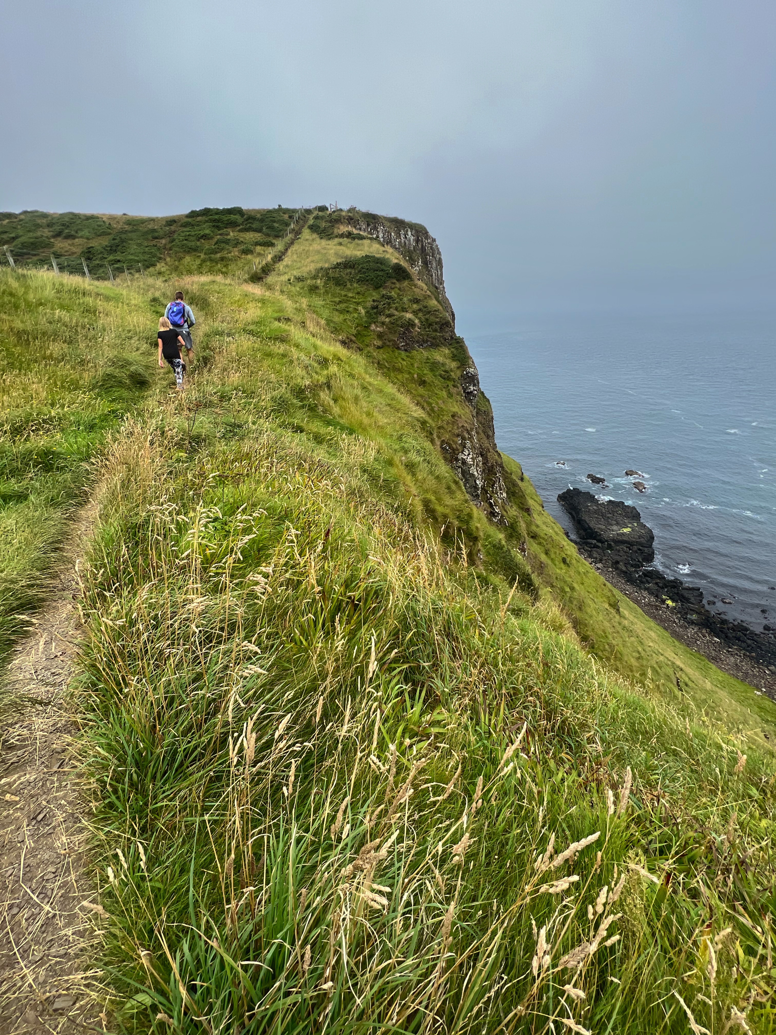 This is also a free way to visit the causeway. Nothing is totally free of course, as transport on the bus back to the campervan cost us a few pounds, but it was definitely a more scenic way. The hike itself was really fun – the kids loved it and did great! It was about 5 miles of hiking, and nothing too strenuous. The path is well marked and there were many views to take in along the way. The temperature that day was also marvelous, and of course we brought plenty of water and snacks to tide us over. There are other ways to visit Giant’s Causeway too, and I’ll highlight them at the end of the hike.