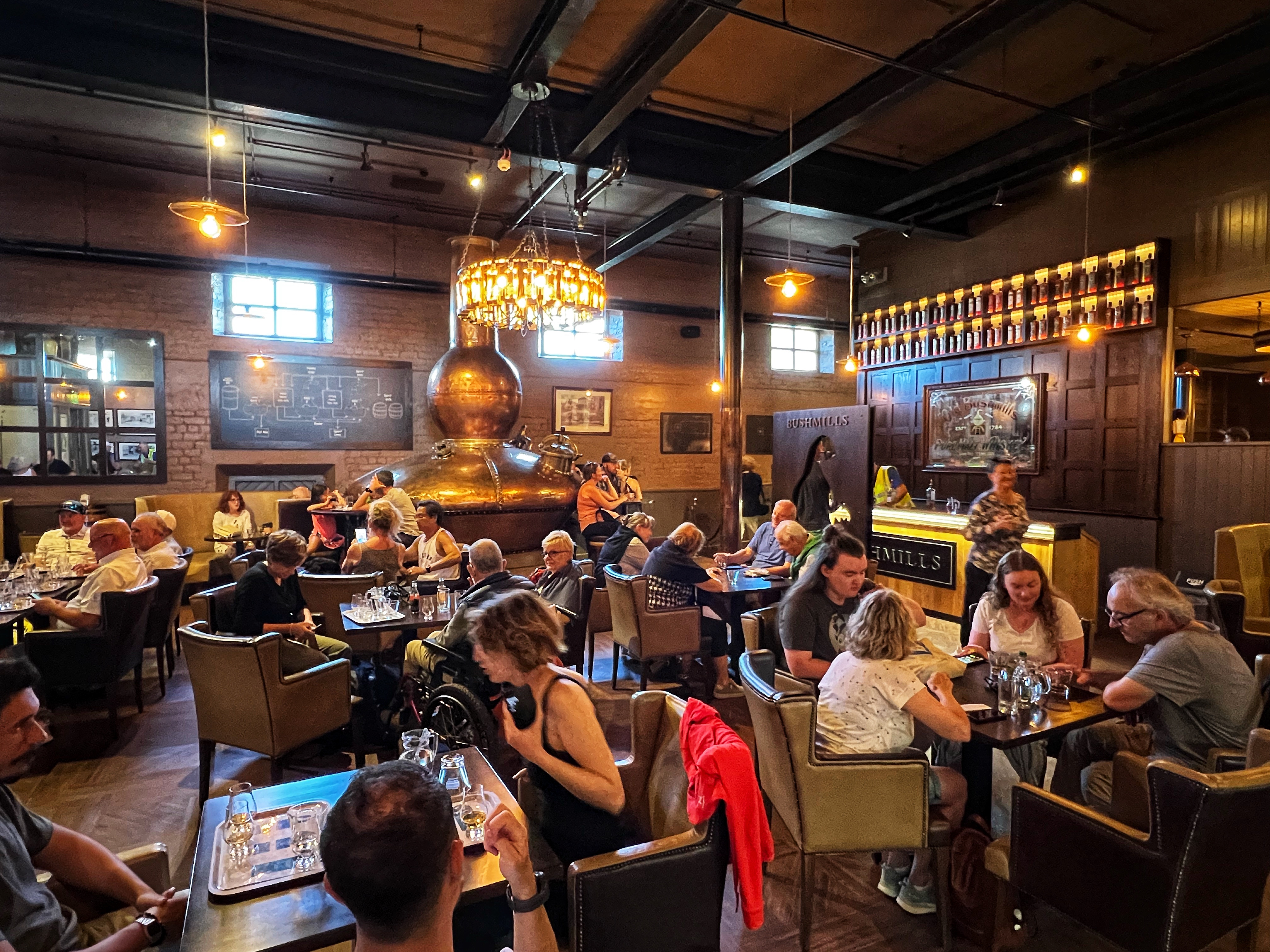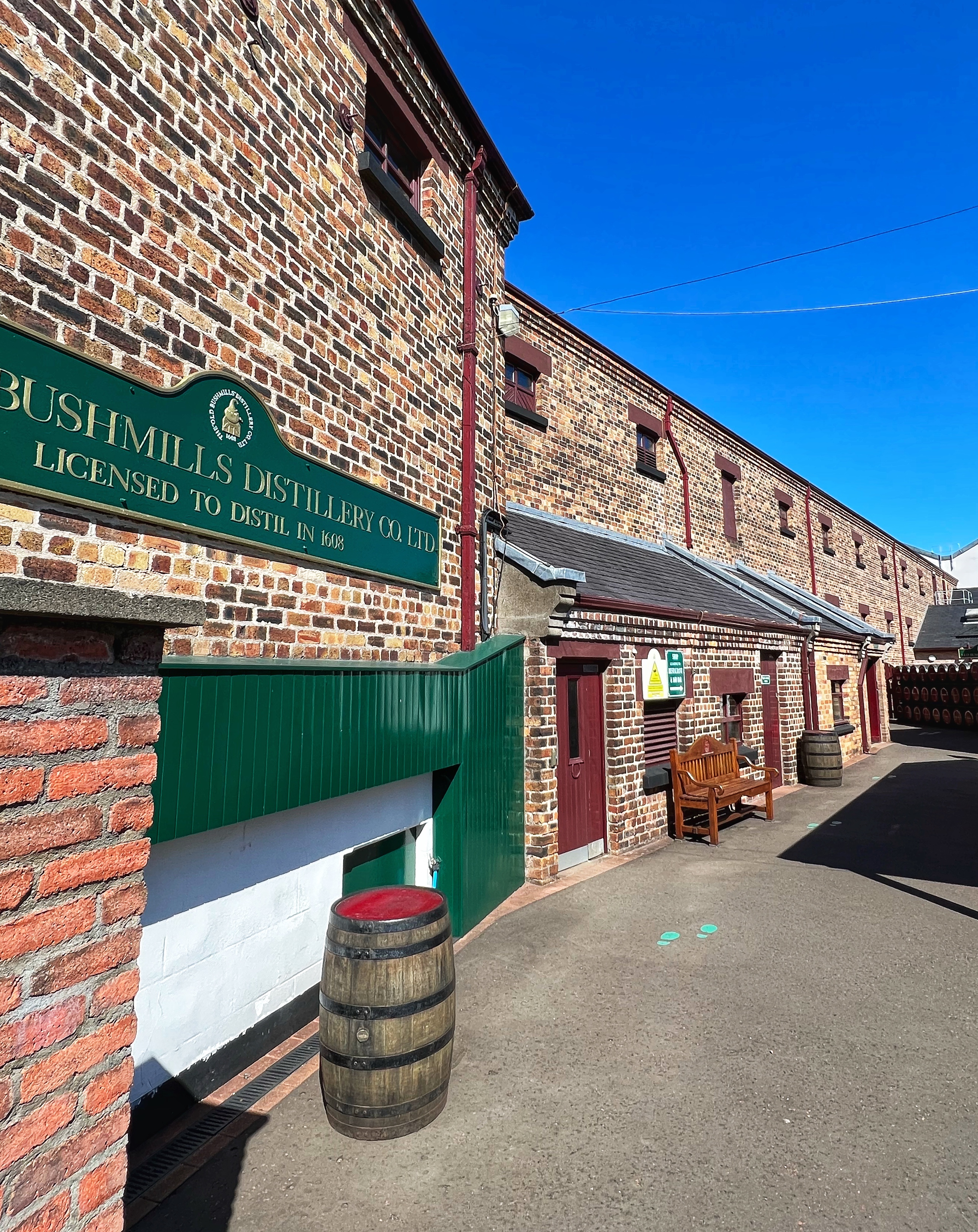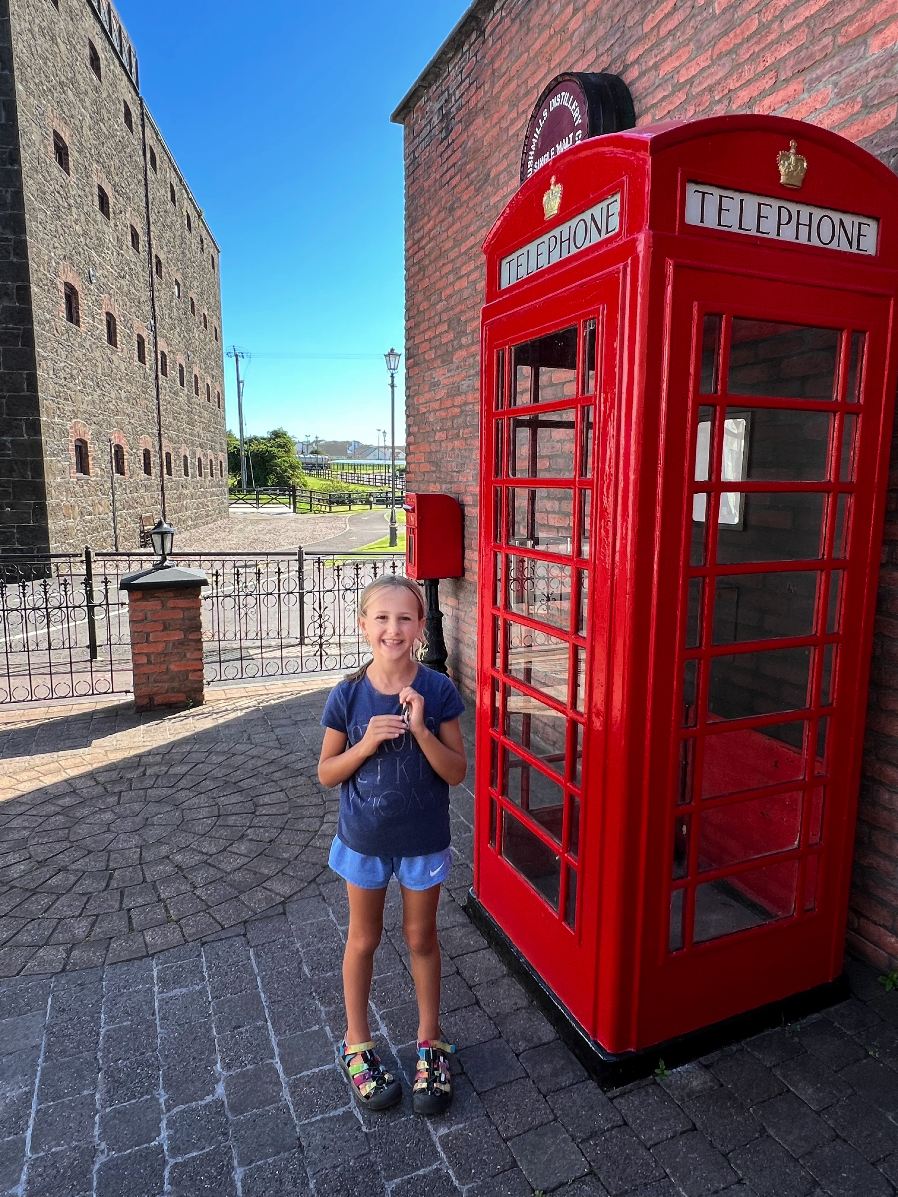 After our visit to the causeway we took the bus (after some finagling to find British pounds) down to Bushmills. This tiny town is best known for the giant Bushmills whiskey distillery. We figured we’d stop by even if we weren’t doing a full tour (with kids, so it’s a no go) and we were so glad we did! It actually was just fine to have kids there, and we did a whiskey tasting at the beautiful bar. I think it was free to do the tasting, but now I can’t remember – maybe I had too much whiskey? Haha in all seriousness, we did pay but I think it was only for the one *most expensive* whiskey we tried that wasn’t part of the free tasting, the 21 year aged single malt. It was delicious of course, but we were very glad to have tasted them before buying because we decided we preferred the 10 year to the 16 which we were originally going to purchase – and that saved us about half! The glassware here is also lovely – I’m such a fan of bar glasses. We enjoyed their souvenir store as well, and then hopped on the bus back to our camper van at Dunseverick castle.