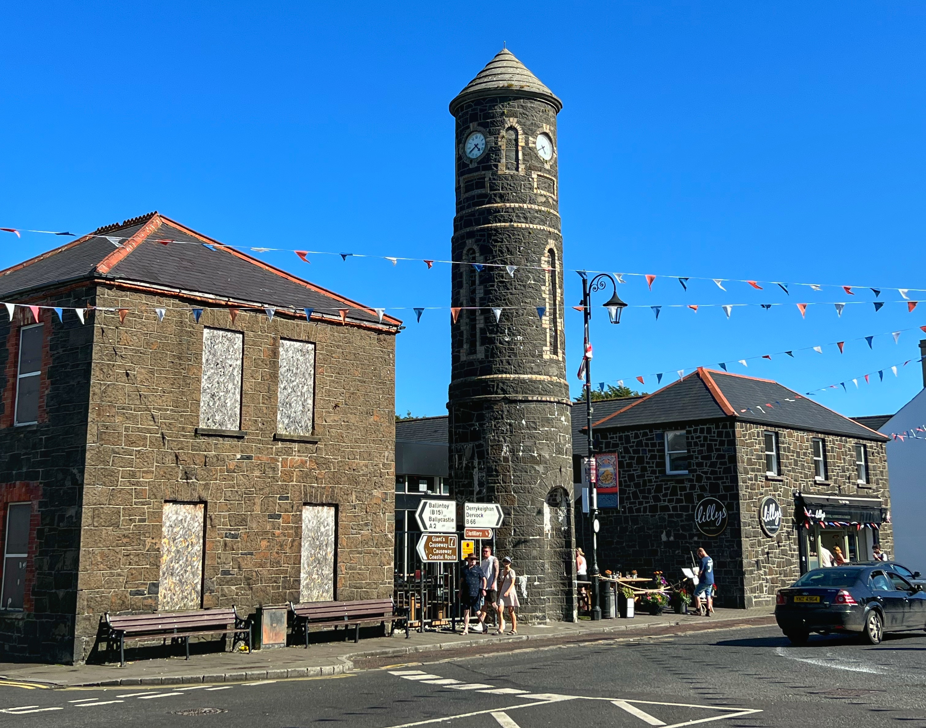 Our next stop was of course to pick up the oil cap. After that, we hit the road for a long haul 5.5 hour drive to Newcastle in Northern Ireland. We only stopped once for gas and provisions, at the Barack Obama Plaza rest area in Moneygall. We learned that Obama’s mother has Irish roots right here in this village, so they built a commemorative rest stop for him. The island of Ireland is fairly small, but driving all the way north from the south is quite a haul. Worth mentioning is that on the highways the kids did pretty well with car sickness. But on the back roads (which are common in southern Ireland), they often complained of wooziness. Especially the roads to Cliffs of Moher, Slea Head Drive on the Dingle peninsula, and the Ring of Kerry. We took turns sitting in the captain’s chairs, but big props goes to the hubby who handled all of the traffic and various roads like a champ.