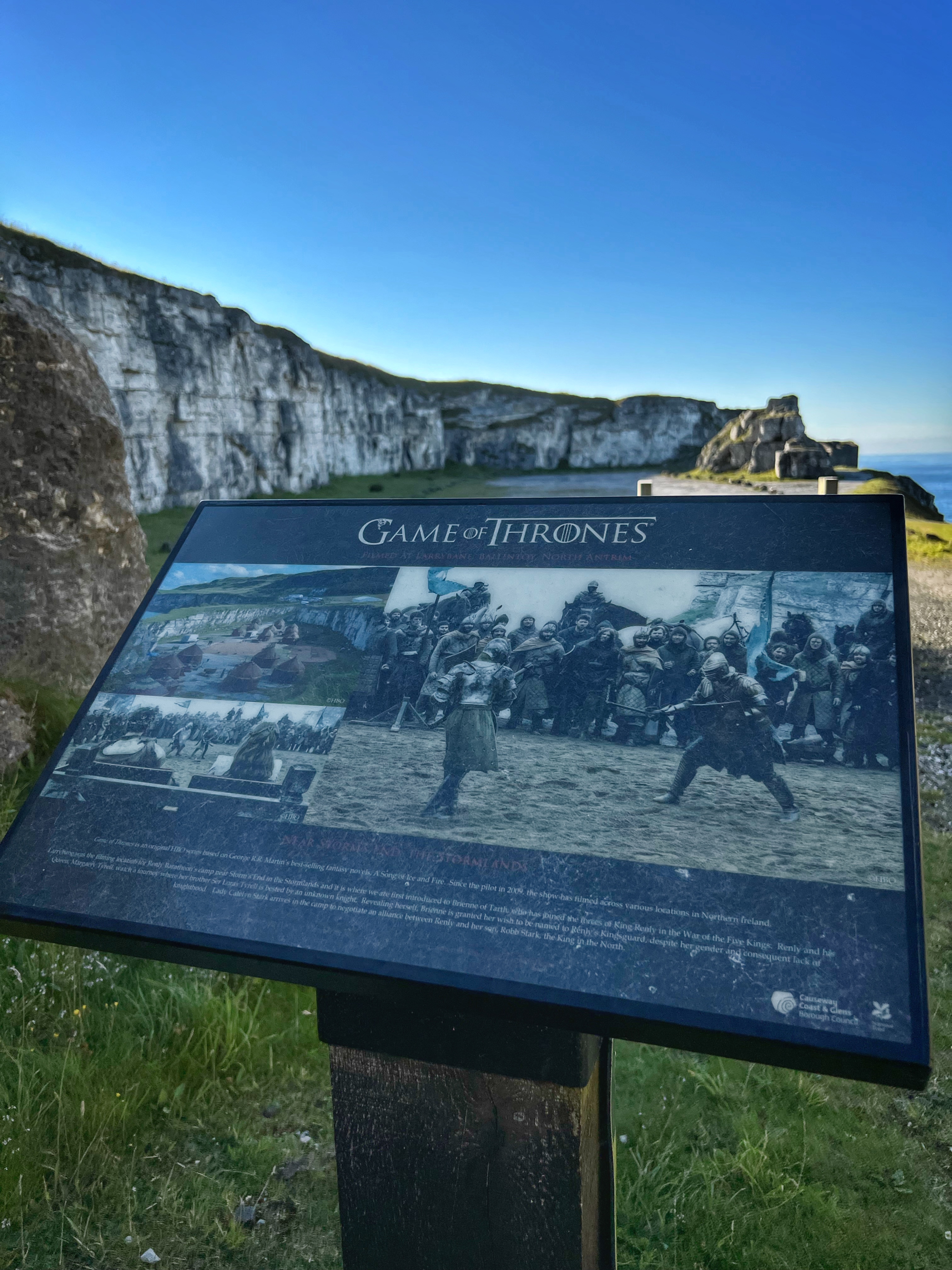 Larrybane Quarry also has views in the distance of a massive cliff used in Game of Thrones as the place where John Snowe first meets and touches Drogon on the cliff. It gave me chills to see! Of course now we want to re-watch GoT after seeing all of these cool filming spots…