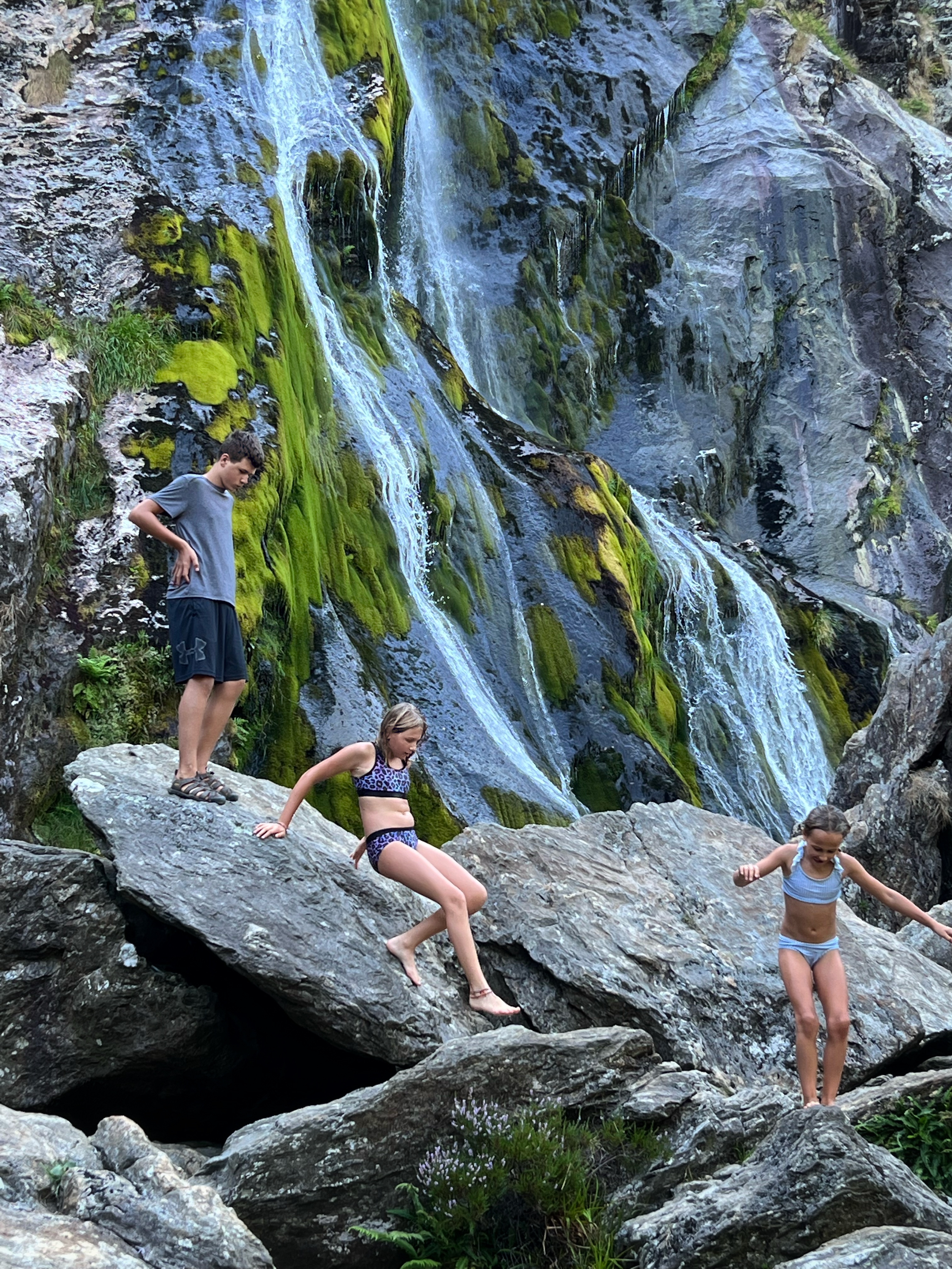 The only thing about those smooth rocks is that some of them have unfortunate bumps in them. Our son learned the hard way and really hurt his tail bone – it bothered him for two weeks after. He was such a good sport though, continuing the whole trip (including a long hike 2 days later) without complaints. It’s amazing he’s smiling in this photo below, because I know that really hurt him!