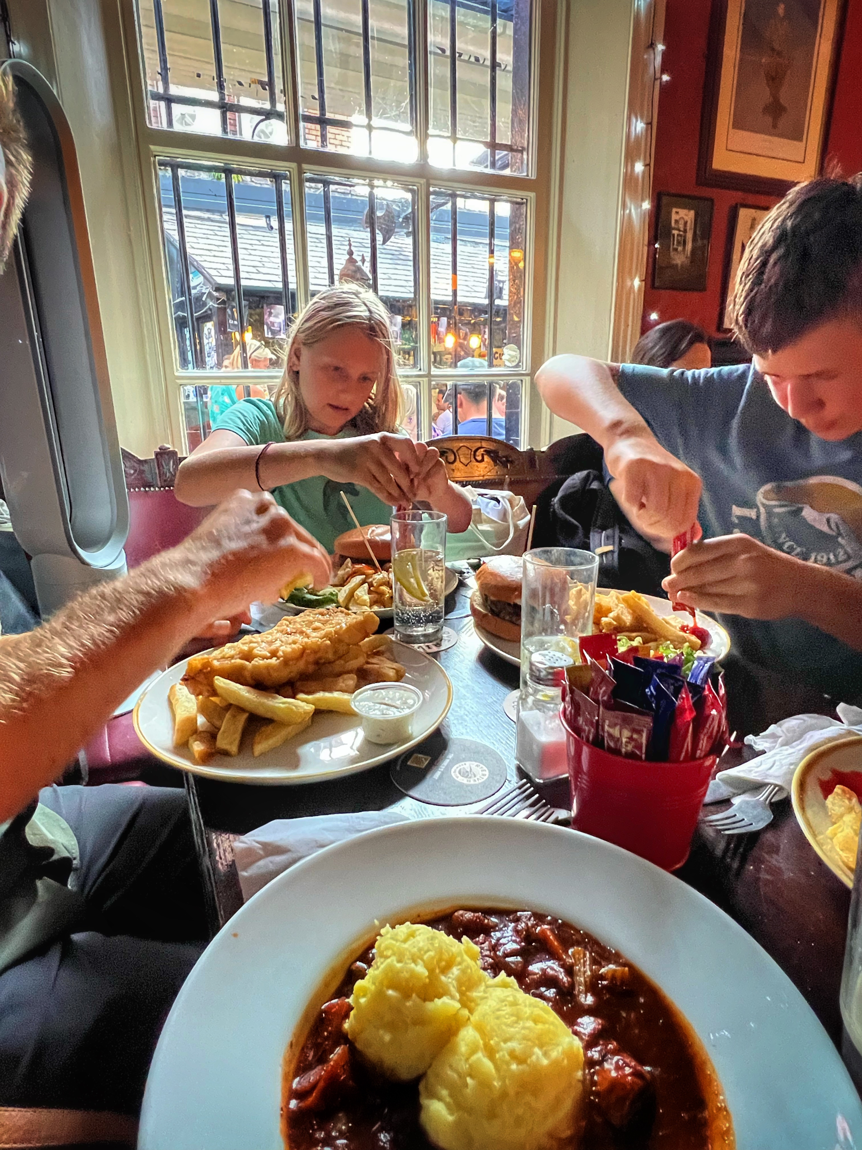 But this was the first time we visited anything like it, and we were thoroughly impressed. The crowds were a bit of a bummer, but it didn’t stop us from climbing all over the columns and enjoying them for a while. Our tummies were dictating the day though, and we needed to find food. Thankfully there were a couple of restaurants up by the Giant’s Causeway visitor center, and we enjoyed a lovely meal at The Nook restaurant (photos below).