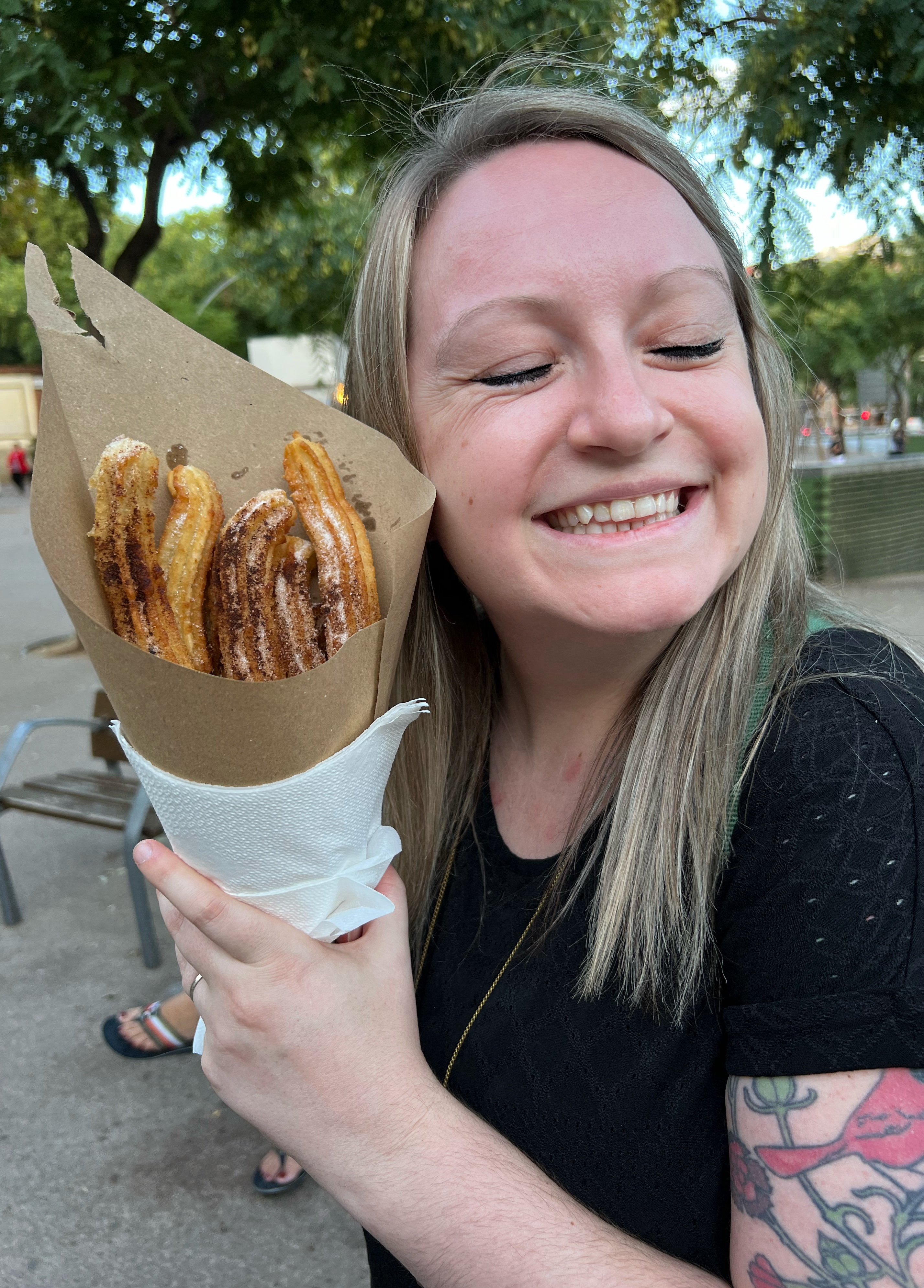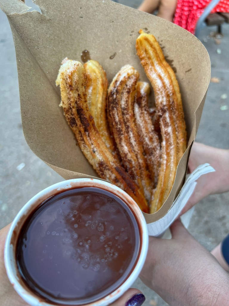- Churros – You can find churros on the street all over Barcelona! We were walking down the hill from Parc Güell and ran into a huge churros cart in the square before the metro. They’re fresh, cheap and delicious! A must when in Barca! $