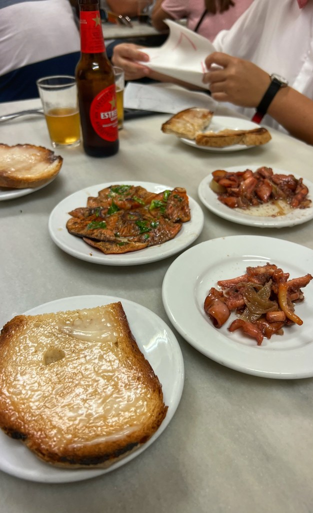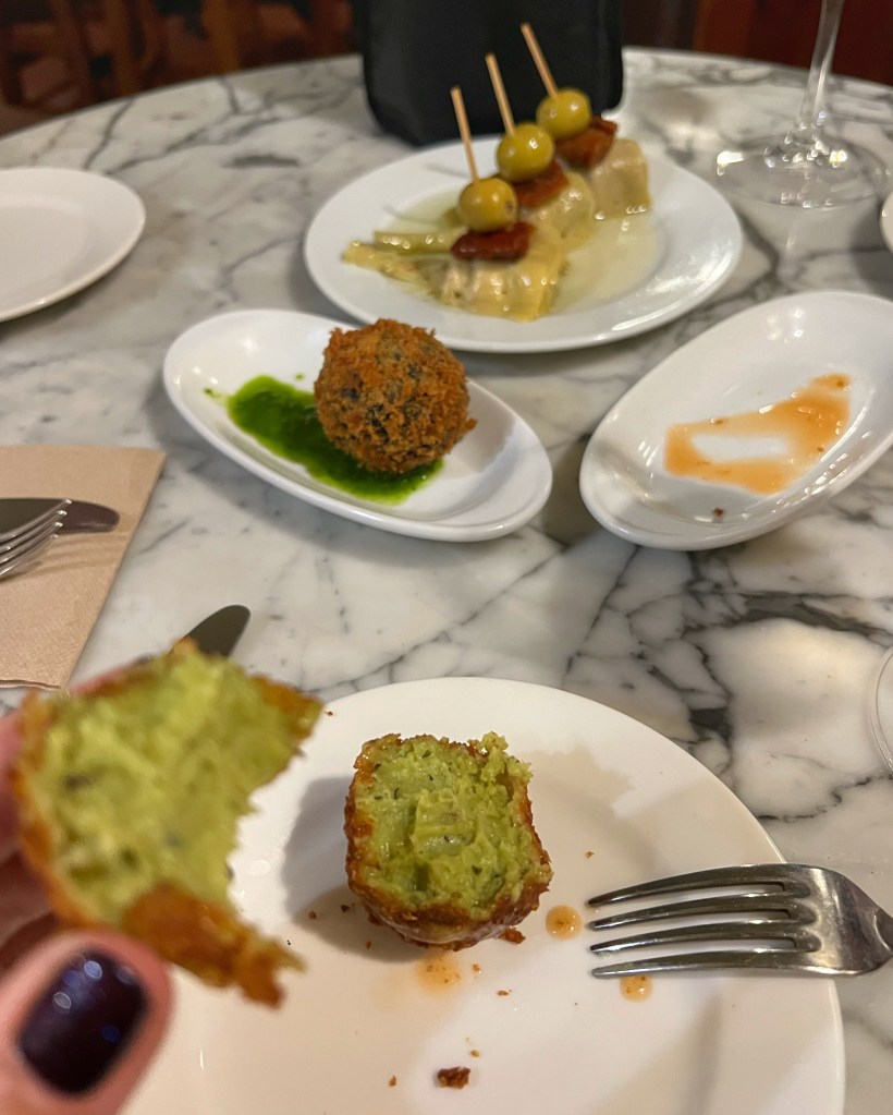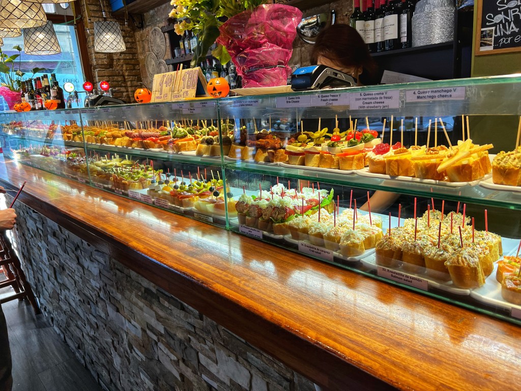 - Pincho J – This quick bite lunch spot reminded me a lot of osterias in Venice where I loved the cicchetti – little varieties of bites on bread. Delicious and very cheap! $
