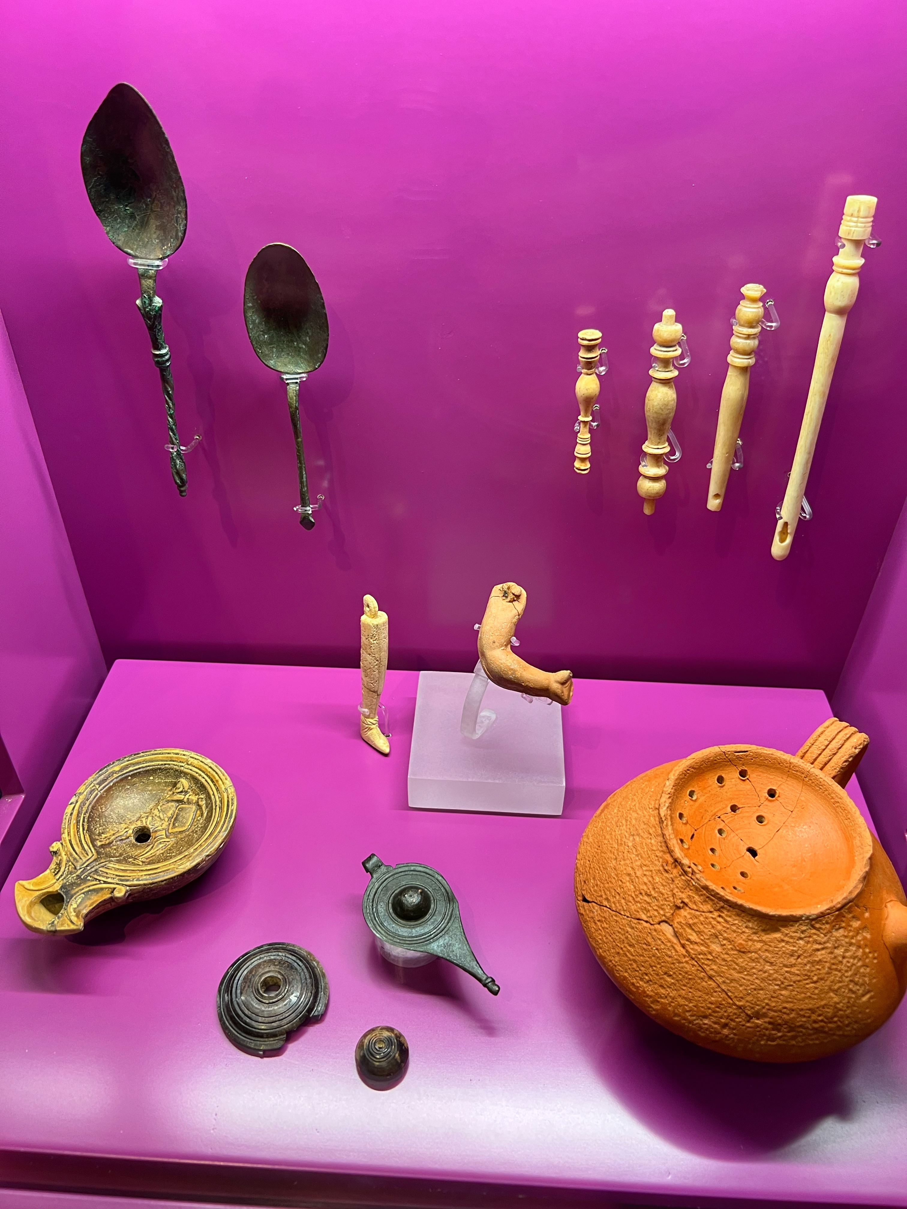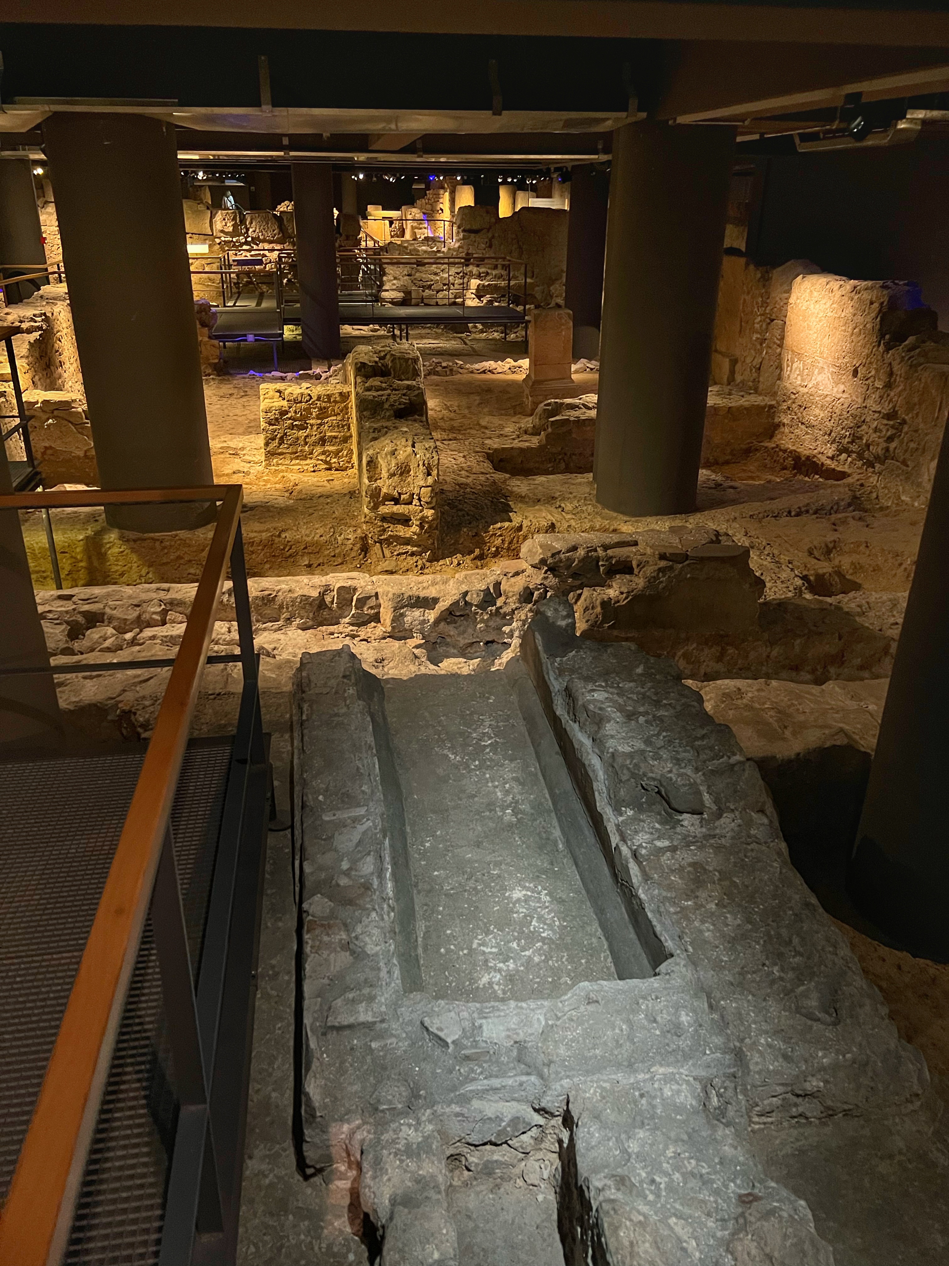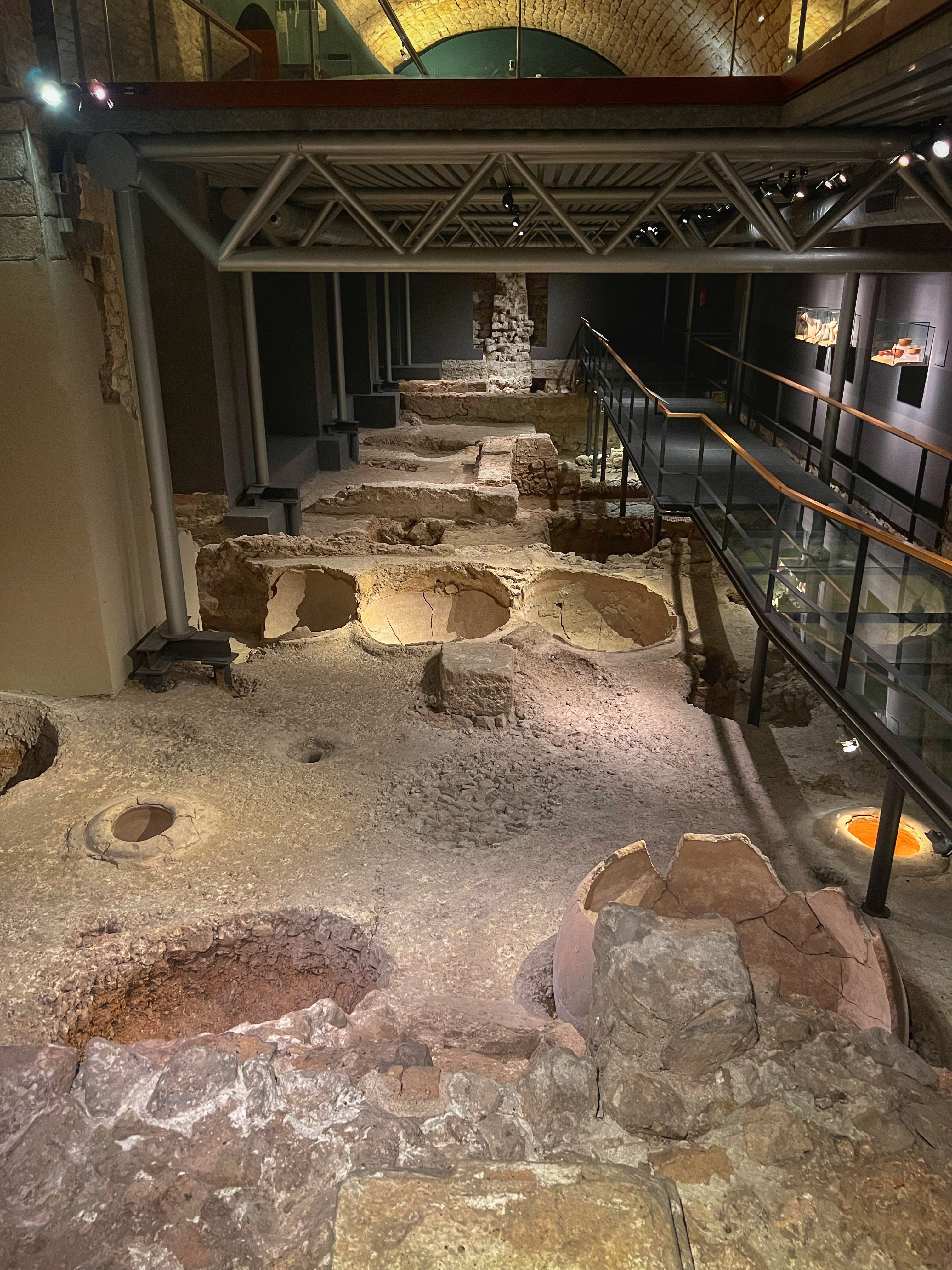 BARCELONA HISTORY MUSEUM MUHBA: This is the only place to go underground and see what remains of the Roman era that founded Barcelona. MUHBA is an open archaeological site where you can view ruins and learn about the origins of the city. This museum is very well done and affordable to visit – tickets are only €7, free for children under 16, and can be purchased here in advance or in person at the entrance. (Note: the museum is closed on Mondays.) You can spend anywhere from 1-2 hours here walking along the platforms that wind through the ruins. I especially appreciated seeing the tools found in the site, the huge vats used to store fish, and the Baptismal bath area.