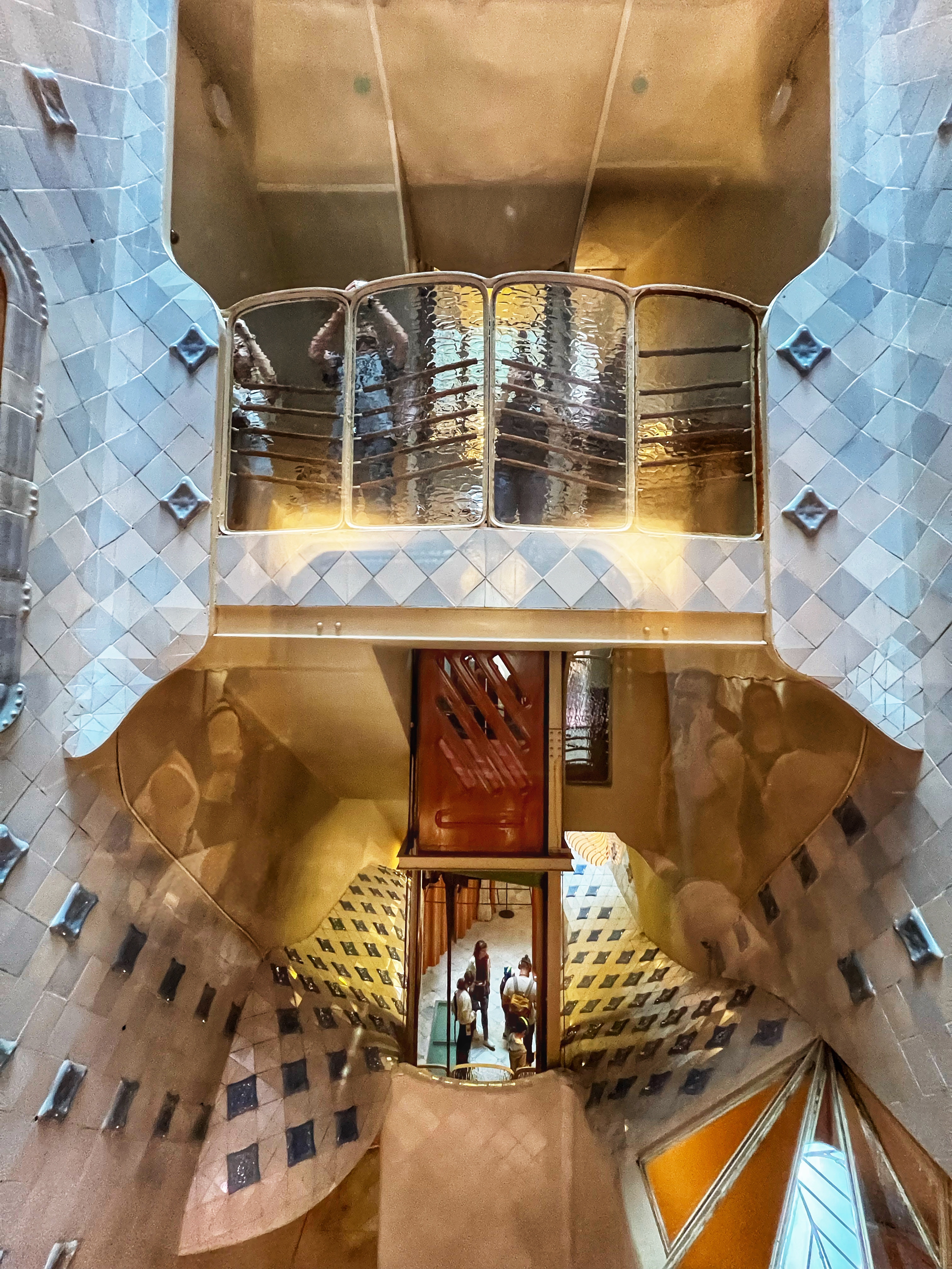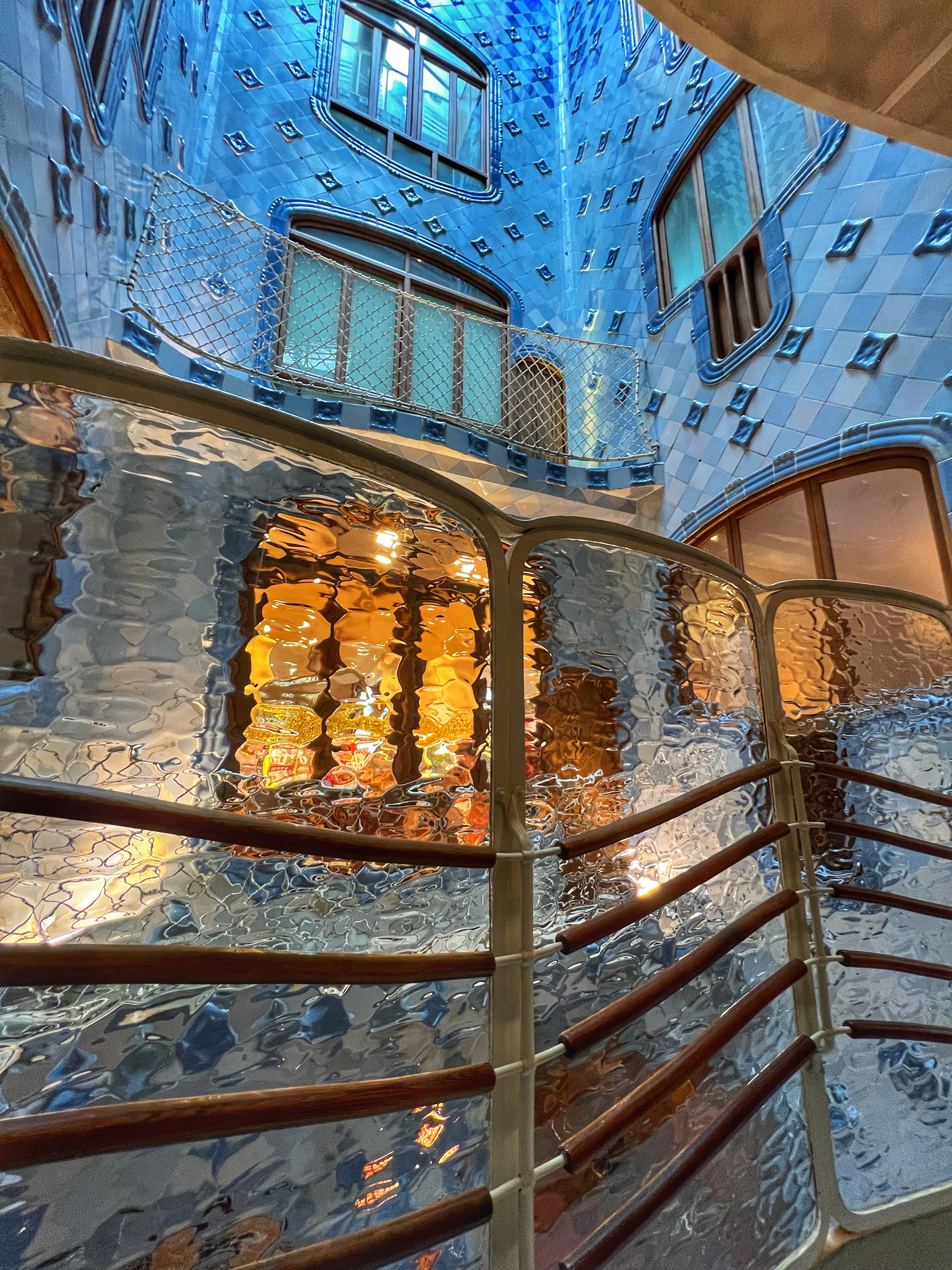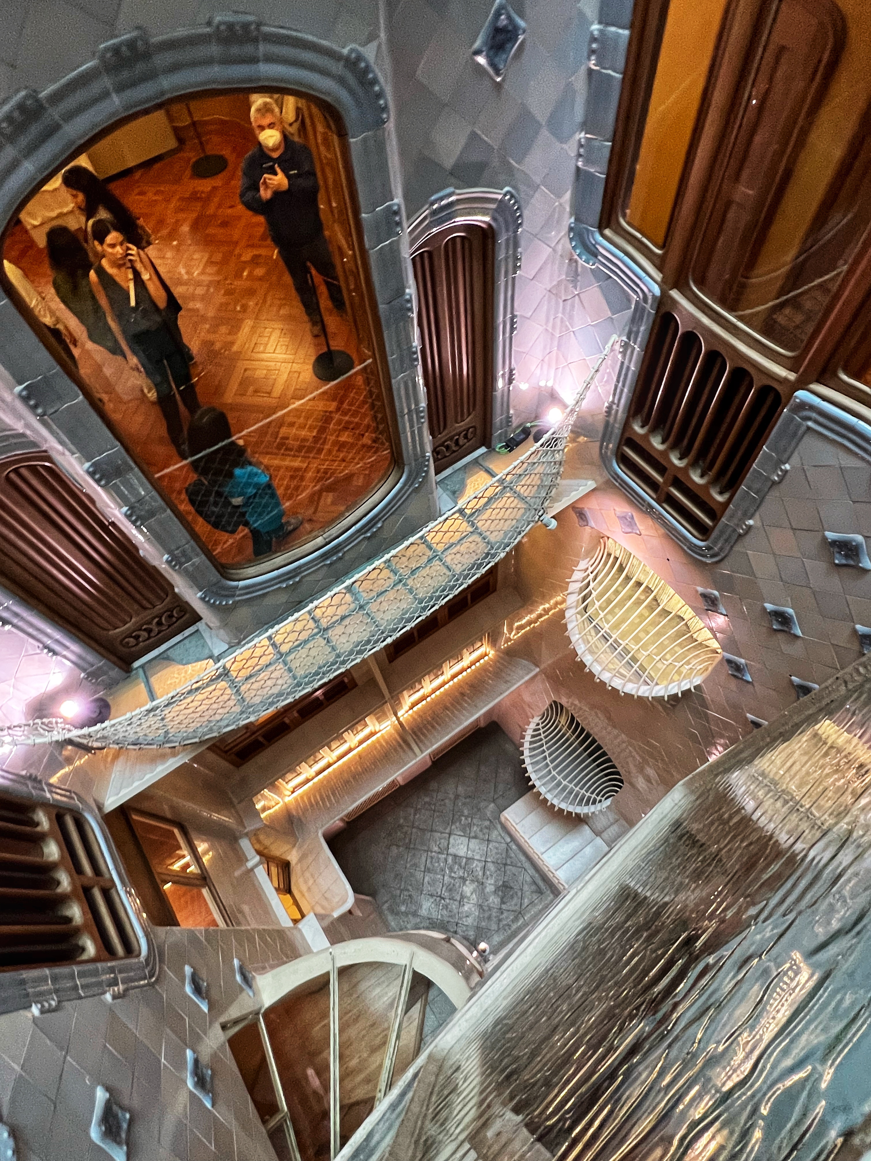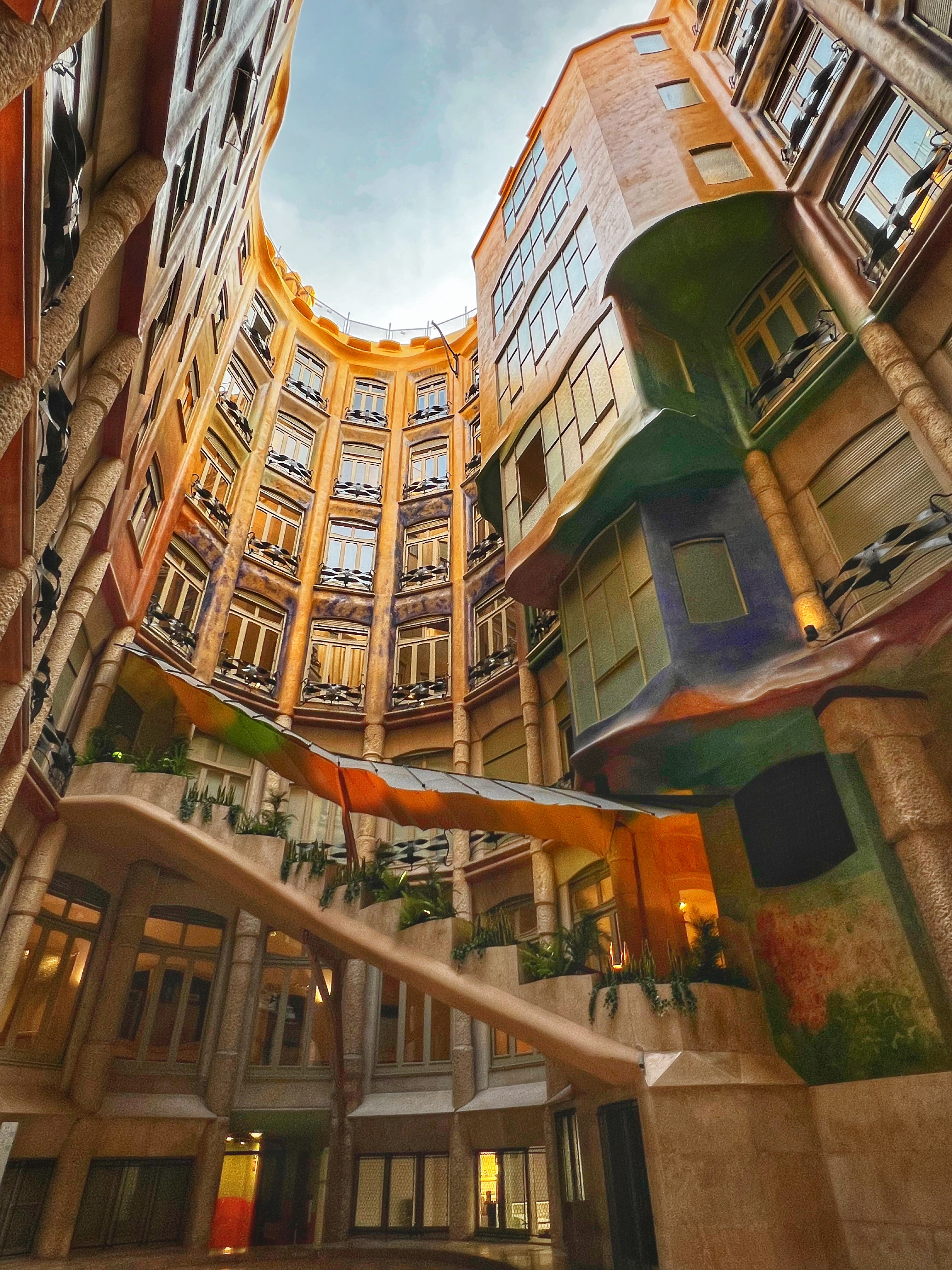 First you tour the Milà apartments with an audioguide explaining all the interior features and furniture details. I love the giant, colorful atrium with a stairway that resembles a vertebrae.