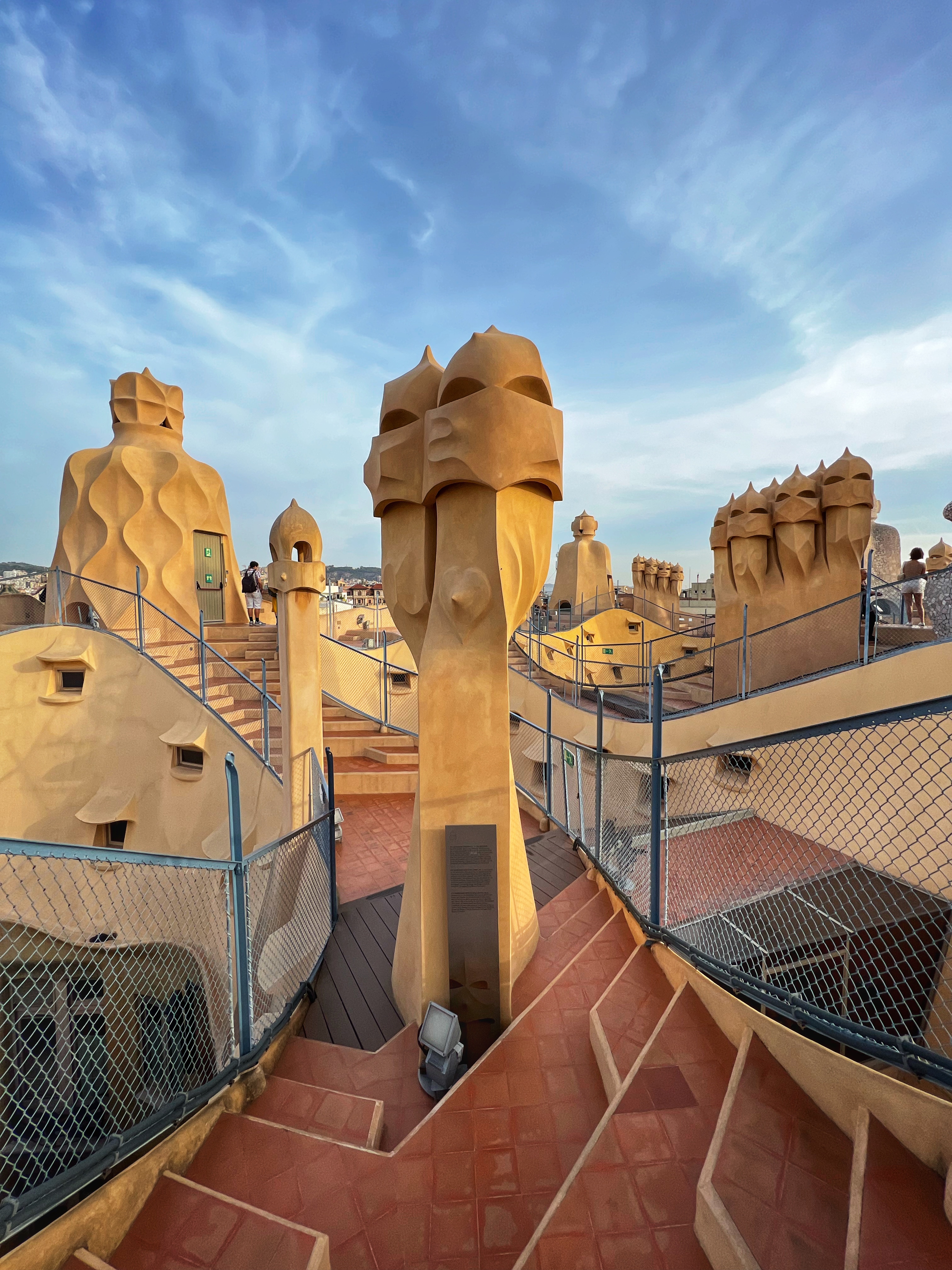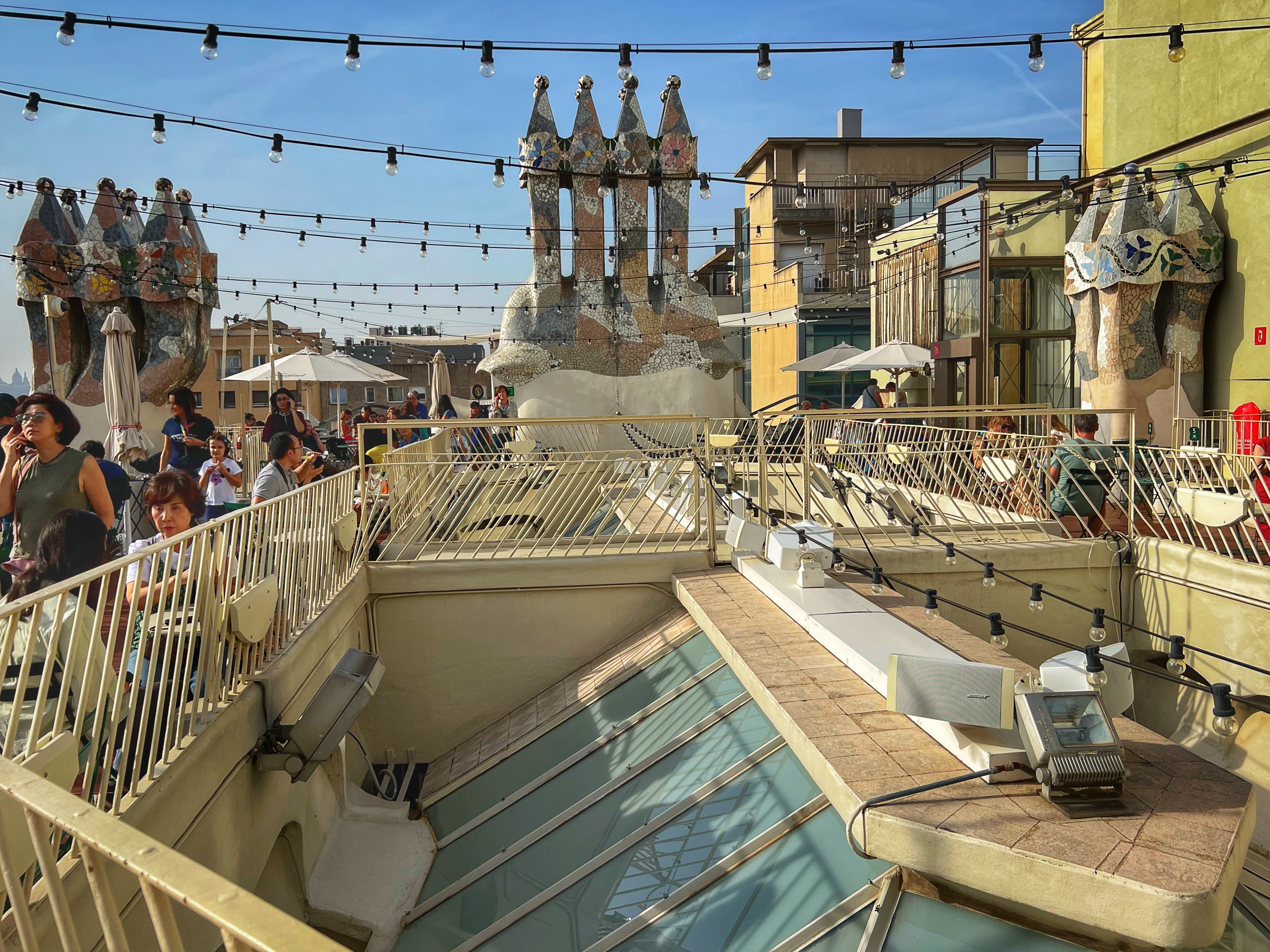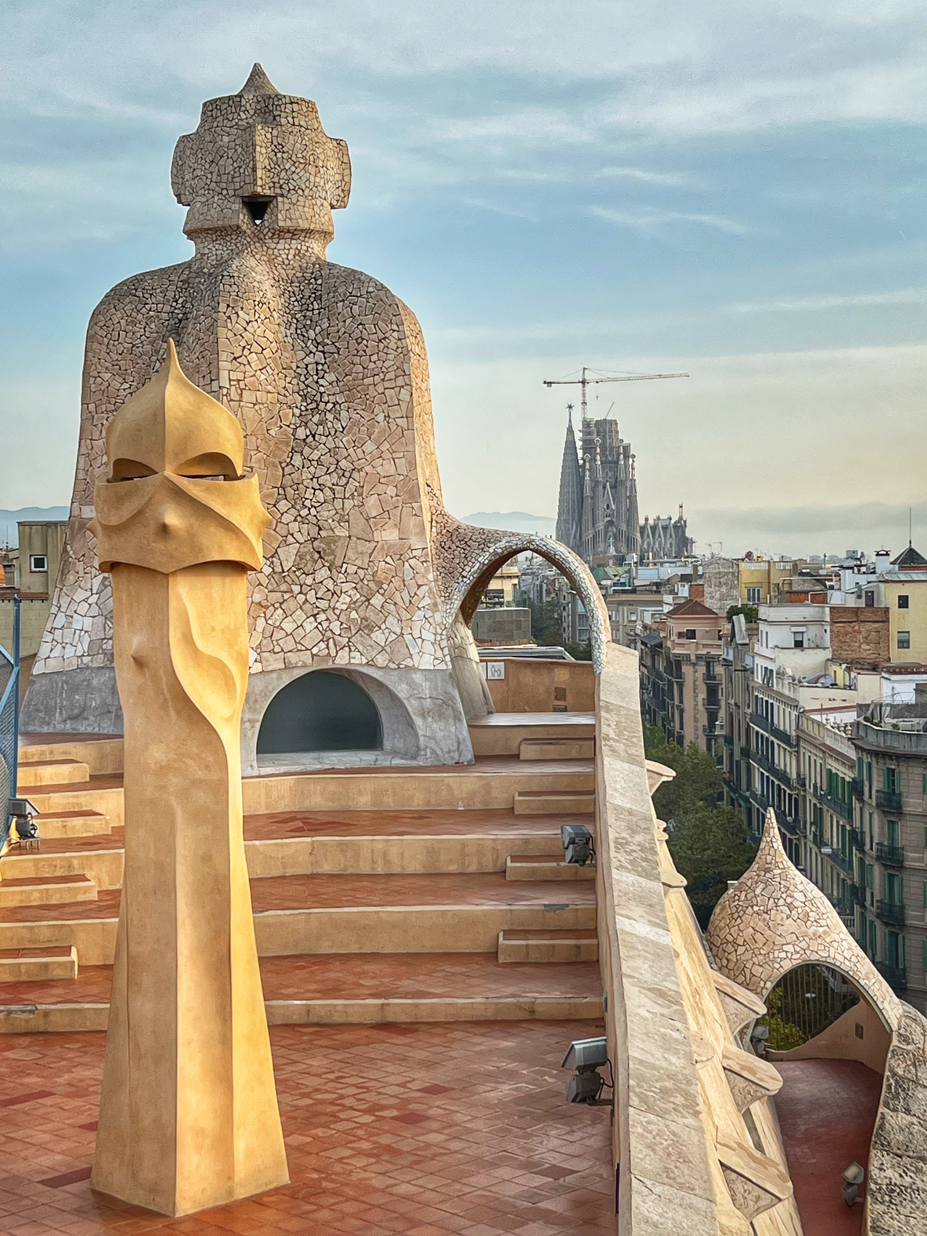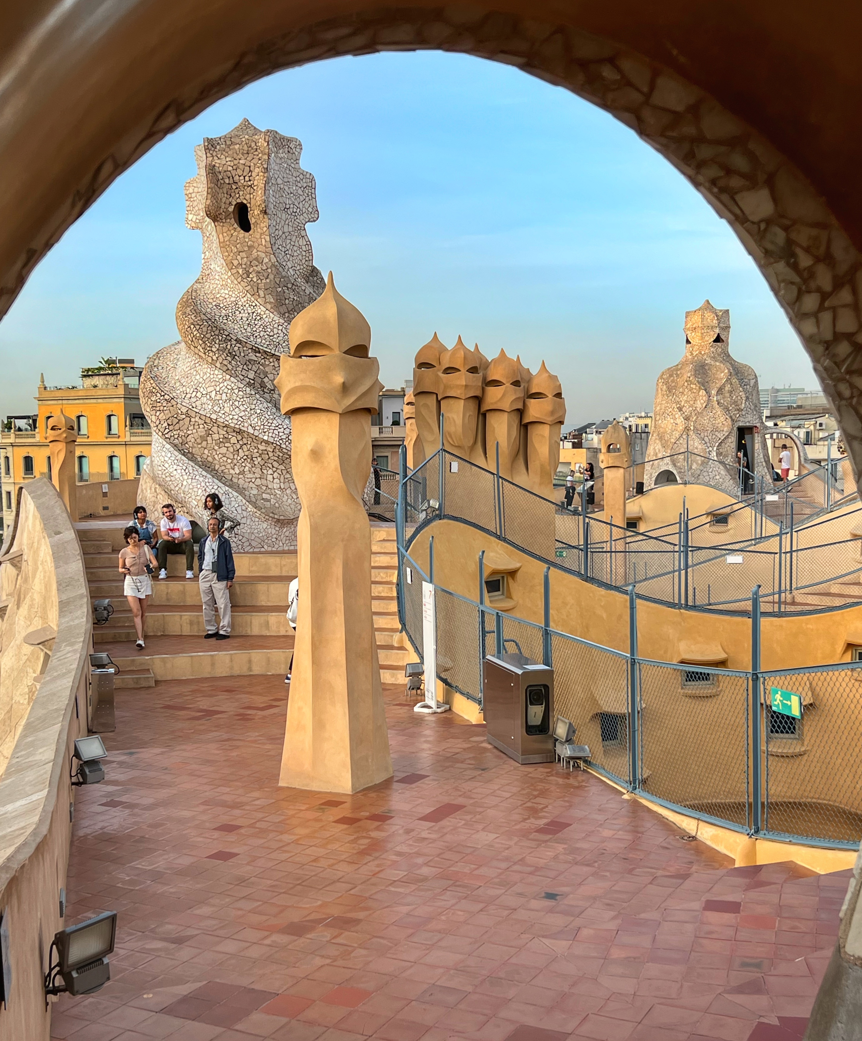 Finally you reach the magnificent rooftop that flows and bends with almost no straight lines. Views from up here are terrific – even of Sagrada Familia in the distance!