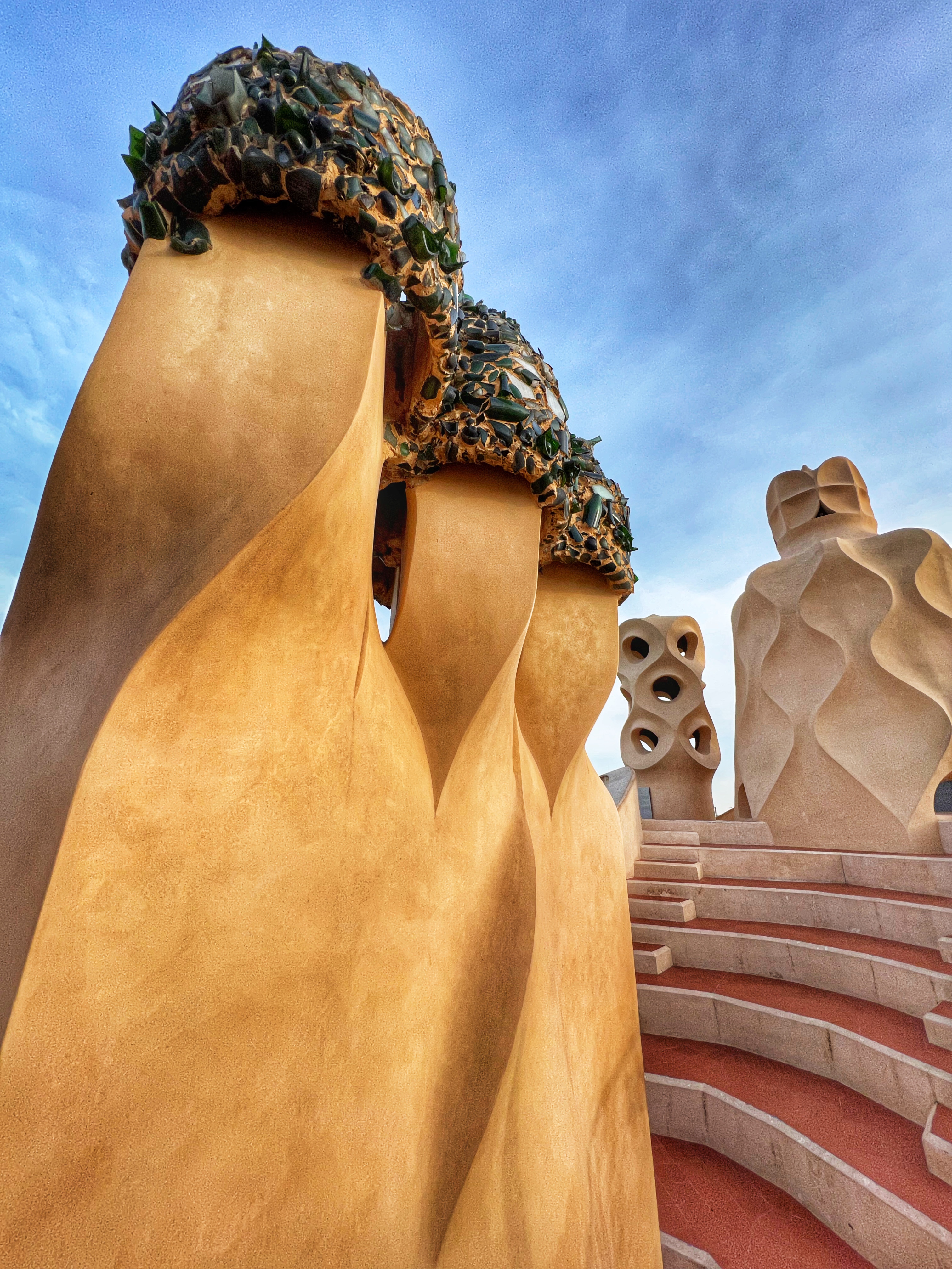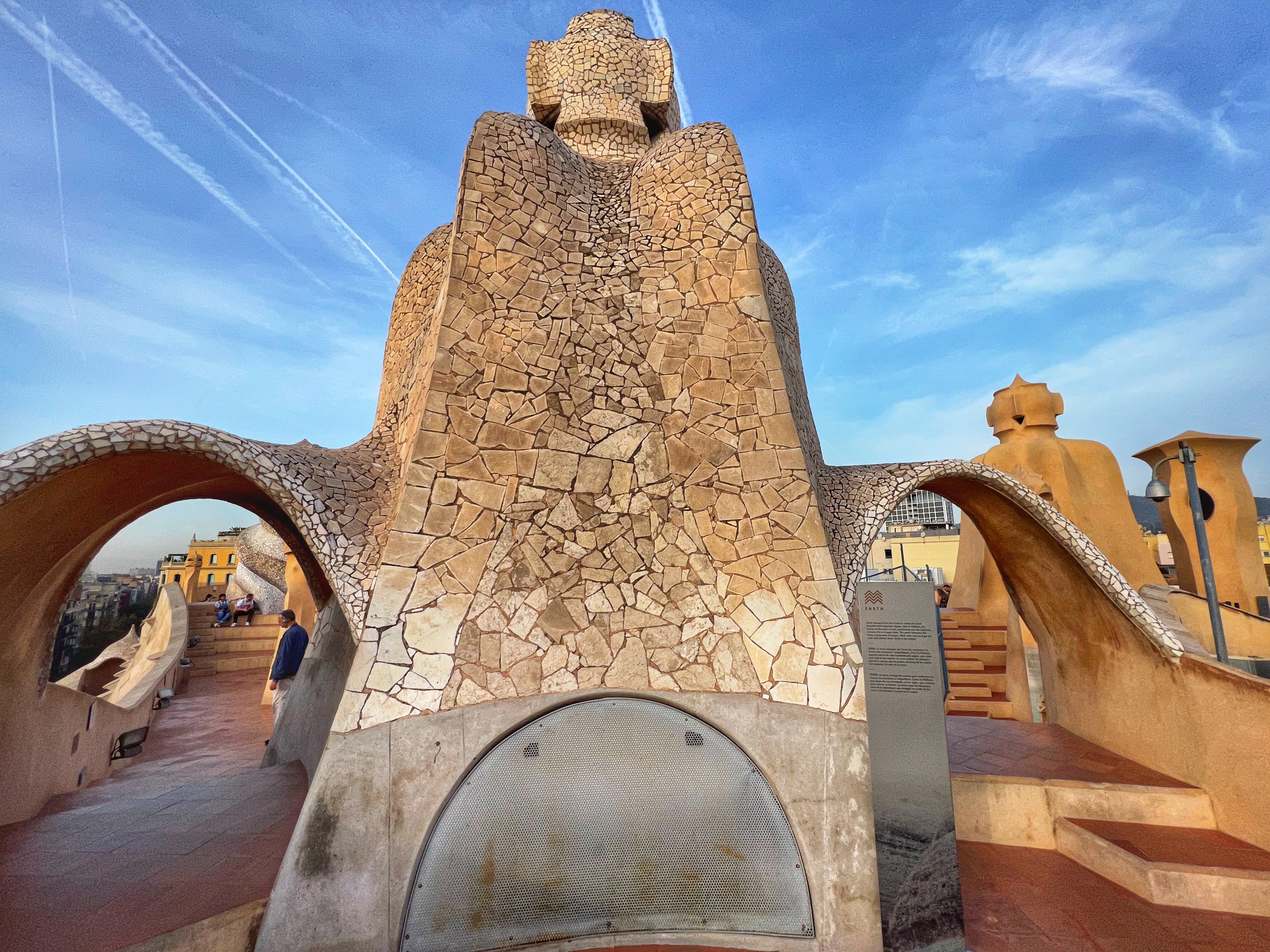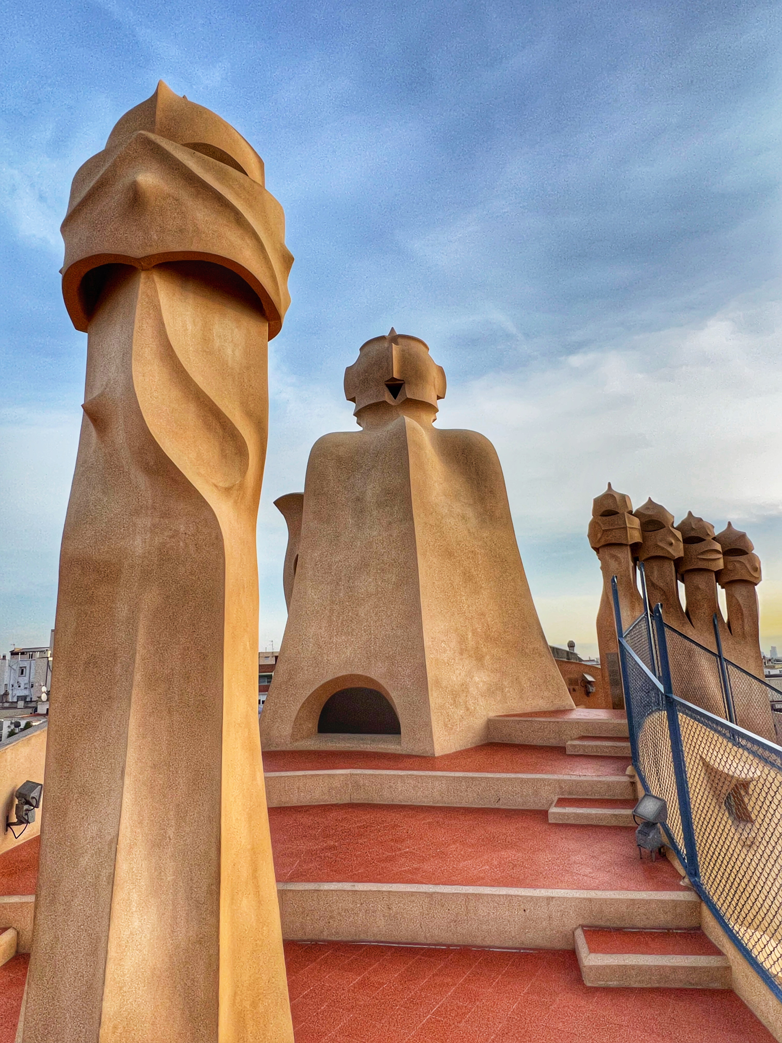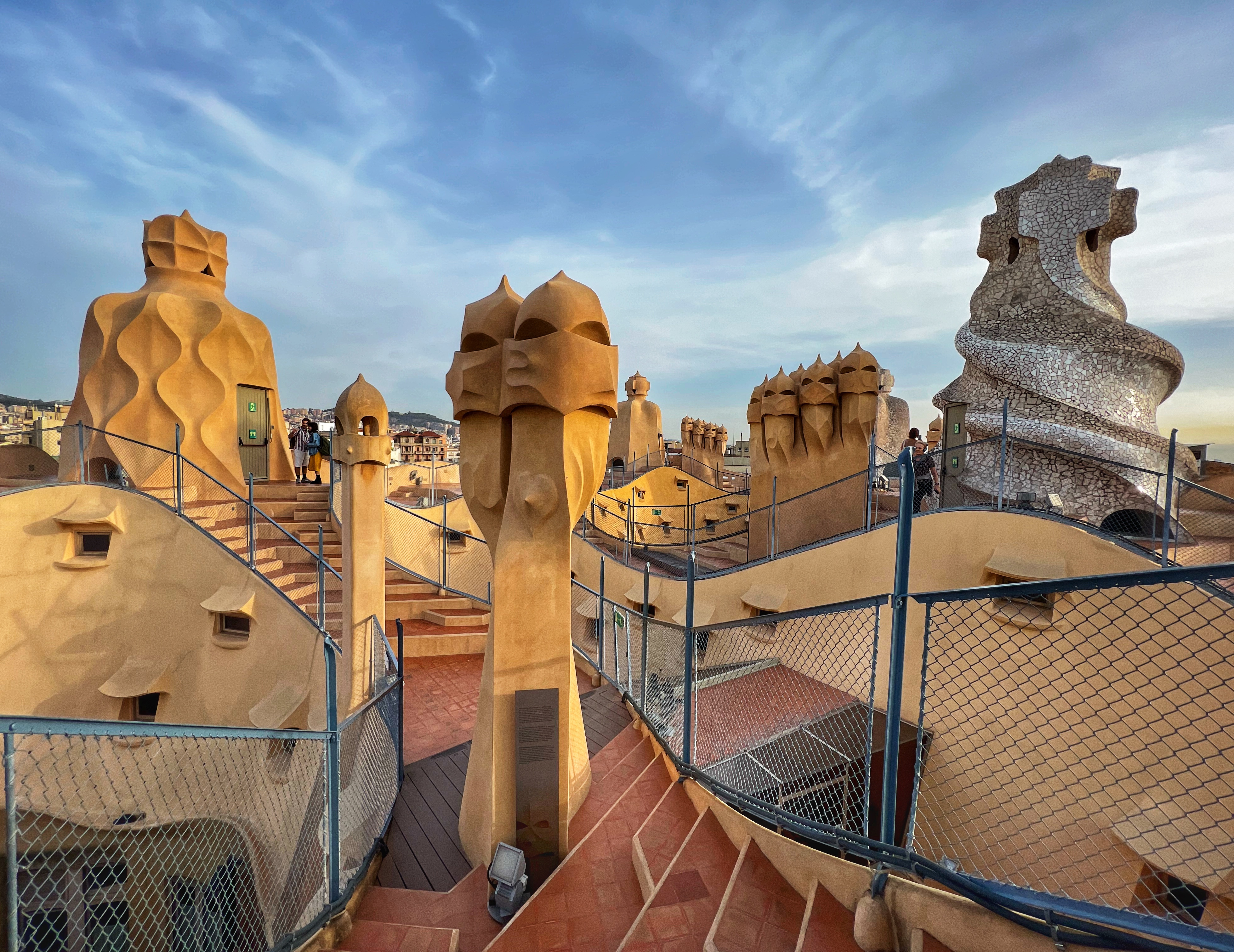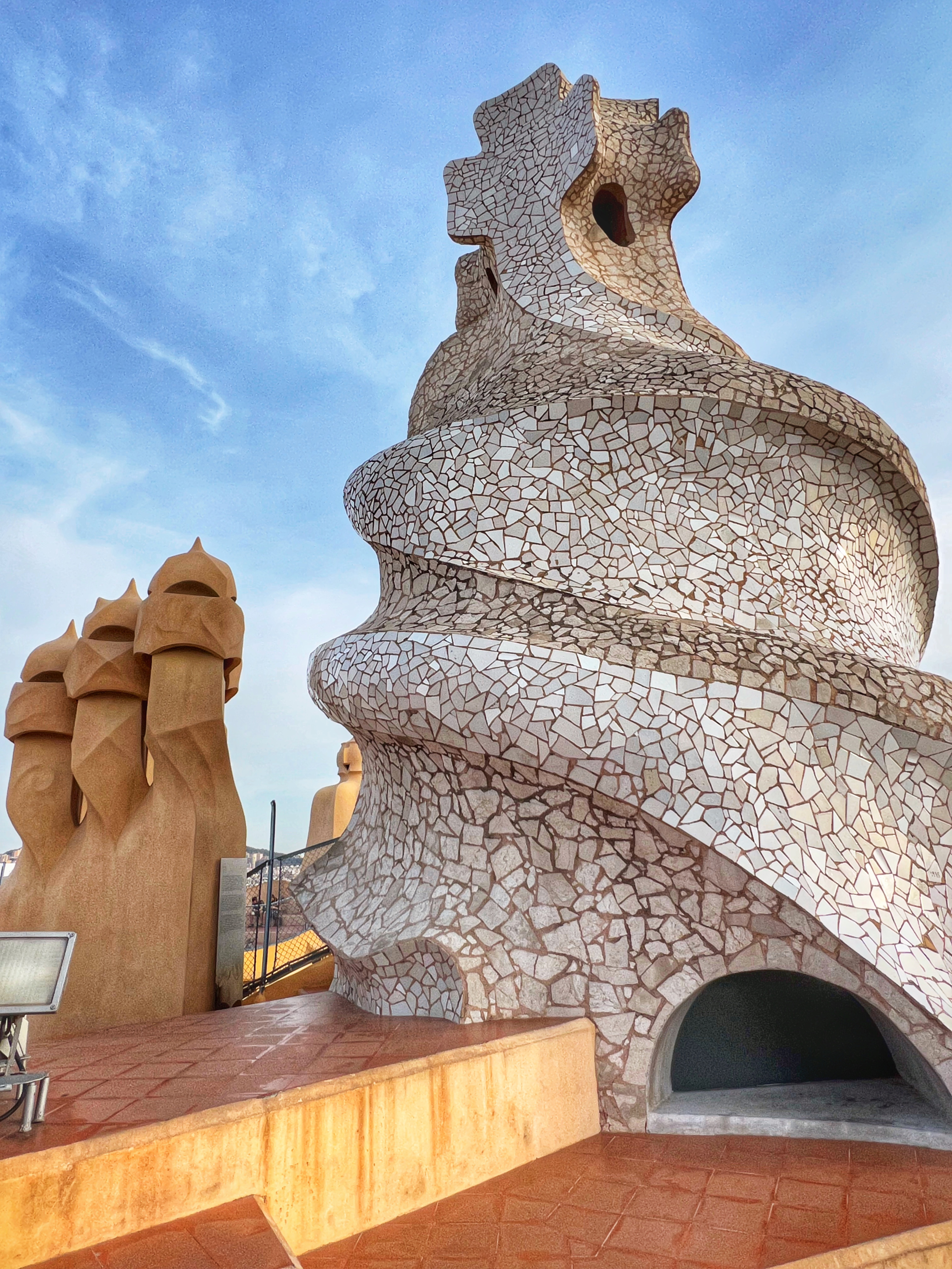 Finally you reach the magnificent rooftop that flows and bends with almost no straight lines. Views from up here are terrific – even of Sagrada Familia in the distance!