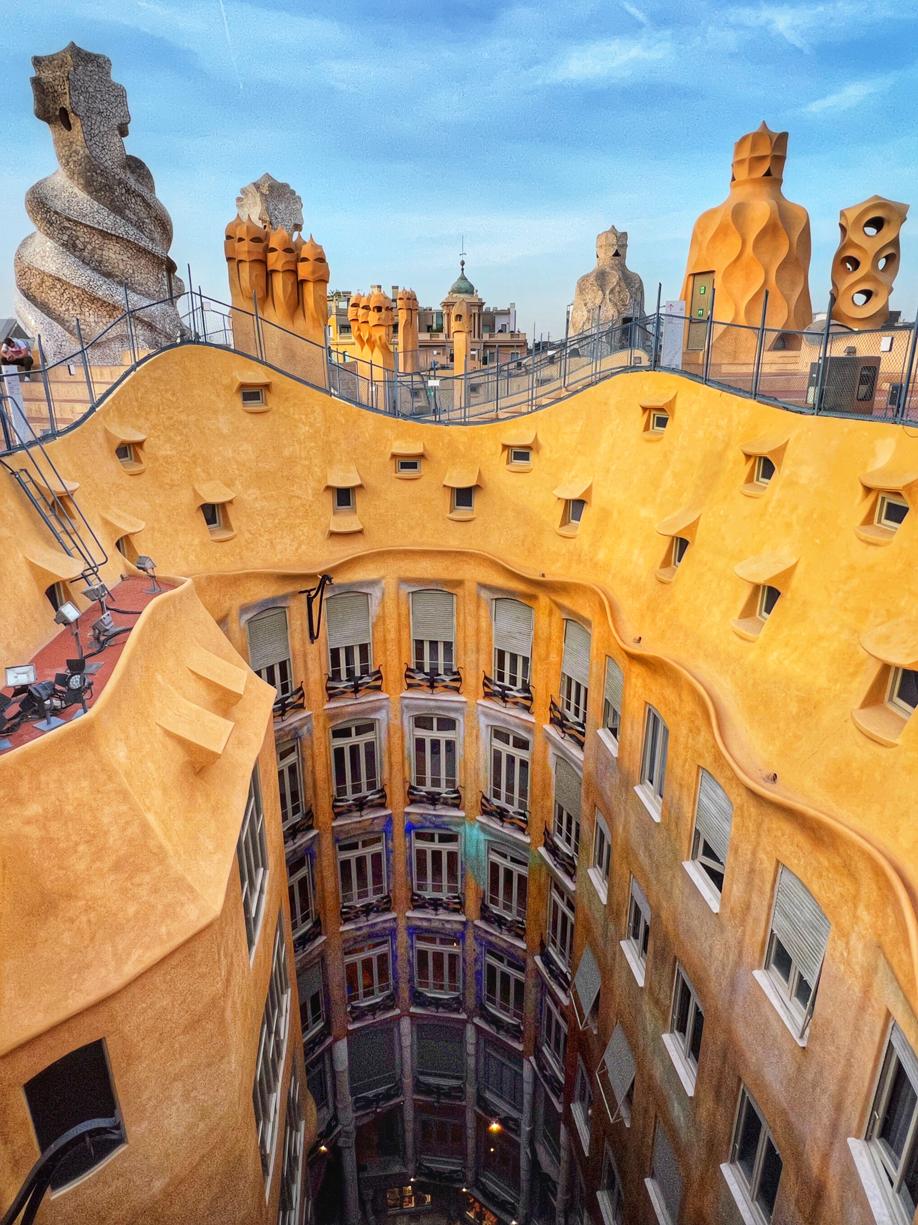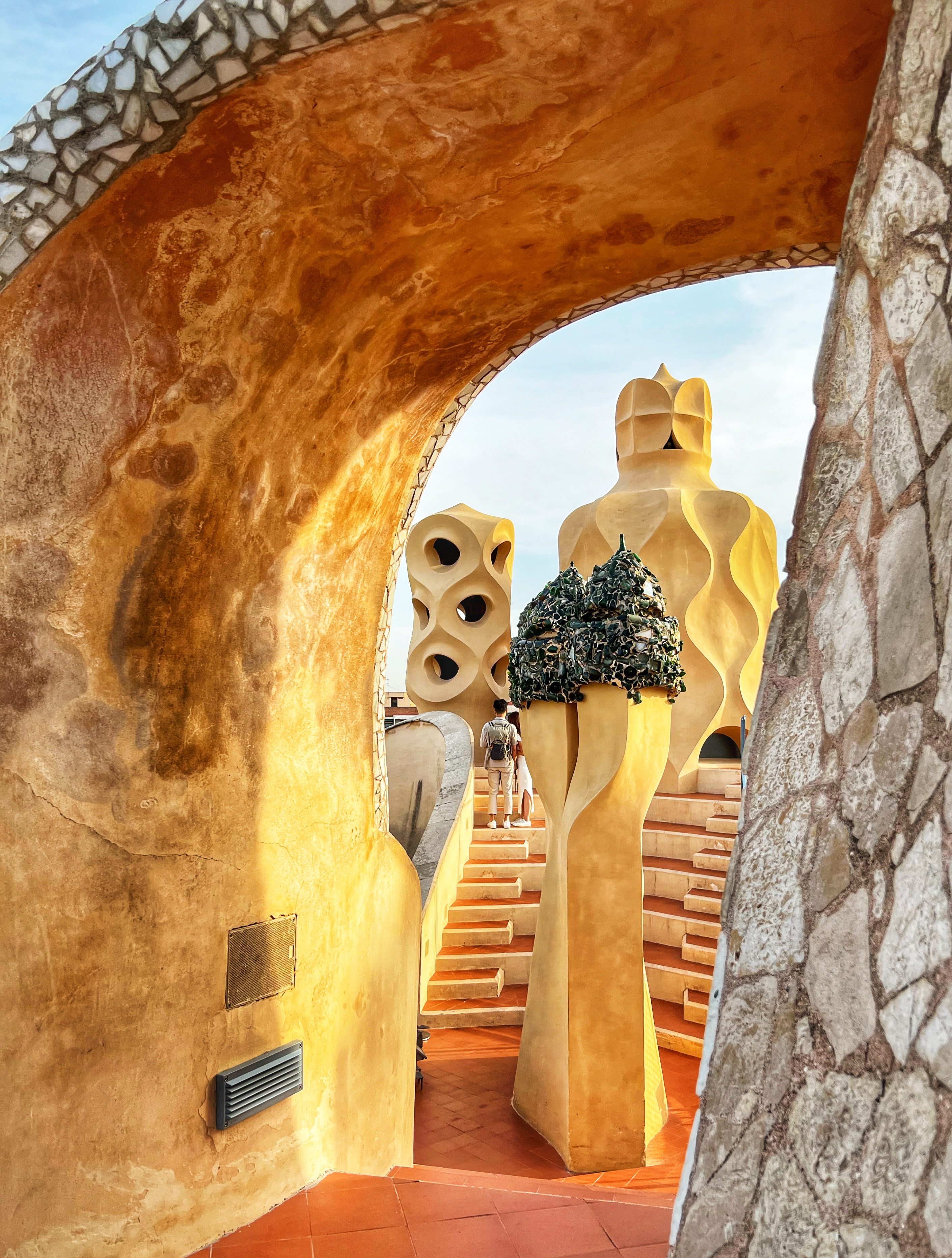 TO VISIT: La Pedrera is open every single day from 9AM – 10 PM. It is beautiful in all light, but I recommend visiting early in the morning or at sunset for the best views. Always buy your ticket online and get a time slot – if you arrive and expect to buy a ticket they’ll likely be sold out, or if you are lucky enough to get a ticket, the price is €3 more. Tickets are €25 for a regular ticket with audioguide, self tour. OR you can spend €35/ticket and have a virtual reality experience through La Pedrera. For more information, click here.