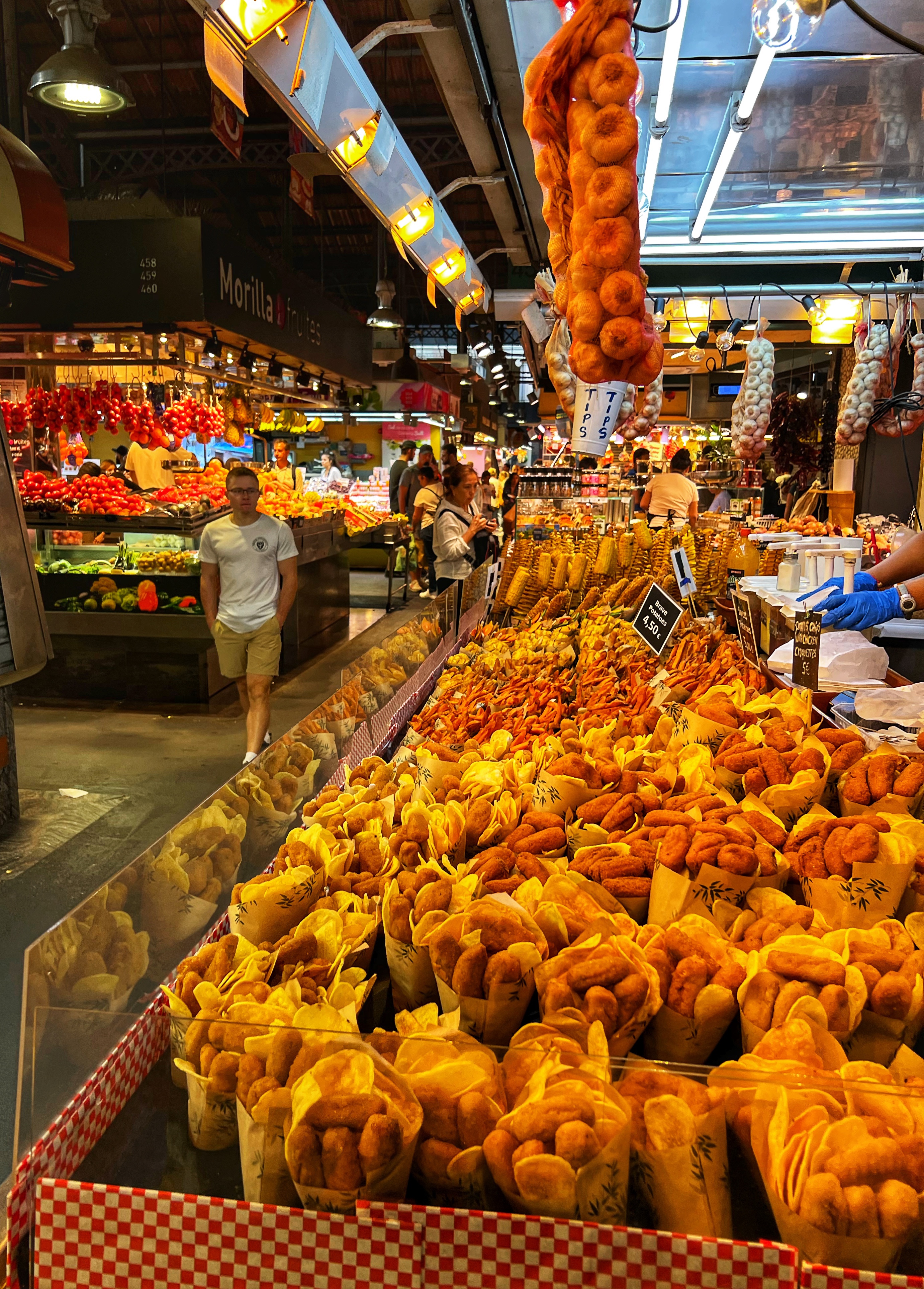 - La Boqueria – The most popular market in Barcelona, and for good reason! Just take a walk through and you can grab-and-go with all kinds of treats in your hand from fried fish to fruit smoothies. Tip: go just before closing to snag last minute deals. $