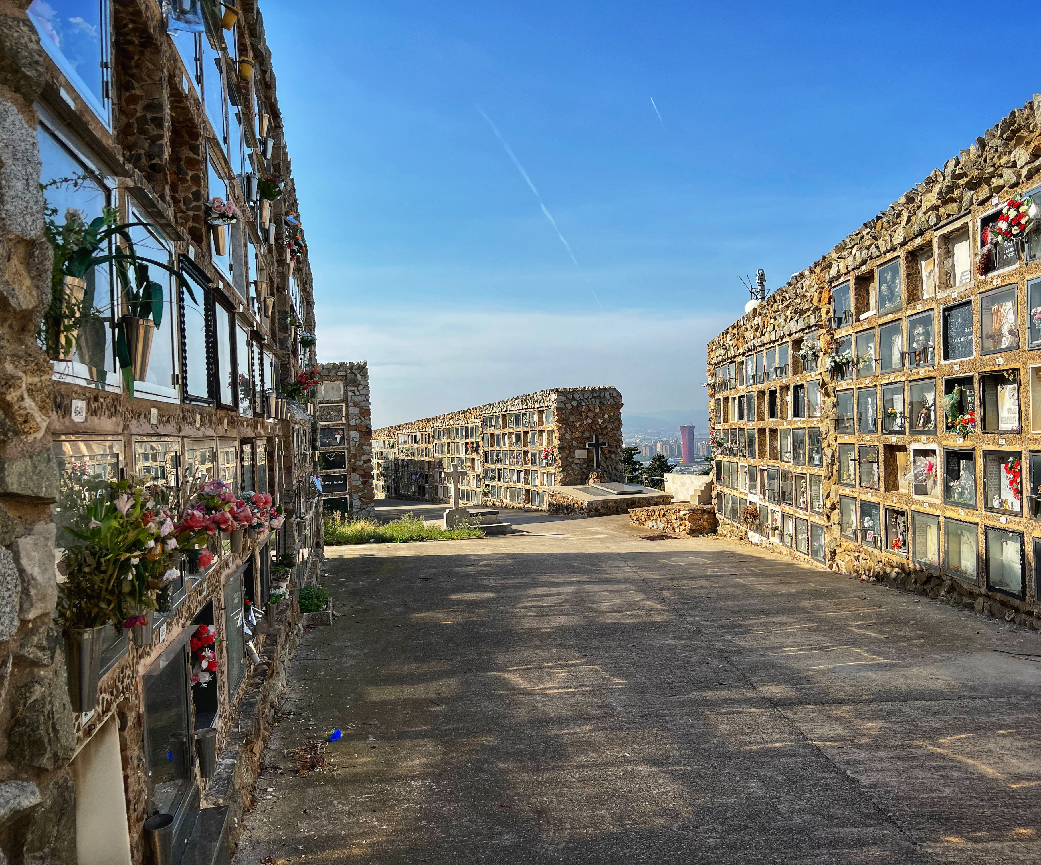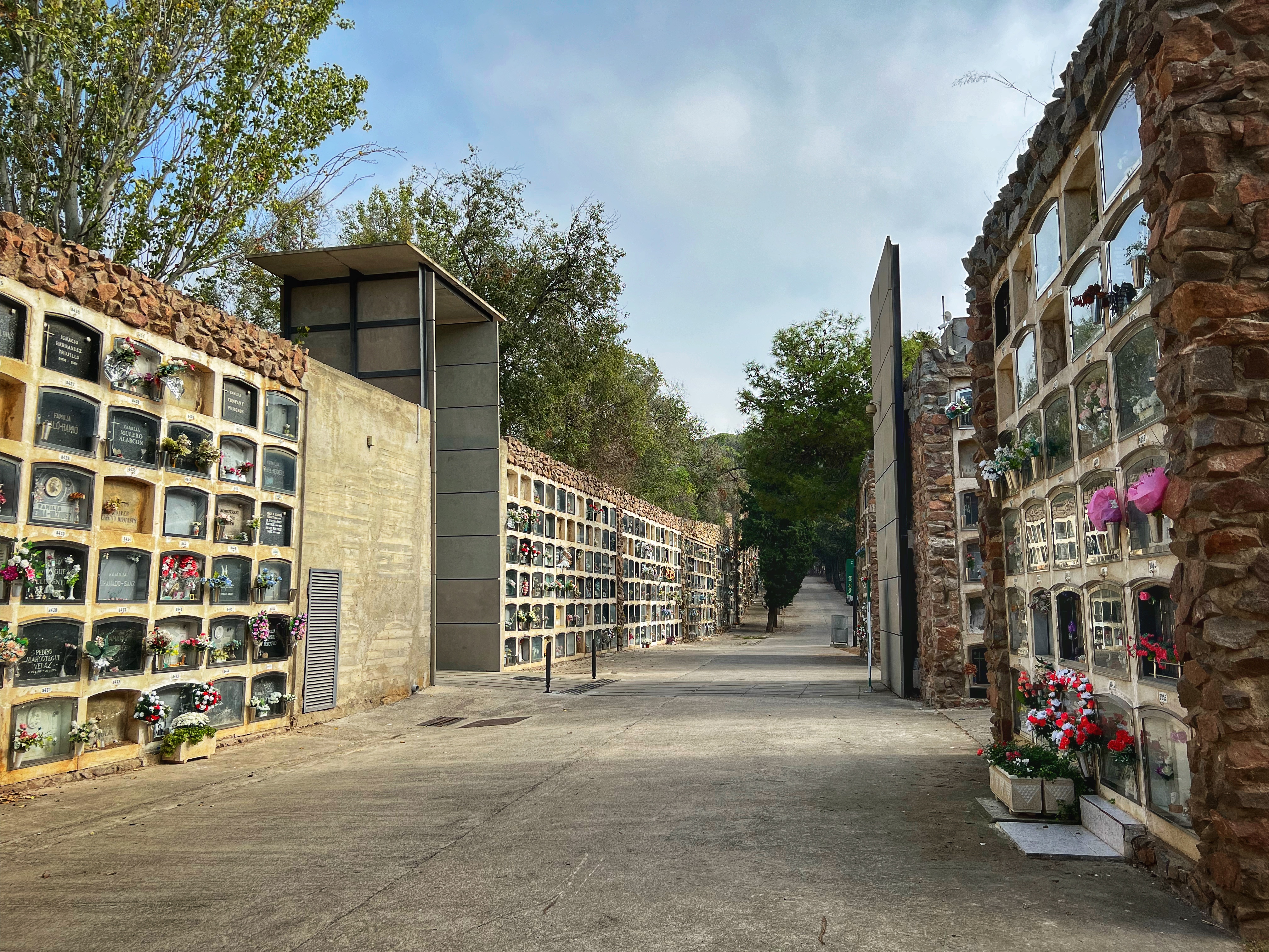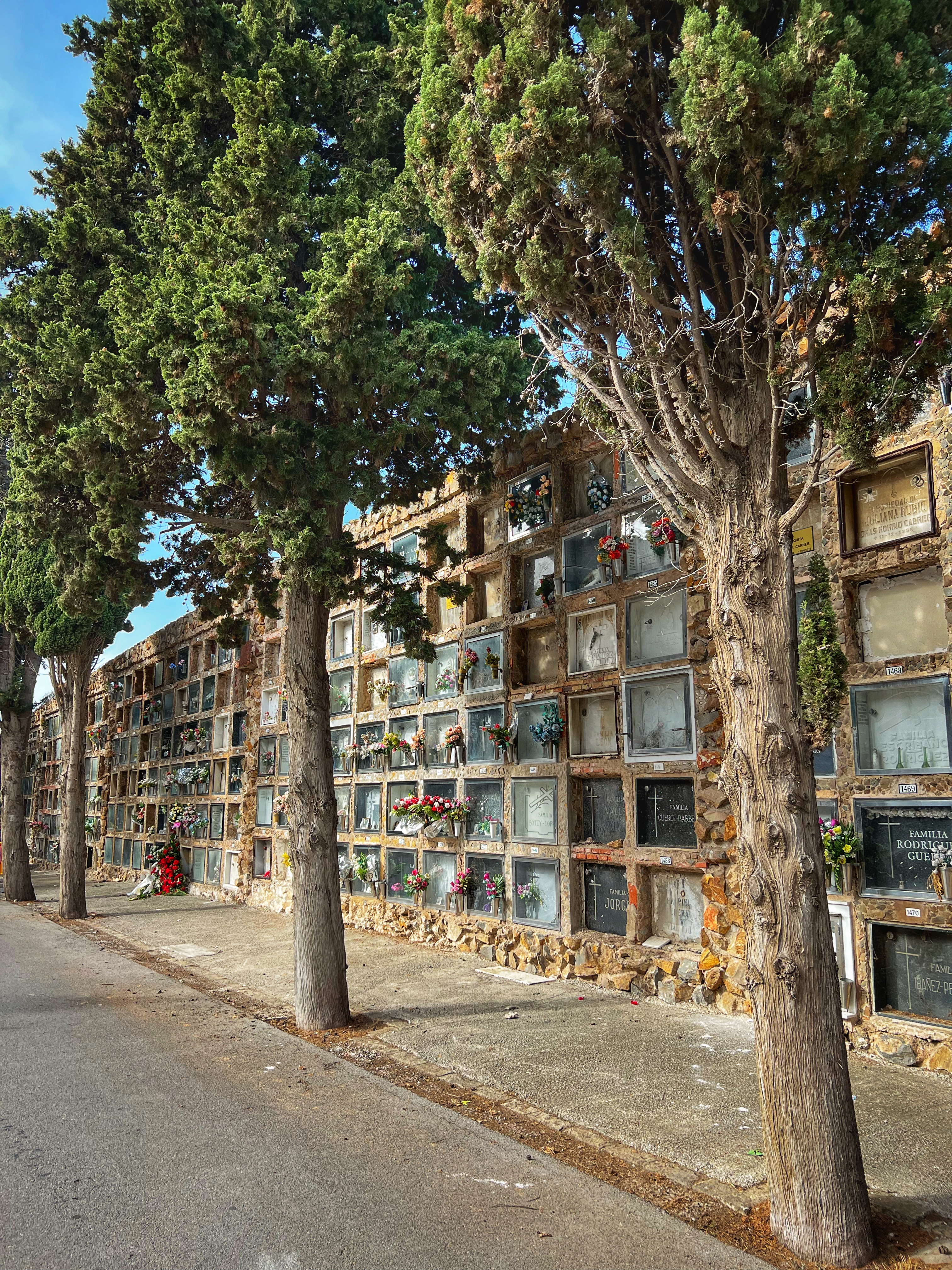 We visited over the Halloween weekend, so we thought it was appropriate to take a stroll through one of the largest cemeteries we have ever seen. From a distance it looks like a massive tiered cake, and upon closer look you can see the cemetery is made up of walls and walls of tombs and gravesites. The land is very well mapped out, and we were able to find the graves of several prominent figures including Joan Miró. Neither of us had ever seen a cemetery quite like this, with tall stacked coffin cubbies, and it was marveling to think that it covers 56 hectares (almost 140 acres). In all, the Montjuïc cemetery is the final resting place of over 1 million people and they all have incredible views overlooking Barcelona’s Balearic Sea coast. Learn more about Montjuïc cemetery here. It is so huge it took us over 2 hours just to walk casually through it – and we barely covered 20% of the place!