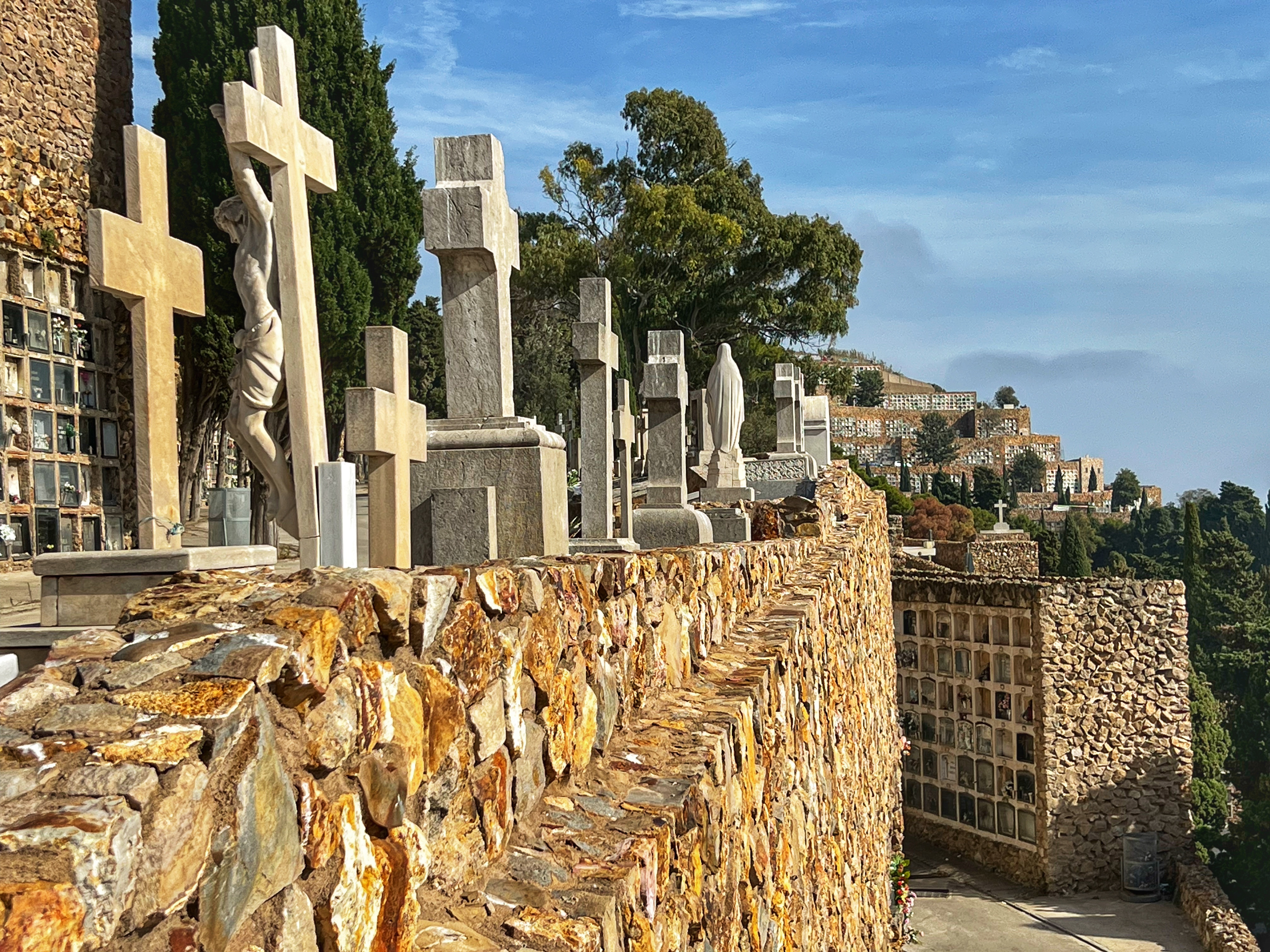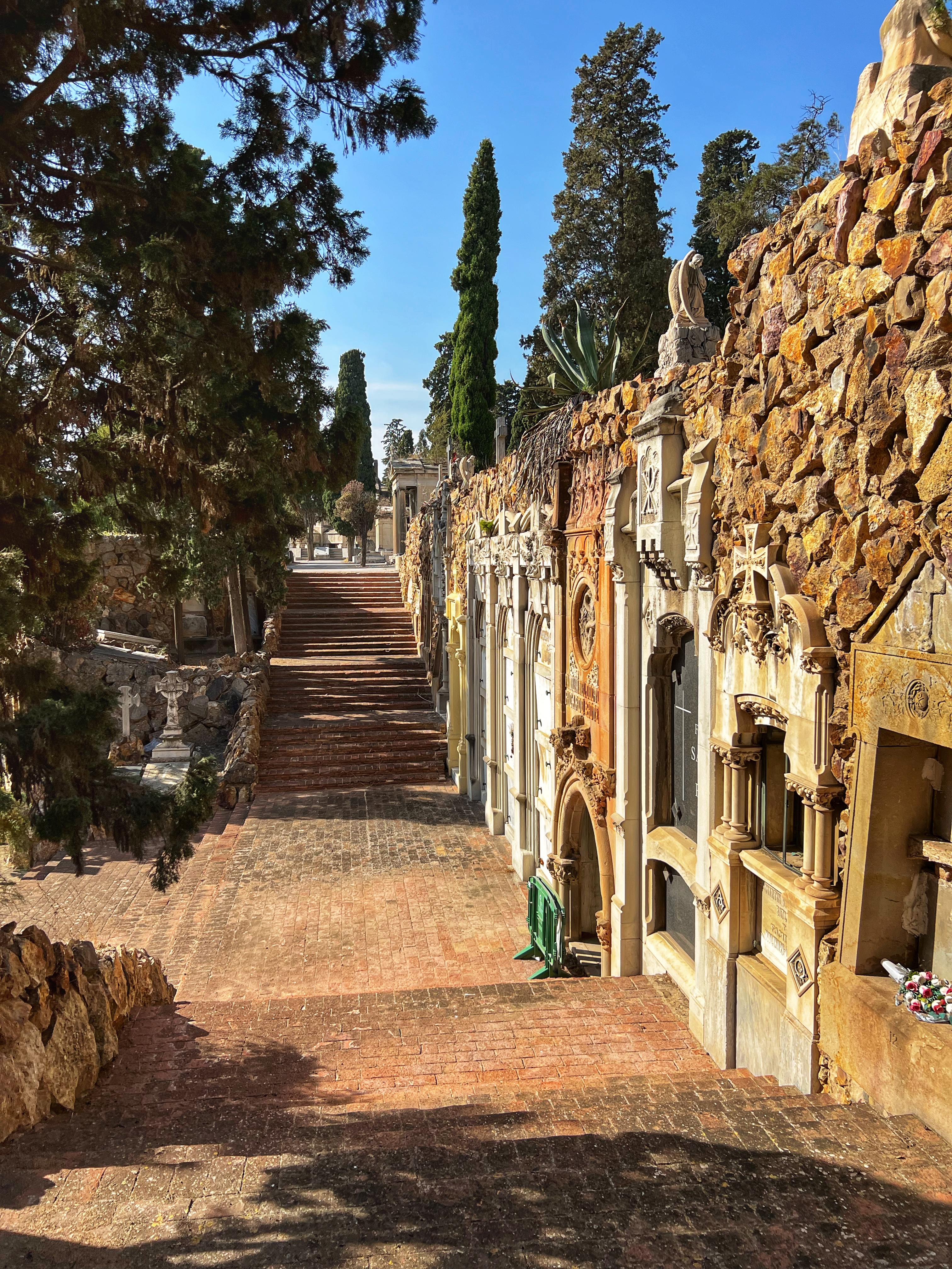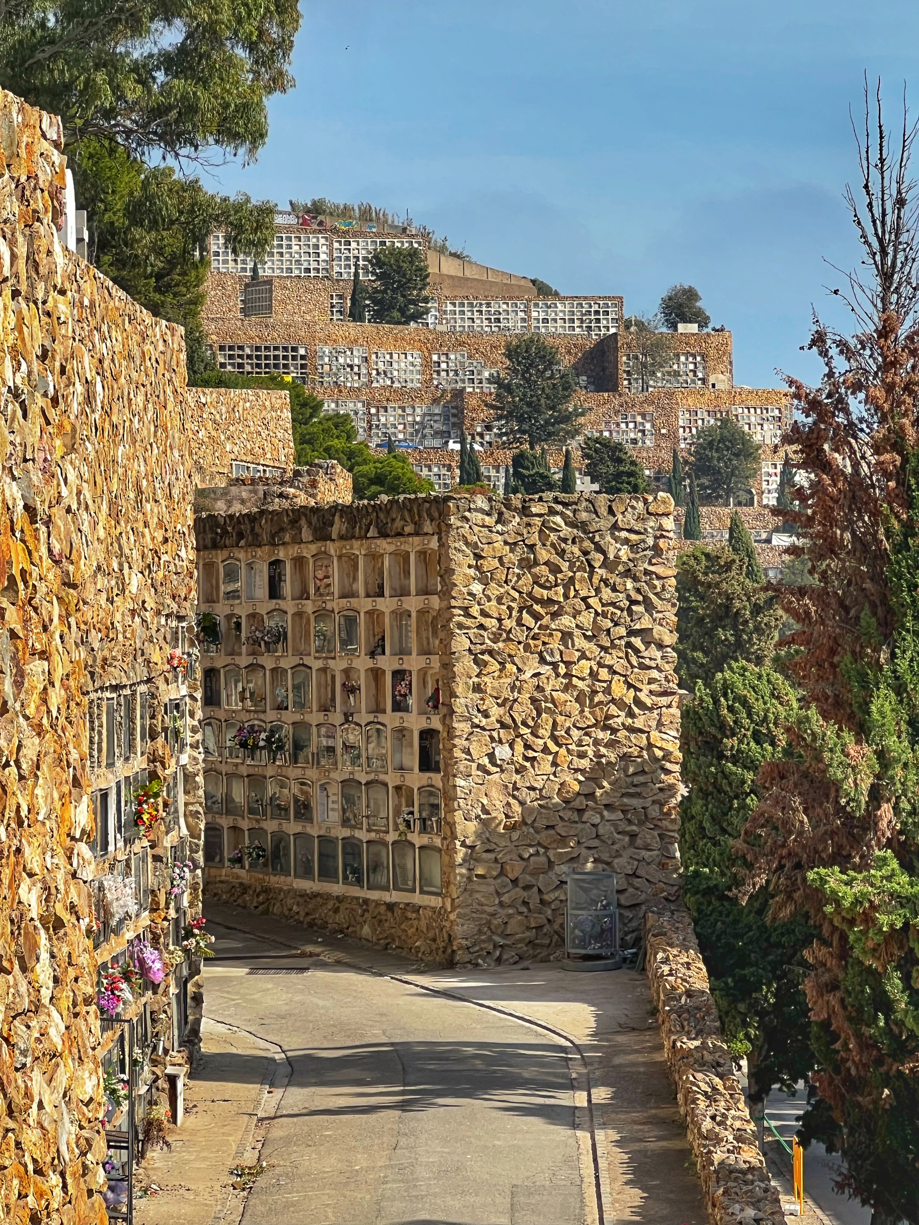 Although we didn’t tour the Montjuïc Castle, I would love to one day. It is only €9/adult to visit and has very interesting history. It began as a beacon, then a fort, then a fortress, and finally a castle. Learn more about it here. Along the shore side of Montjuïc there are several lookout platforms called “Miradors” in google maps. Keep an eye out for the Monumento a la Sardana, paying homage to the national dance of Catalunya. There are gardens (including a botanical garden), parks, playgrounds and fountains. You can walk just about everywhere – so wear comfortable shoes! The stroll from the castle down to the cemetery had especially nice views.