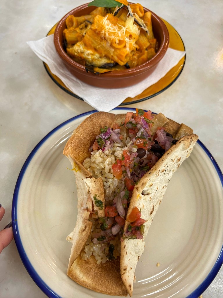 - Flax & Kale – There are several locations for Flax & Kale. They partner with Teresa Carles and have their own line of vegetarian foods you can buy and take home to cook, like a small grocery store. $$