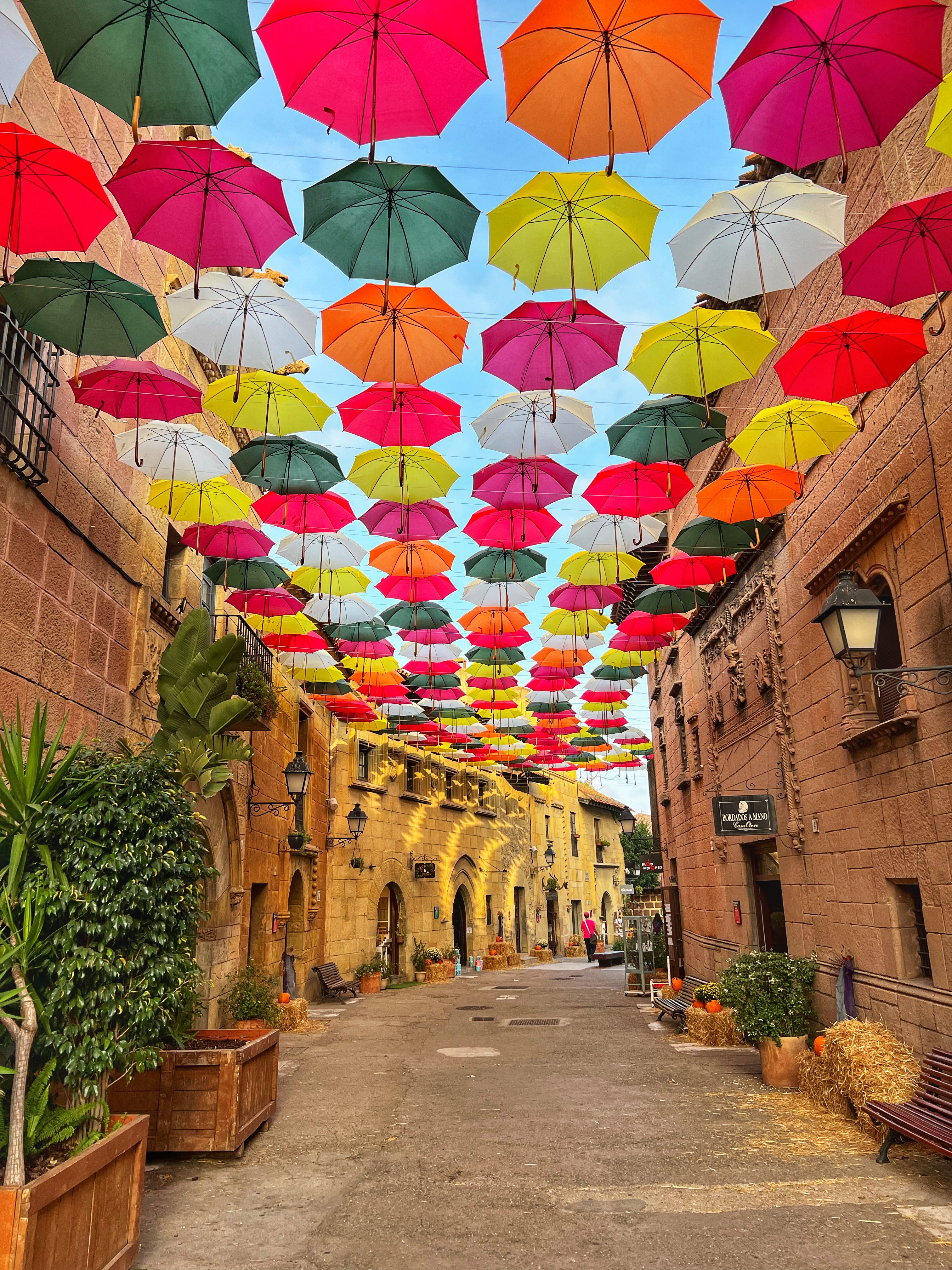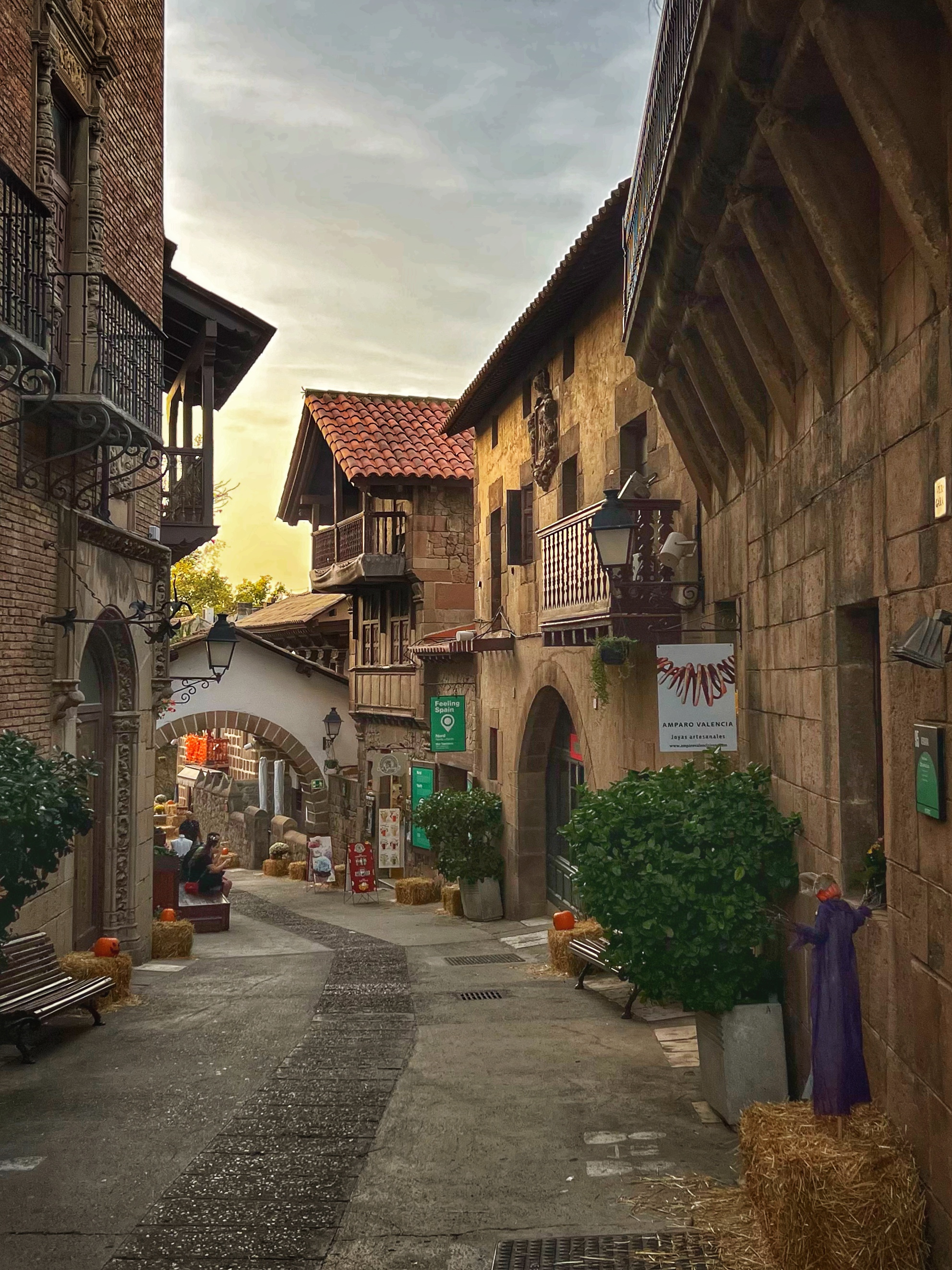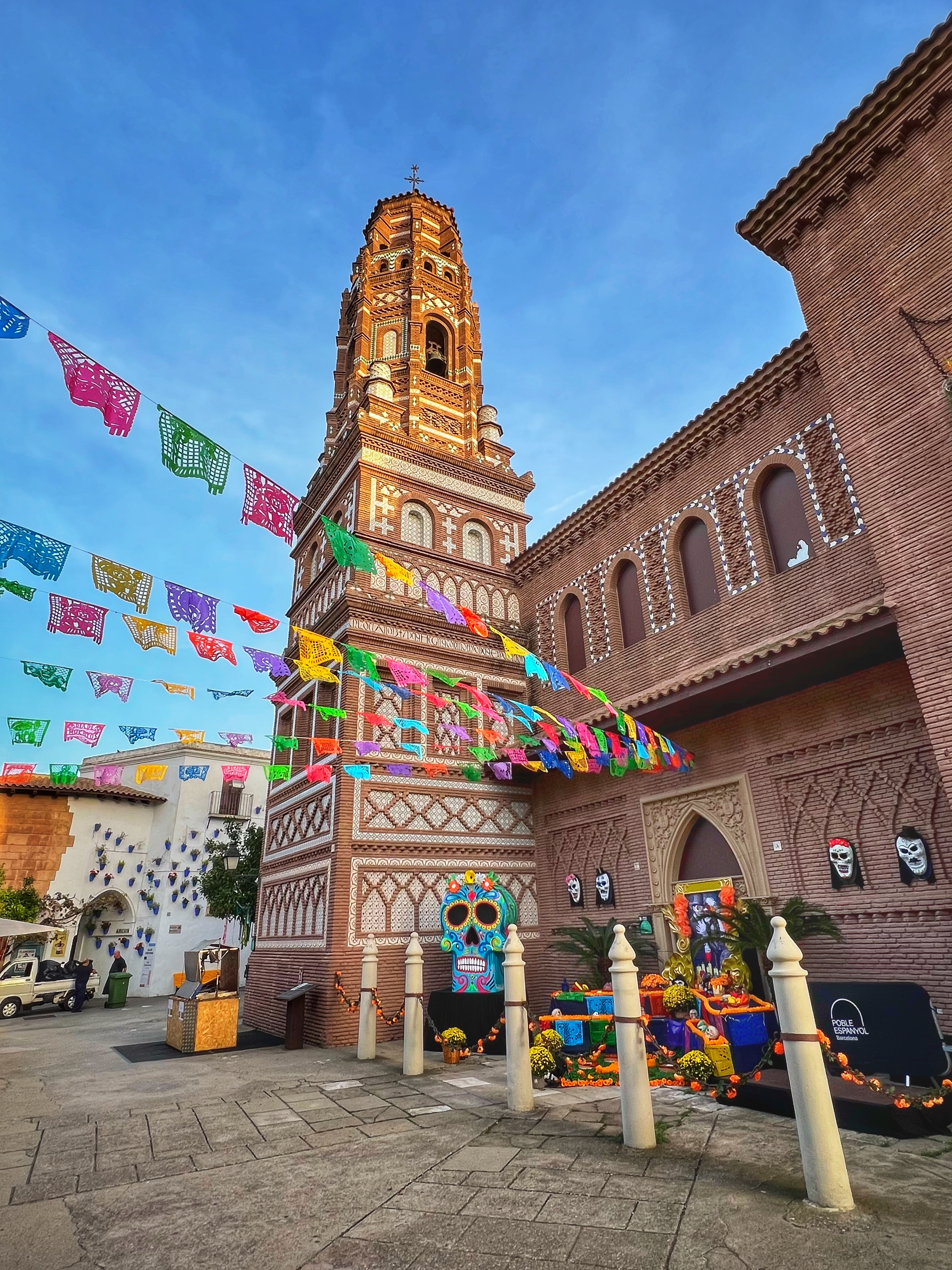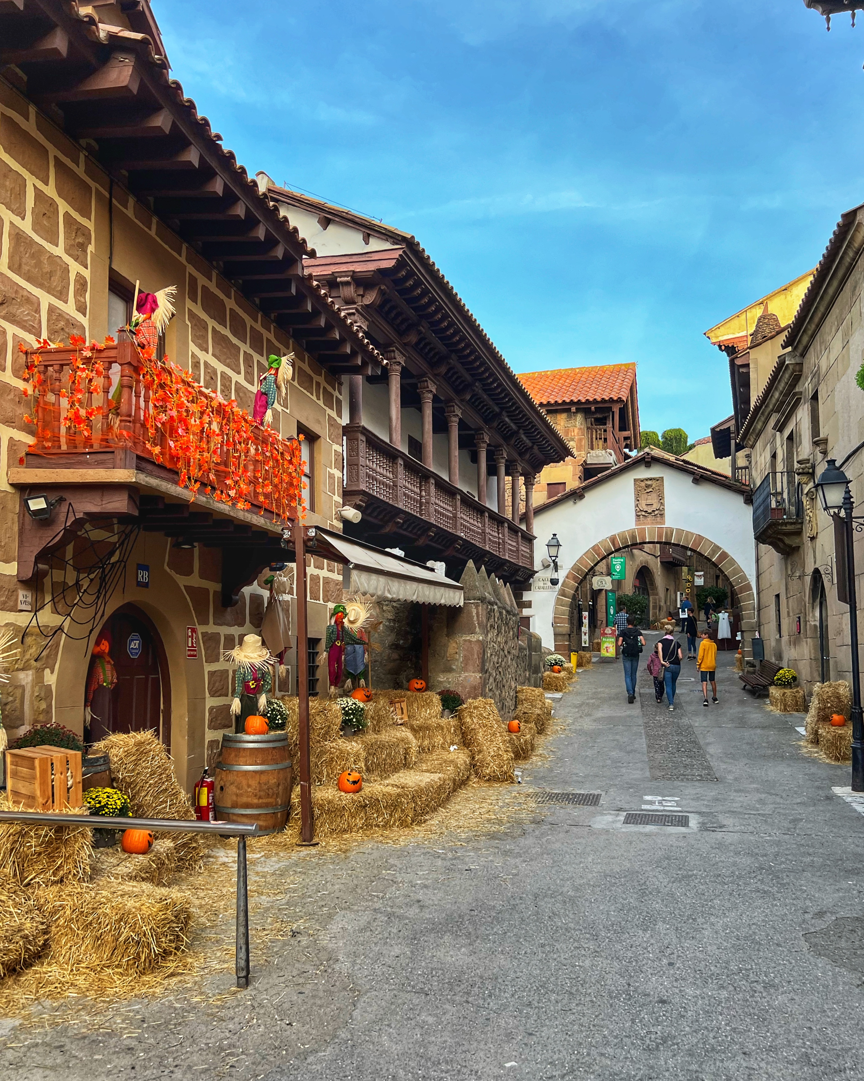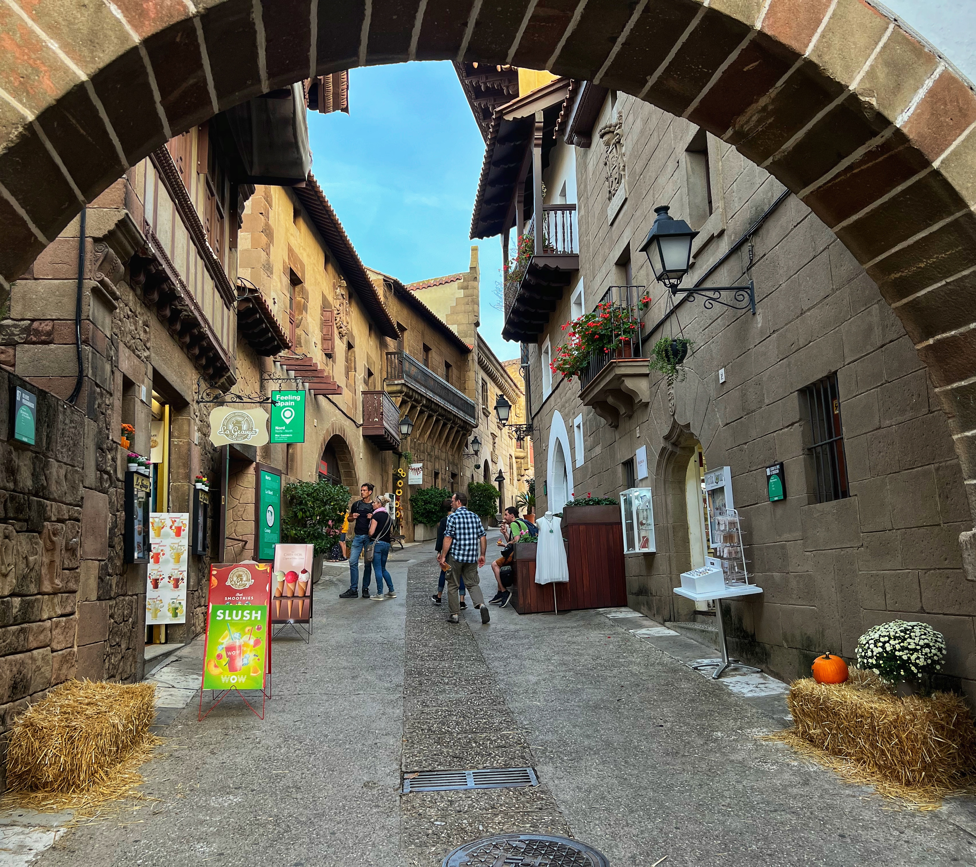 POBLE ESPANYOL: Technically this is an outdoor, living, architectural museum of sorts. It is an exhibit of architecture from all the regions of Spain so you can basically “walk through” all of Spain in one visit. I love how they decorate for the seasons and also have various events here. Again built for the 1929 International Exhibition, it is now used as a living museum. There are lots of little shops including food and art from all over Spain in the various “regions” of the little village. It was not at all busy when we visited in the evening. Opening hours are from 10AM-midnight most days.