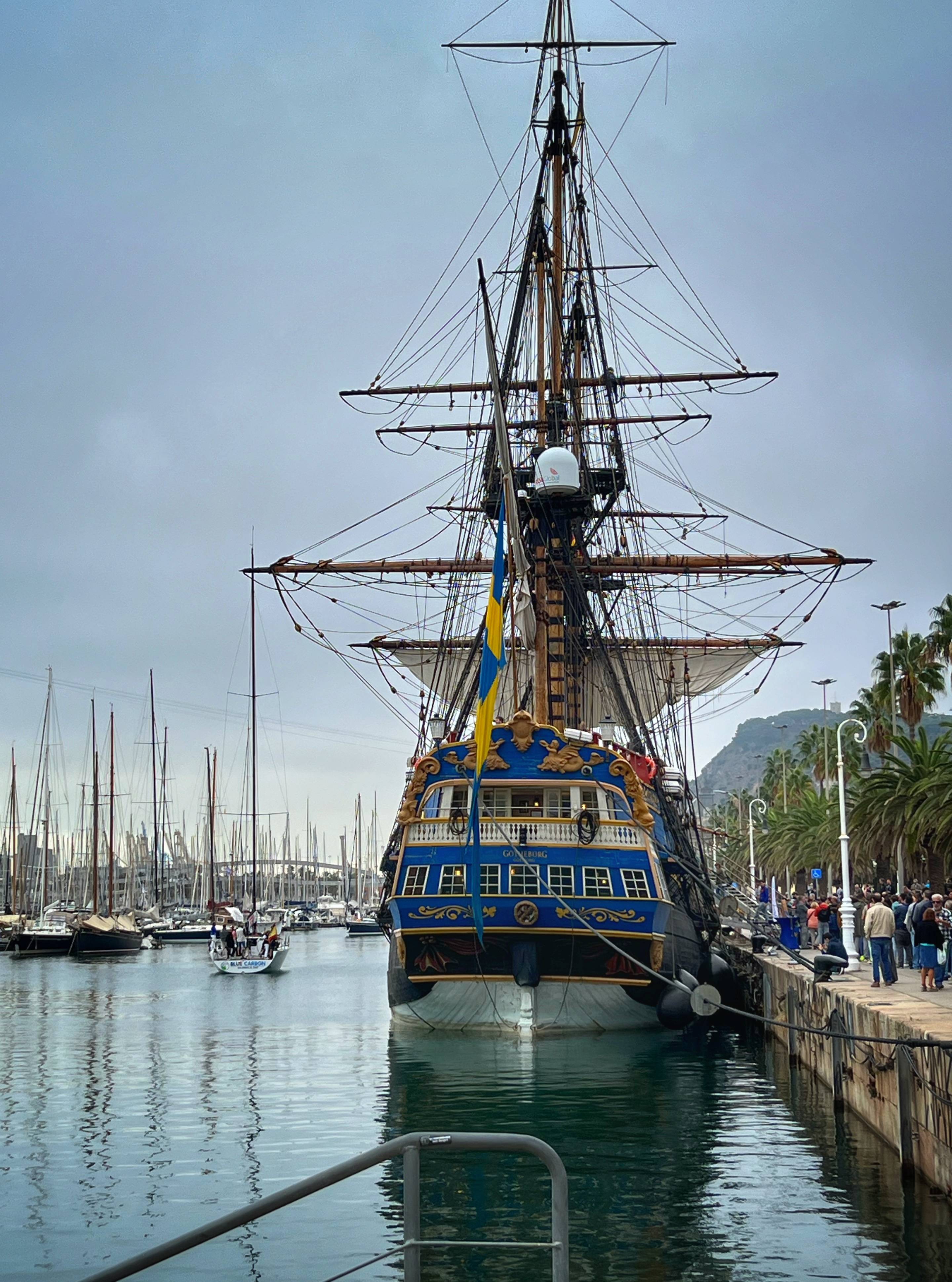 Day 7: AM Bri meet up with friends and visit Götheborg of Sweden ship, lunch at Rasoterra, Tour La Modelo prison, evening at Parc Güell, late dinner Xavier Pellicer.