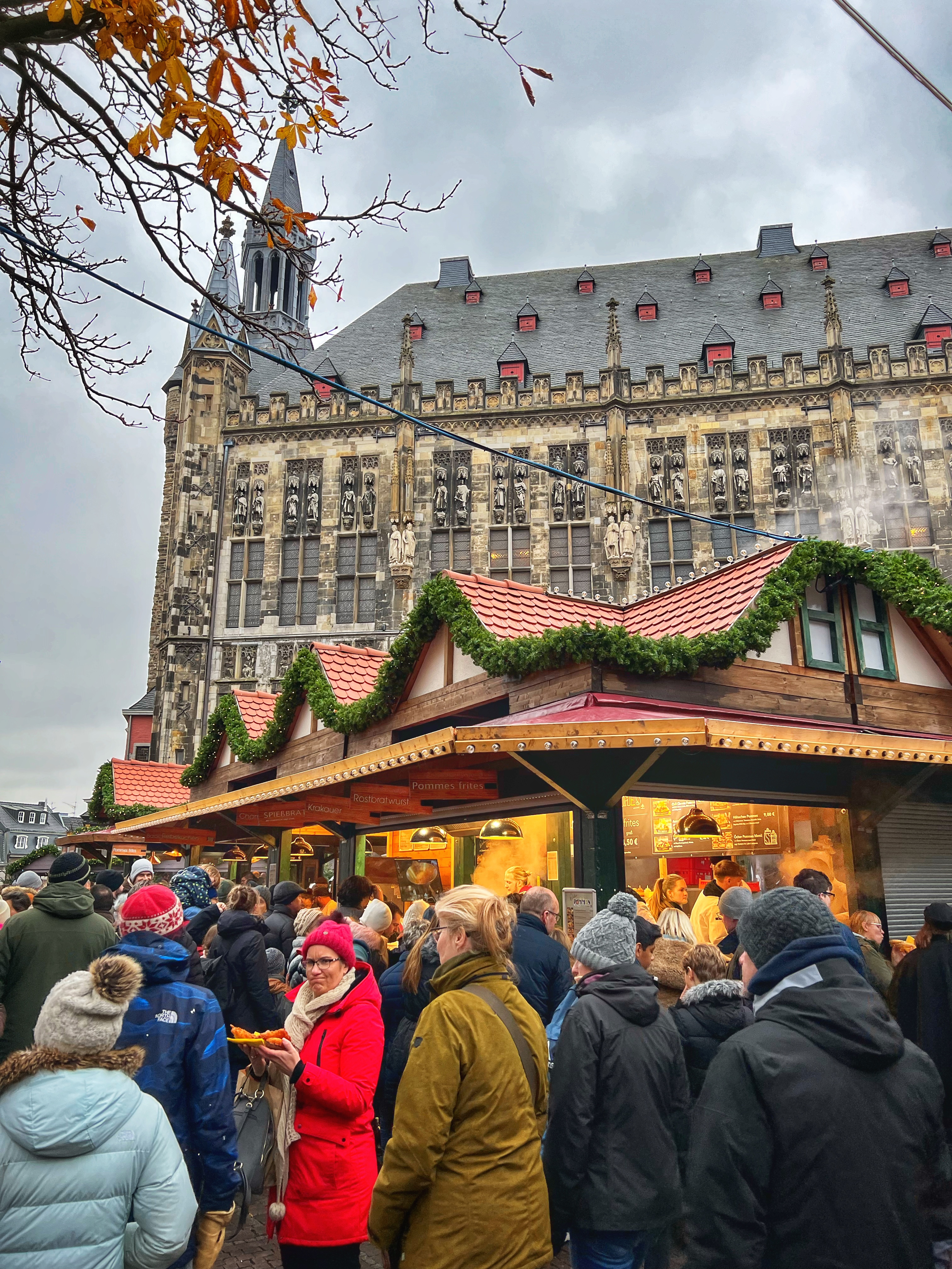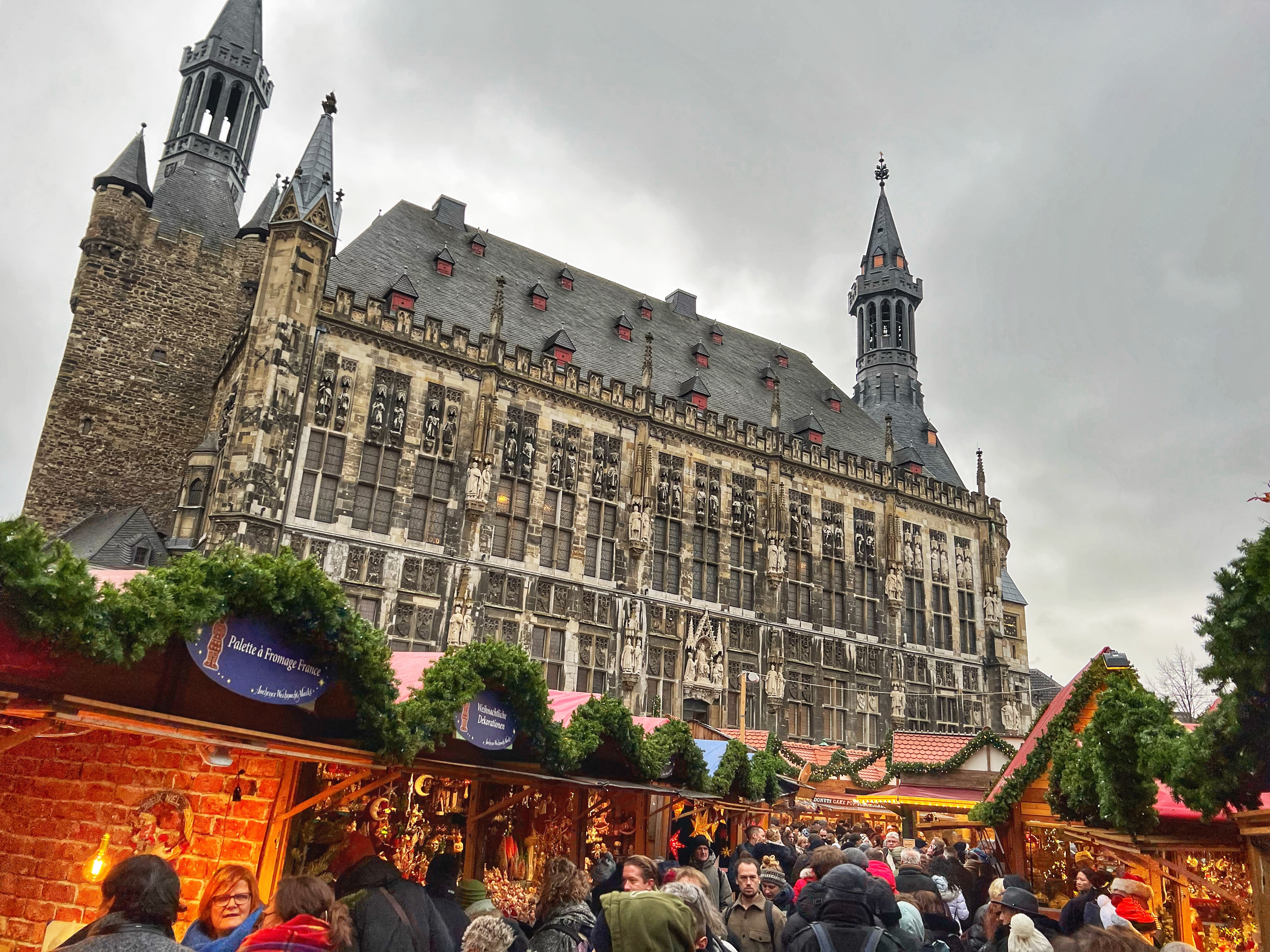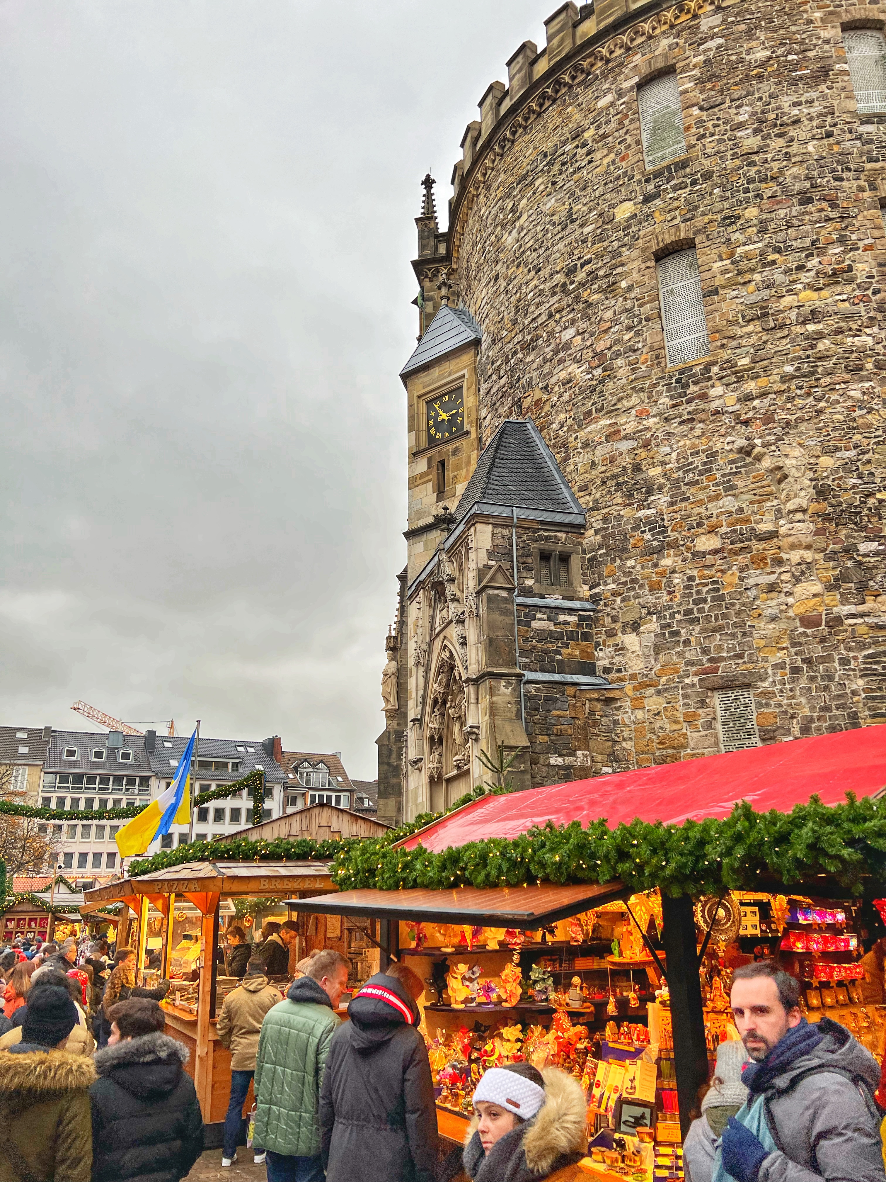 Aachen is the former capital of the Holy Roman Empire and is situated on the border of Germany, Belgium and the Netherlands. It has been an important city in the history of the region as evidenced by the well preserved Aachen Cathedral that dates back to the 8th century (a UNESCO World Heritage site) and the Rathaus that dates back to the 14th century. The Christmas markets are nestled into the streets downtown and appear to be hugged by these great structures.