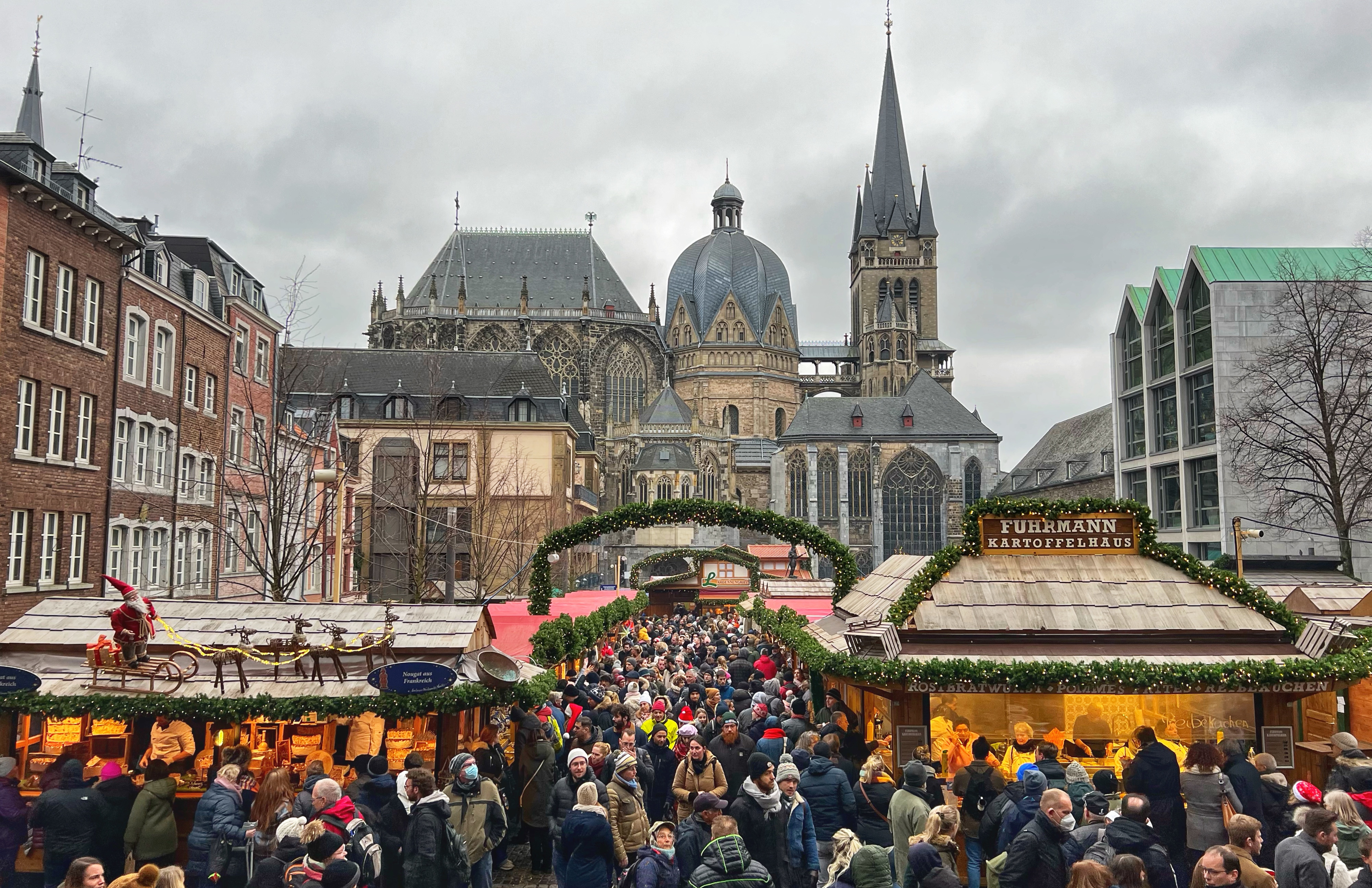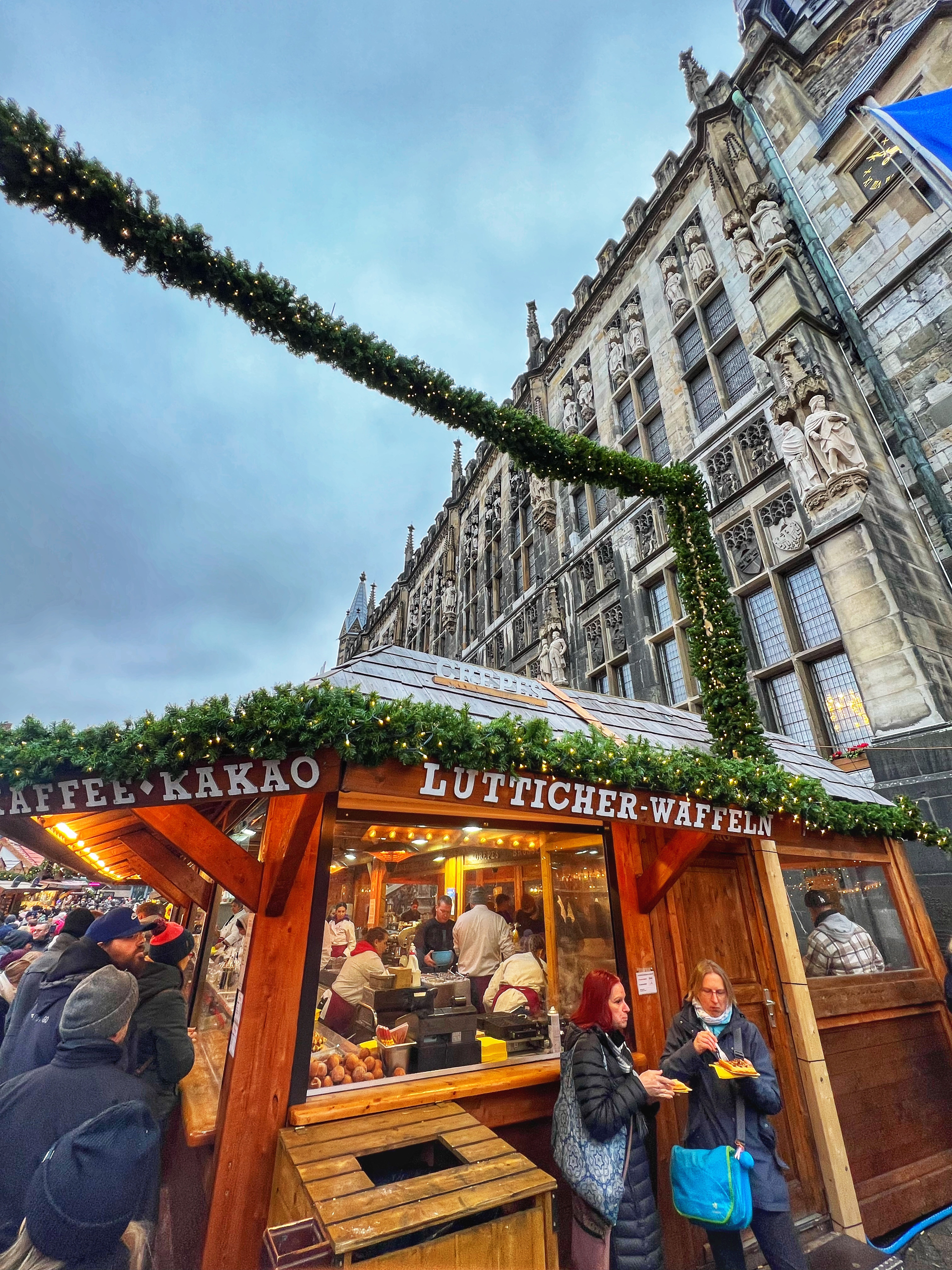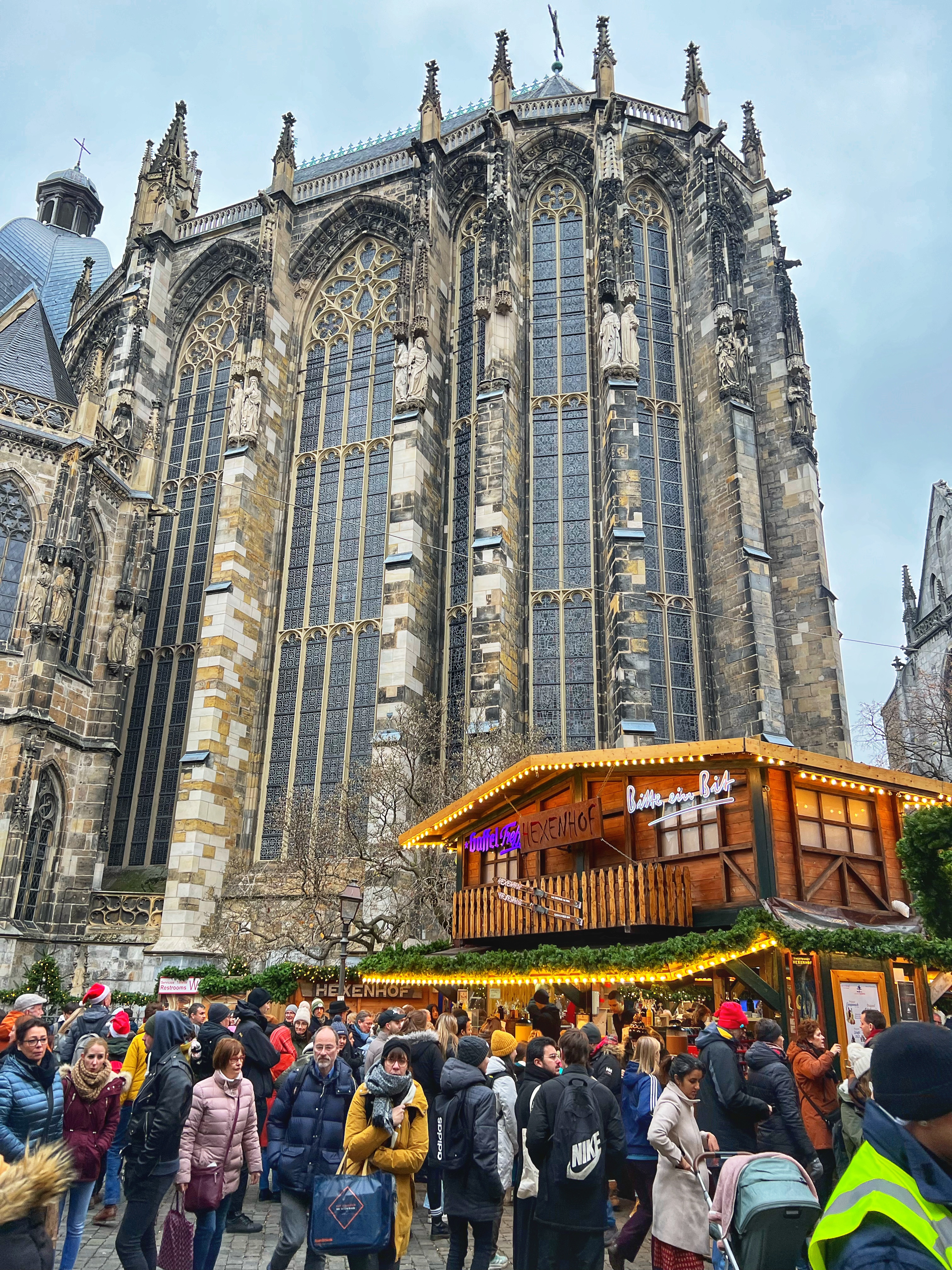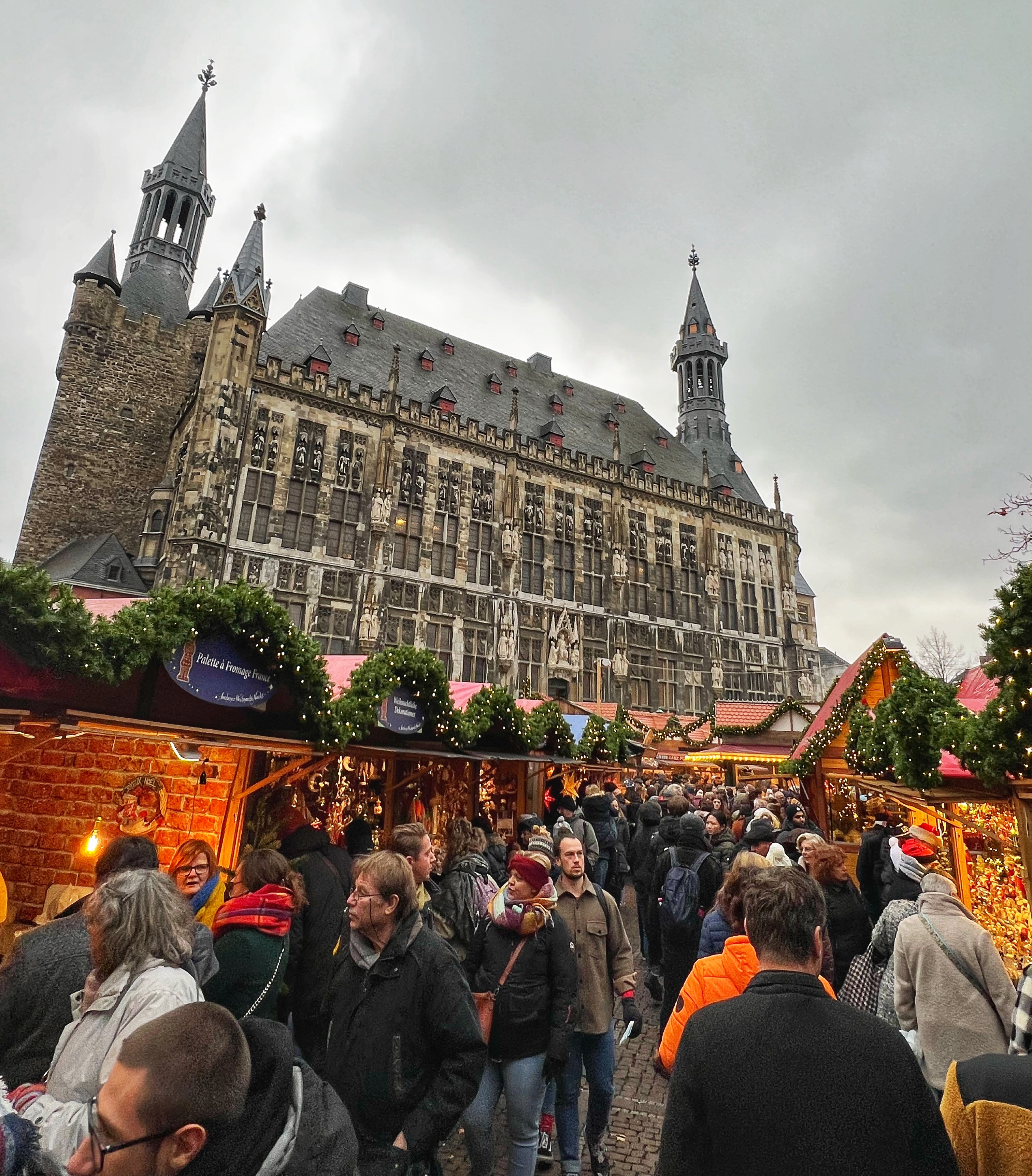 Aachen is the former capital of the Holy Roman Empire and is situated on the border of Germany, Belgium and the Netherlands. It has been an important city in the history of the region as evidenced by the well preserved Aachen Cathedral that dates back to the 8th century (a UNESCO World Heritage site) and the Rathaus that dates back to the 14th century. The Christmas markets are nestled into the streets downtown and appear to be hugged by these great structures.