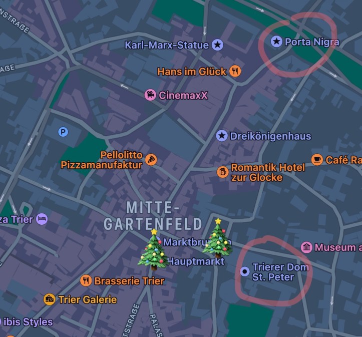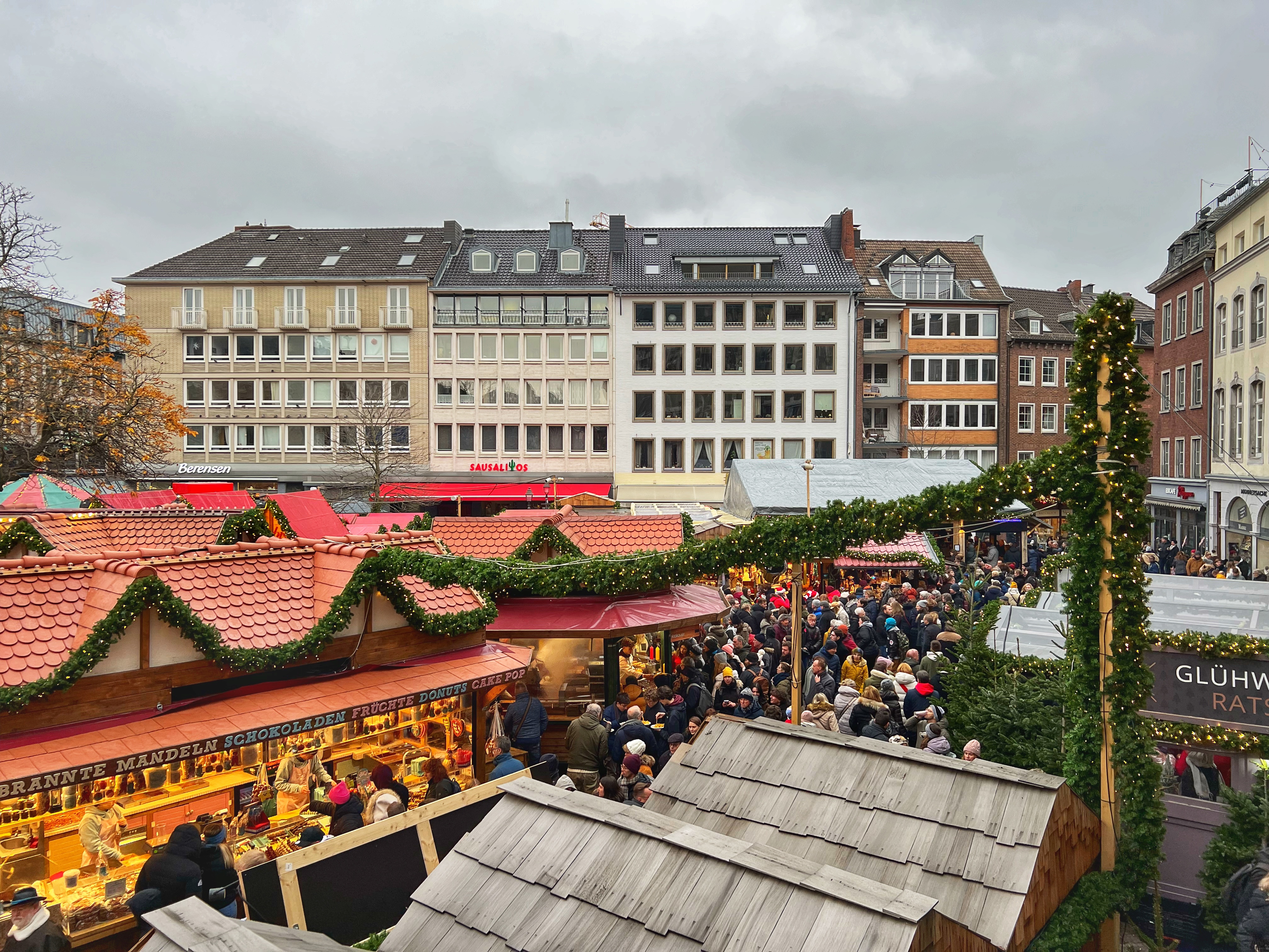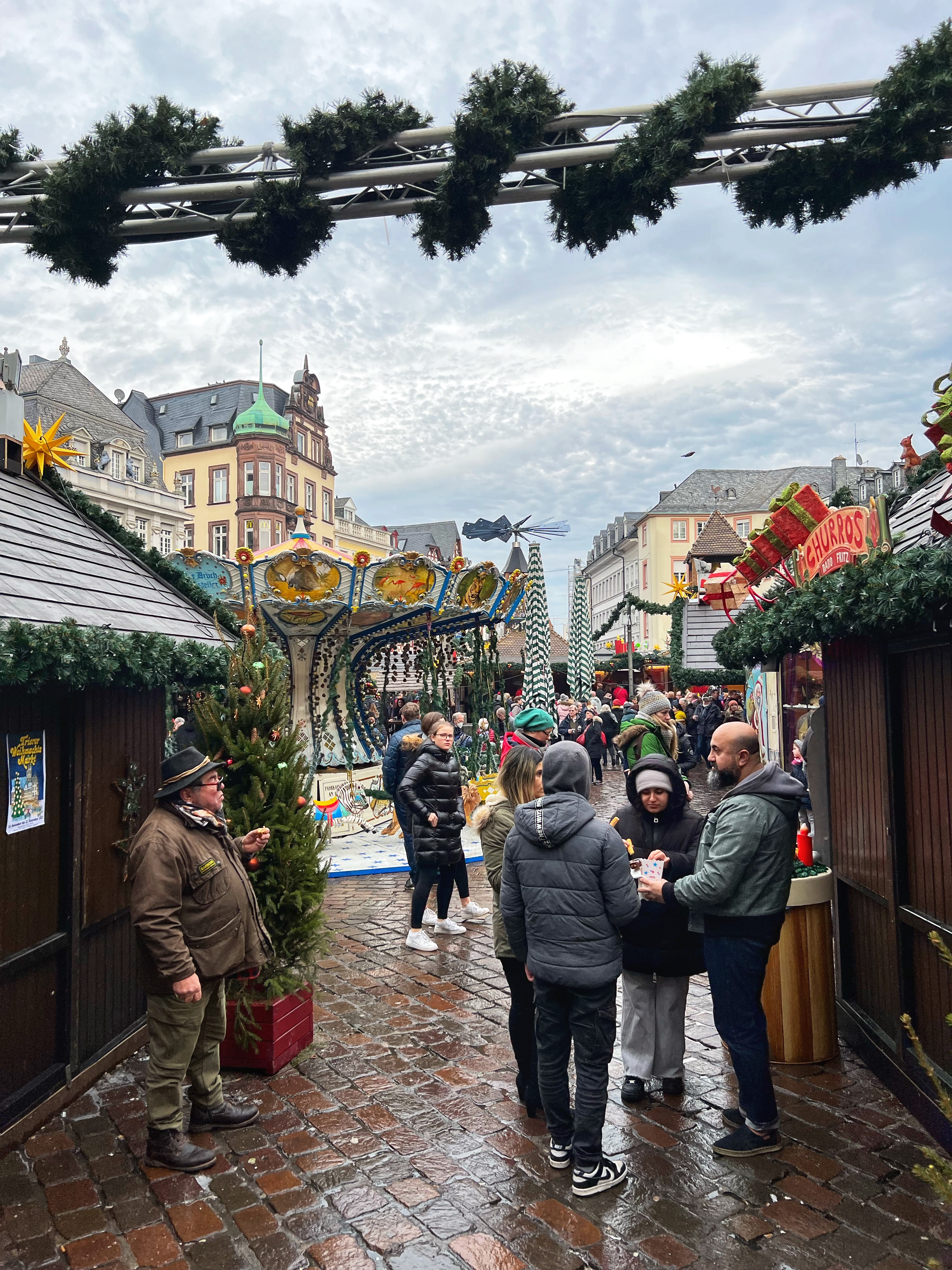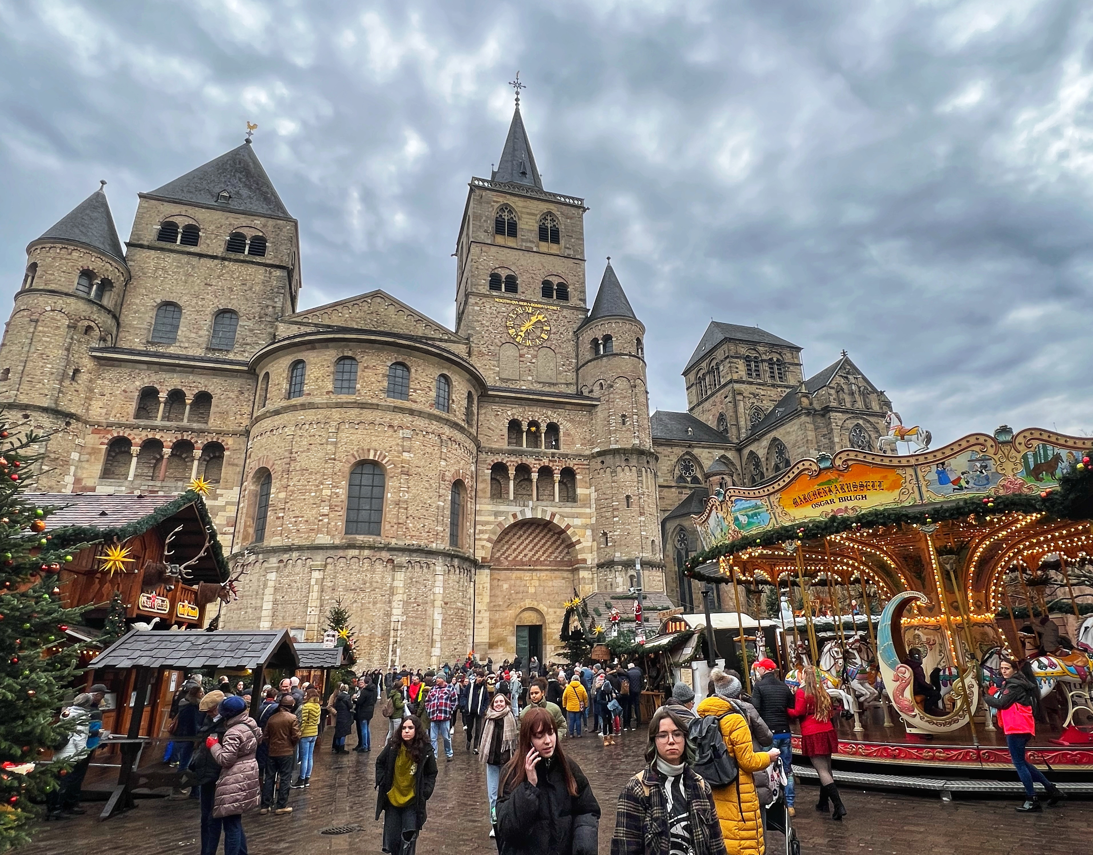 Trier is known as the oldest city in Germany, as evidenced by the monuments and cathedrals on the UNESCO World Heritage site that date back to the Holy Roman Empire. It is located about 2 hours and 15 minutes south of Aachen on the border of Luxembourg. When visiting Trier for the market, also make sure you have time to view Porta Negra, the great Roman gateway that is nearly 2,000 years old. Also the Trier Cathedral of St. Peter is magnificent and is over 1,000 years old! Another place of note in the city besides the charming Hauptmarkt where the bulk of the Christmas market takes place, are the Forum Baths, a museum of 2,000 year old Roman baths encased in a glass cube. So cool.