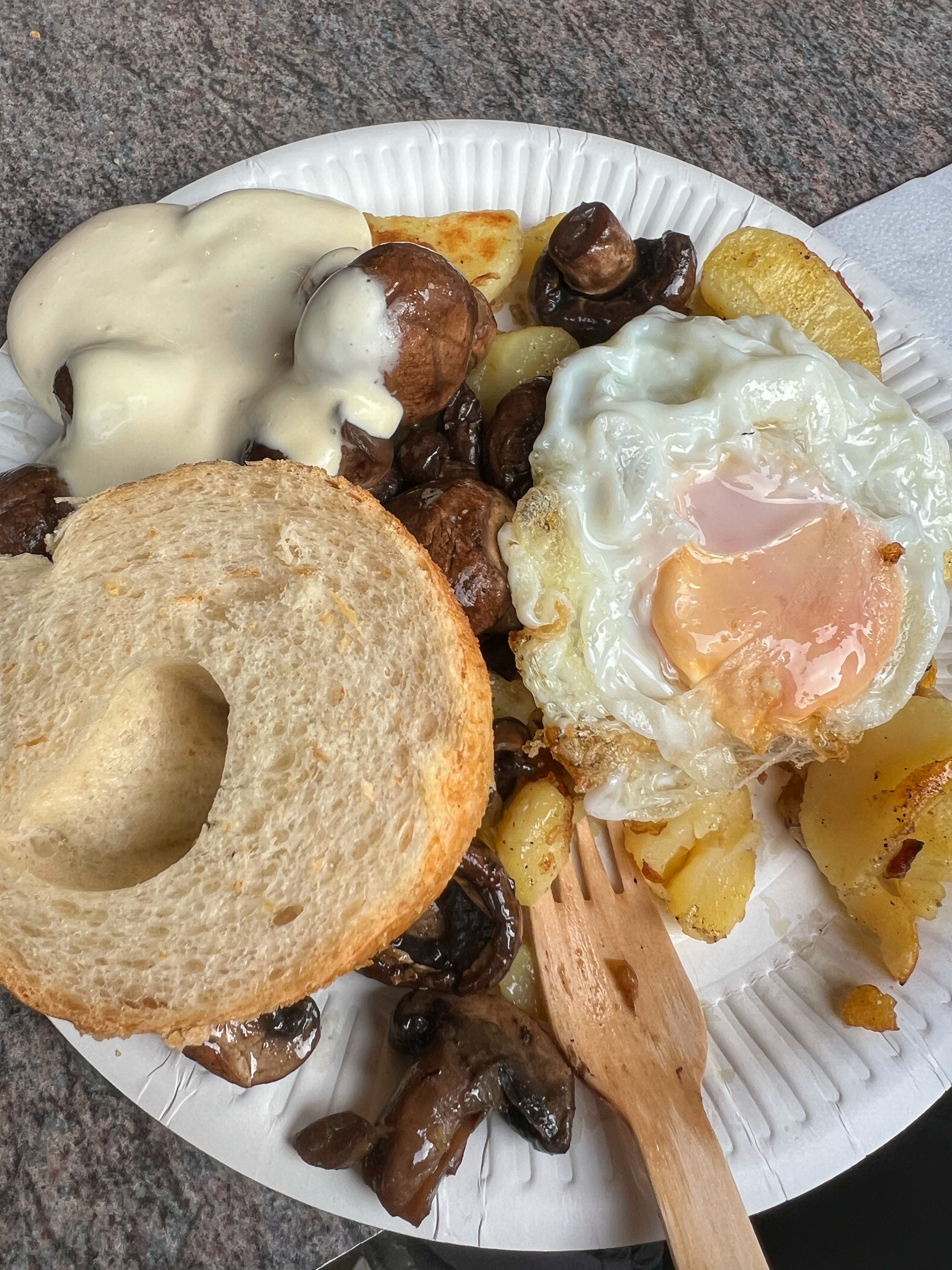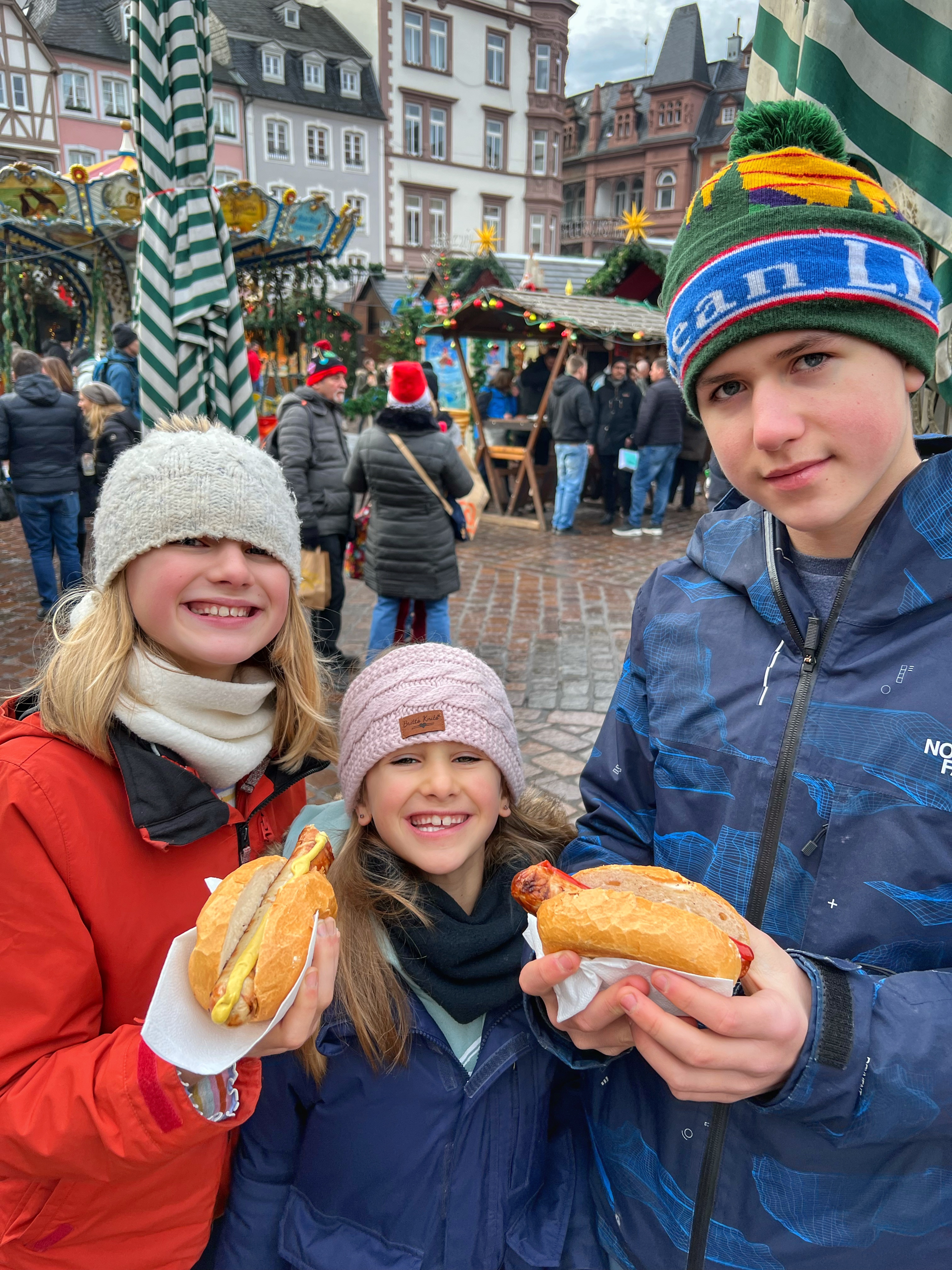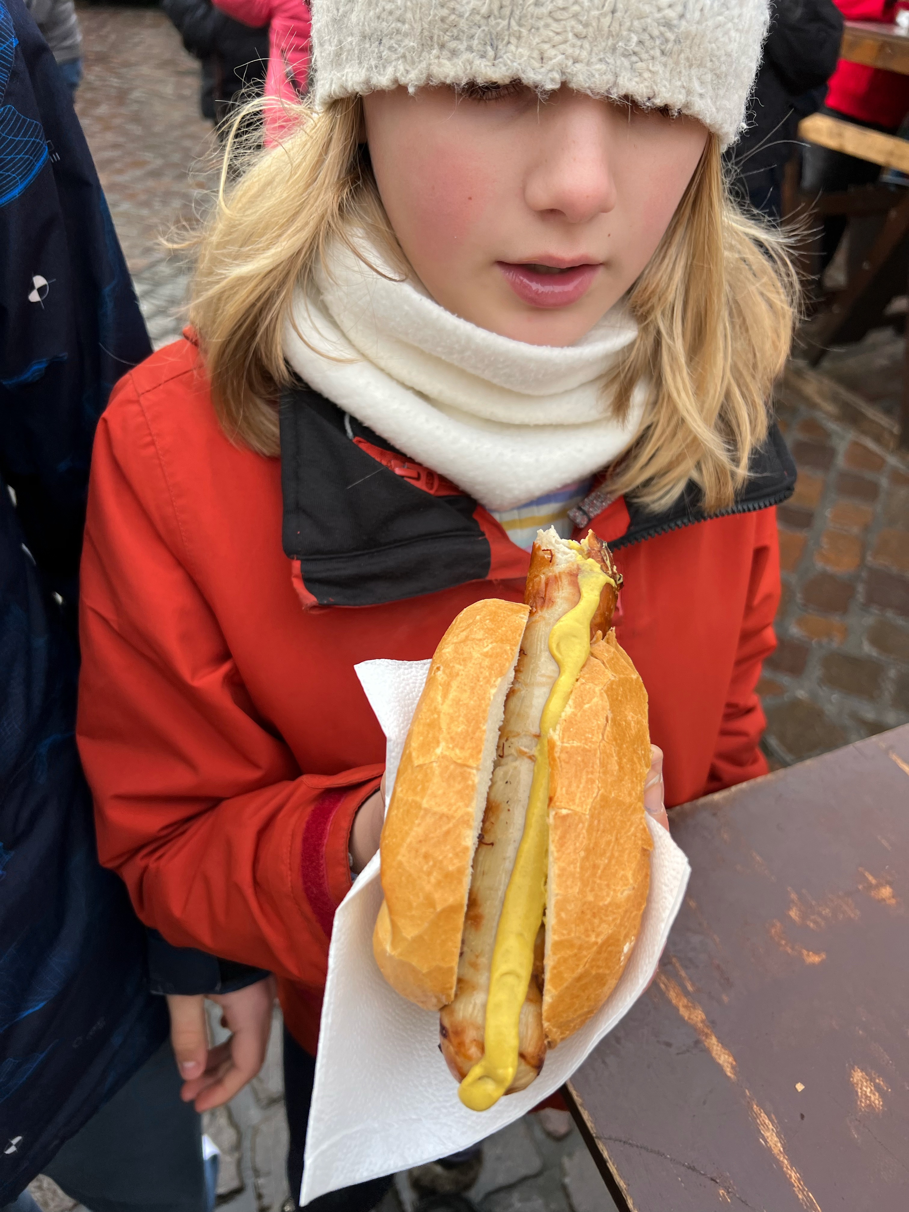 FOOD: The food here might be my favorite from all the markets we visited. The only bummer is its cash only everywhere, so we had to come prepared. Of course Trier has the classics like brats and curry worst (the kids tried that but I didn’t – no meat for me) and potato pancakes, but there is also the best langos (fried dough with sour cream, garlic and cheese) that I have had outside of Hungary, absolutely delicious potatoes, mushrooms, egg and garlic sauce plates (the kids flipped for this), and a desert classic to this area: dampfnudeln! This stuffed dome bread cake comes in fruity or chocolate (Nutella) type flavors and is drenched in sweet creamy sauce and is absolutely to die for.