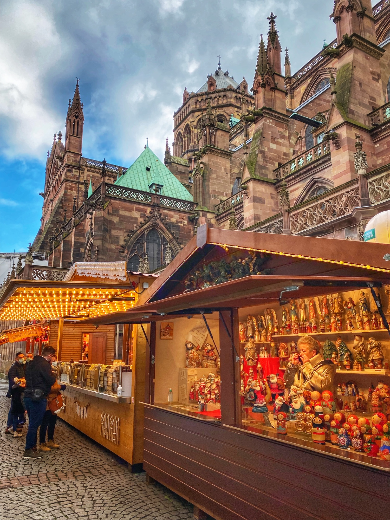 Strasbourg is over 2,000 years old and is known as one of the most important cities in the region for decades due to its strategic location. Today the city is second to Paris in terms of river port importance. It is also known for its many historic churches, international organizations, and perhaps most notable, the Christmas markets! Some say Strasbourg is the birthplace of Christmas markets, and although it may be true that it is one of the oldest dating back to the 1500’s (and the German word meaning Christmas market came from Alsace), the oldest is actually in Dresden that originated in the 1400’s. Strasbourg is fantastic to visit year round, but it is especially magical when lit up with millions of lights throughout their 13 market areas in the city. You could spend an entire weekend in Strasbourg and not see them all! Here is a little glimpse of what Christmas markets in Strasbourg are like, and you can compare it to the off season in the photos that follow…