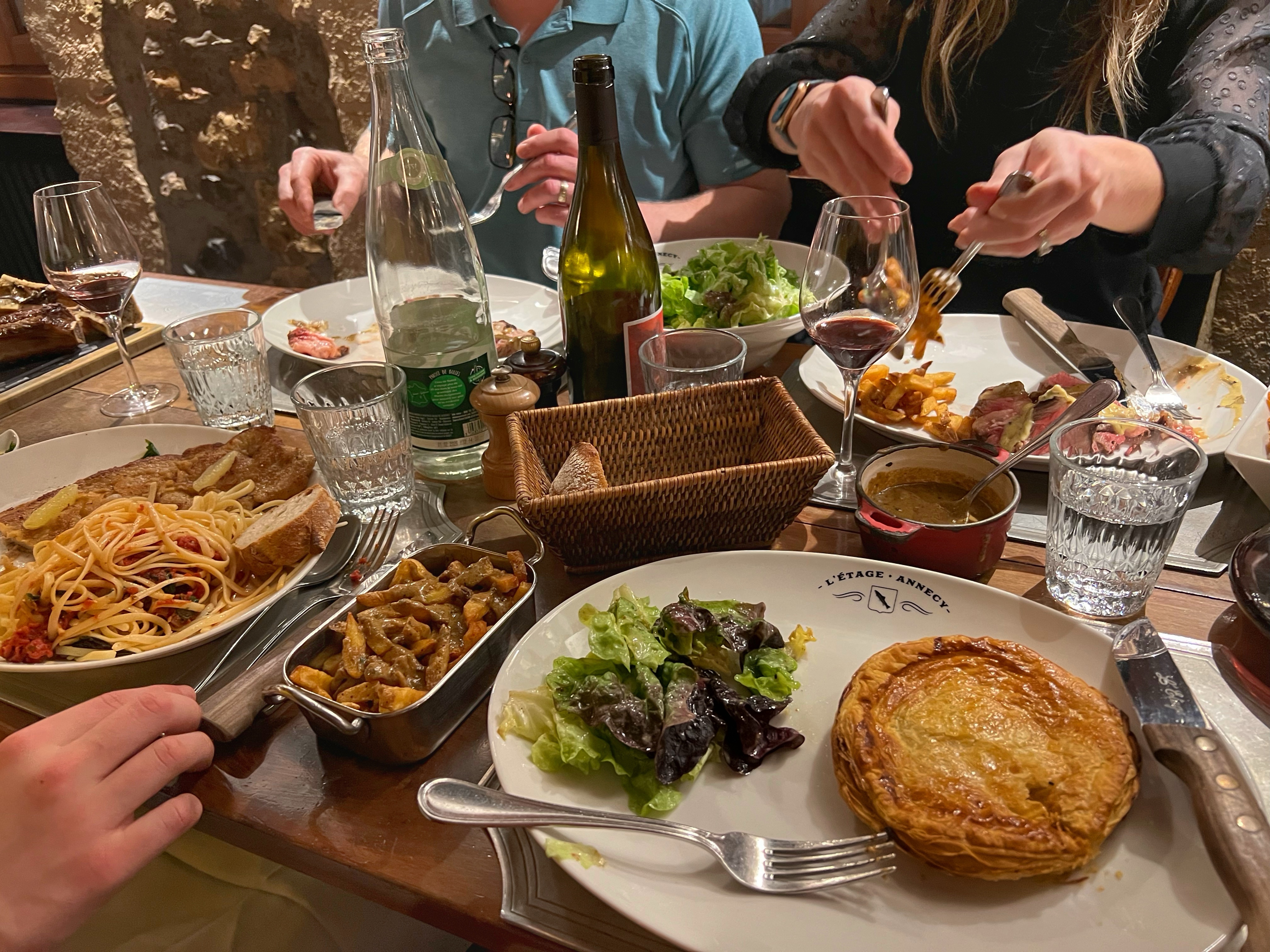 Speaking of restaurants, the highlight of our time in Annecy was our delectable meal at L’Etage (reservations required). We were so thrilled to get in and try their famous secret recipe Béarnaise sauce on all the things – especially the fries. Everything was so delicious! Highly recommend.