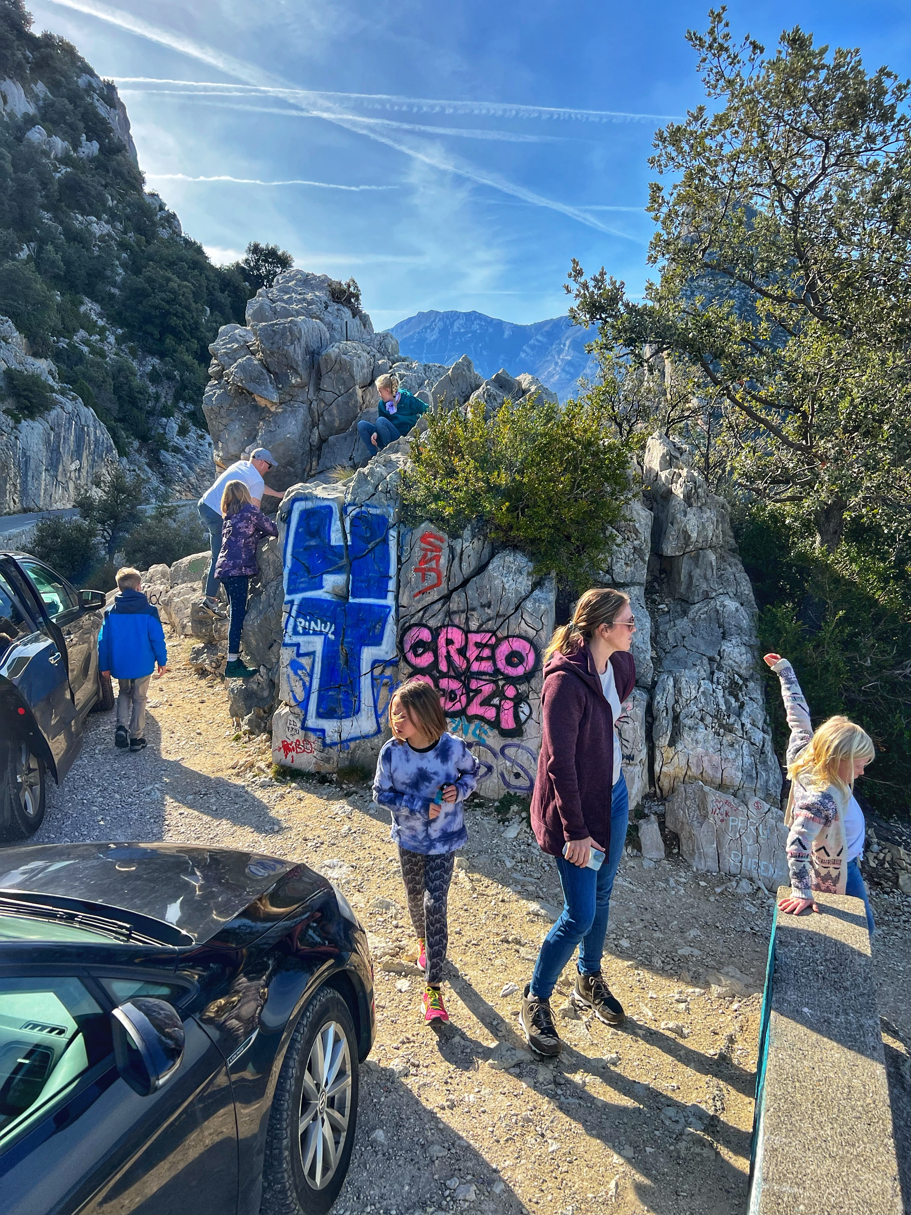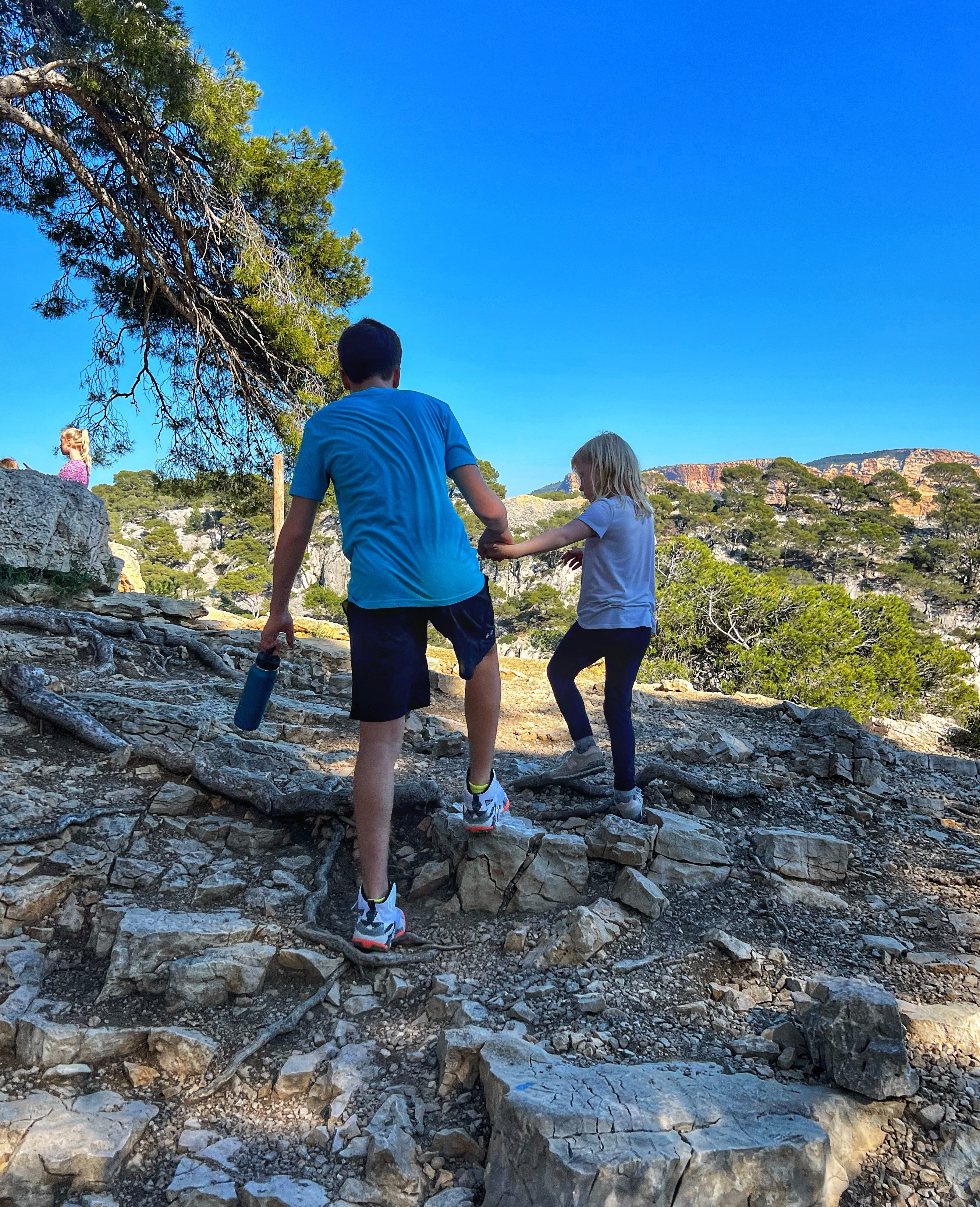 This was a lot of hiking for the kids, but they did great. They all LOVE rocks, and who doesn’t love to cool off in sparkling water after a hike? My son’s foot was still bothering him a bit from when he broke it 8 weeks prior (this was the first real test of how well it has healed) and he was a good sport about all that hiking, too. Needless to say we were all ready for a snack and another dip in the pool back at the hotel after this day that started off pretty tense (not knowing if we would get gas or not) and ended up blowing our minds with beauty! We spent a total of 3 hours exploring the Calanques and we could’ve easily spent most of the day here if we didn’t have any monkey wrenches thrown into our plans.