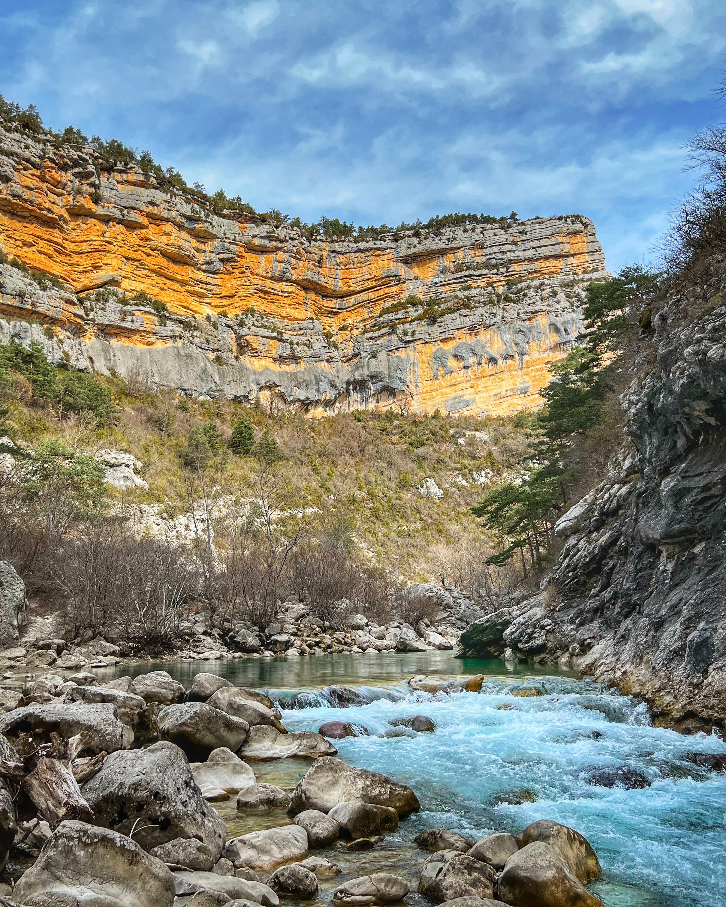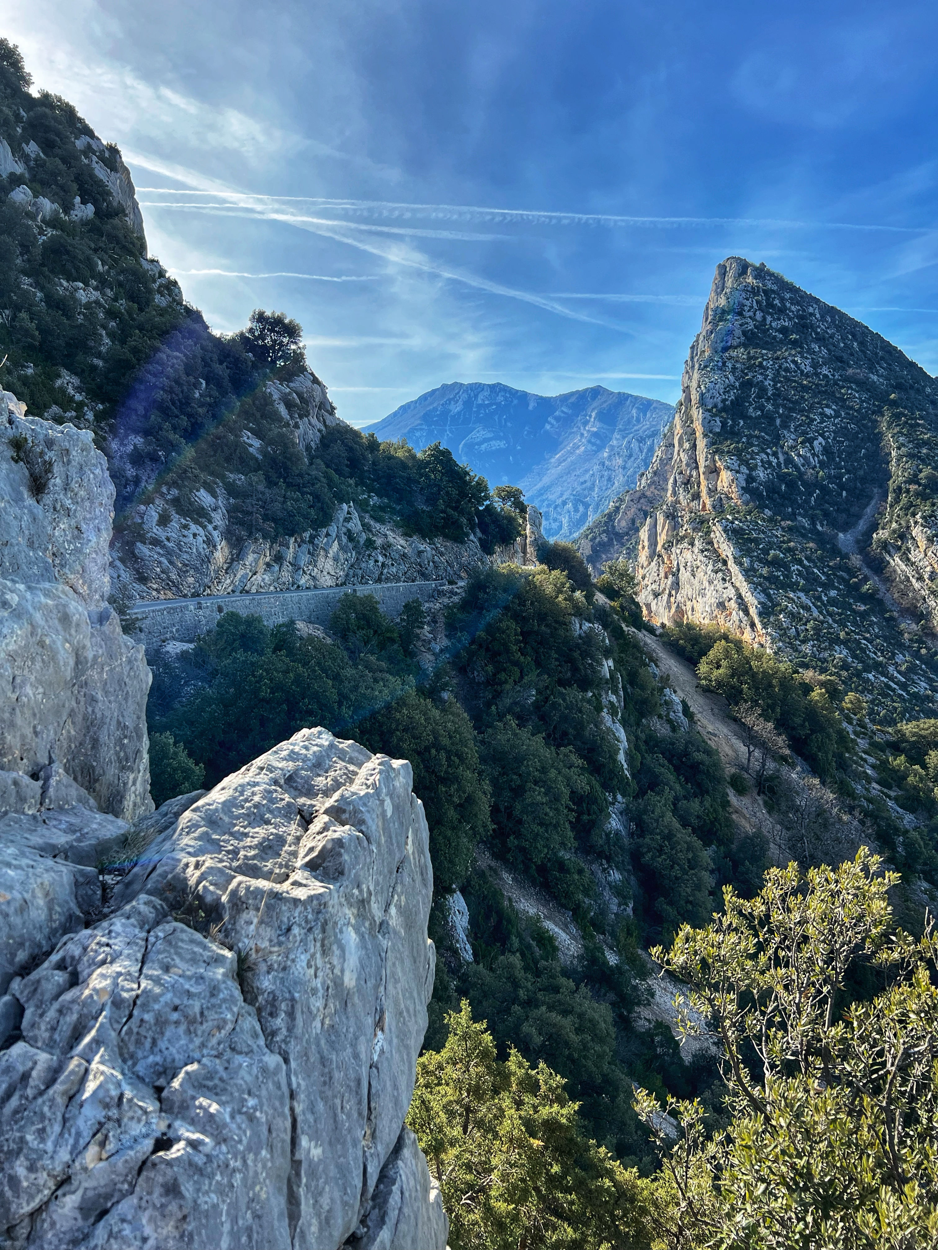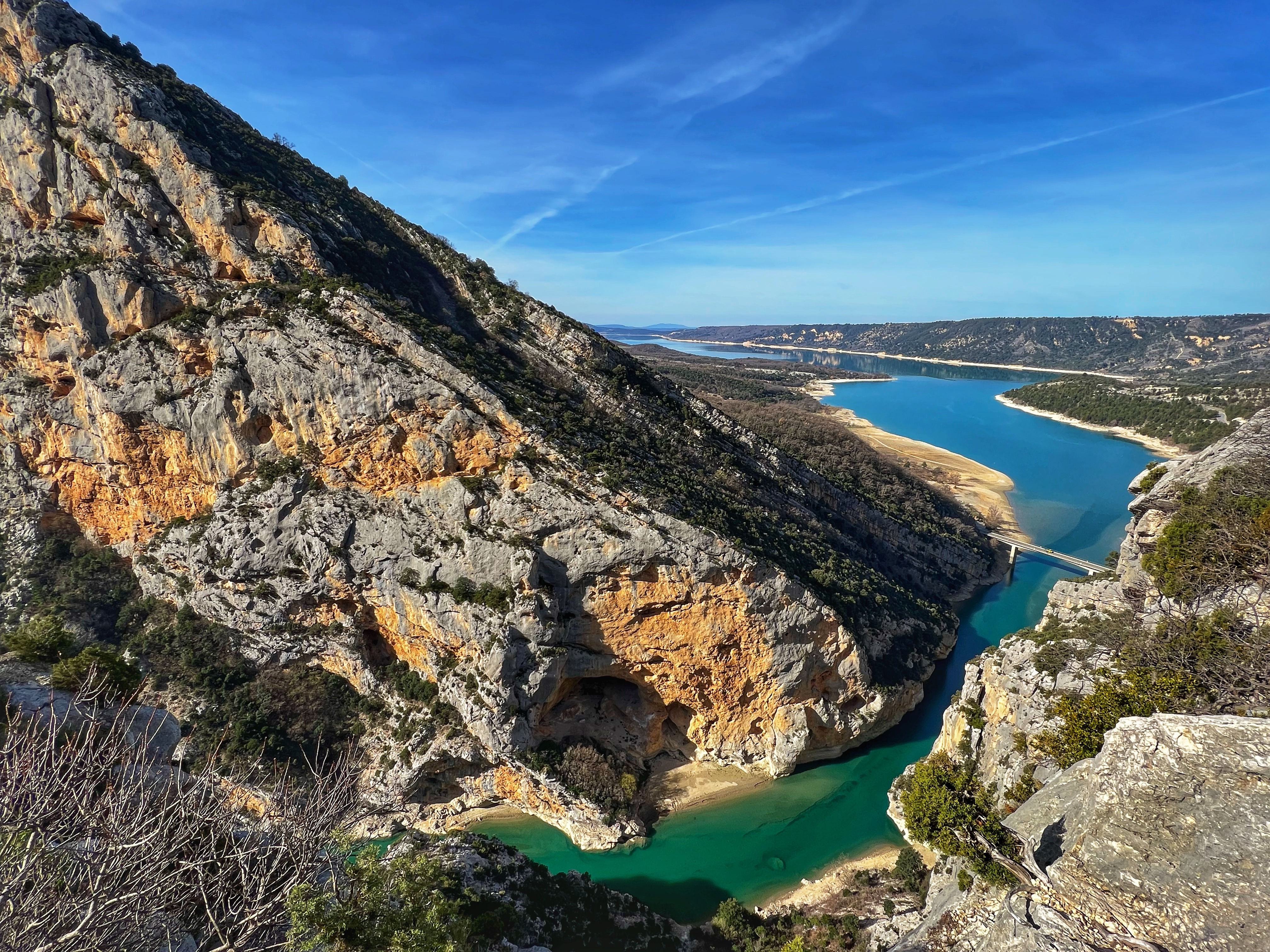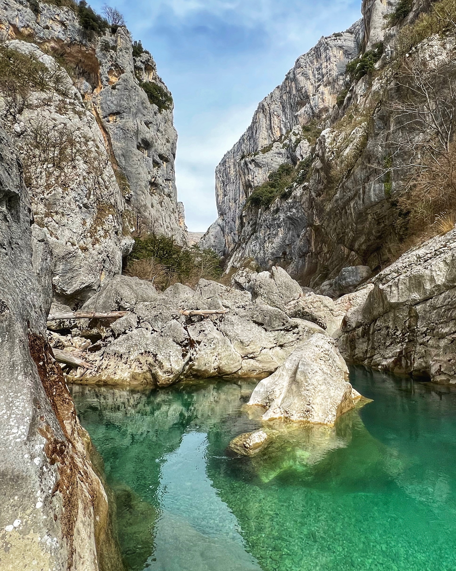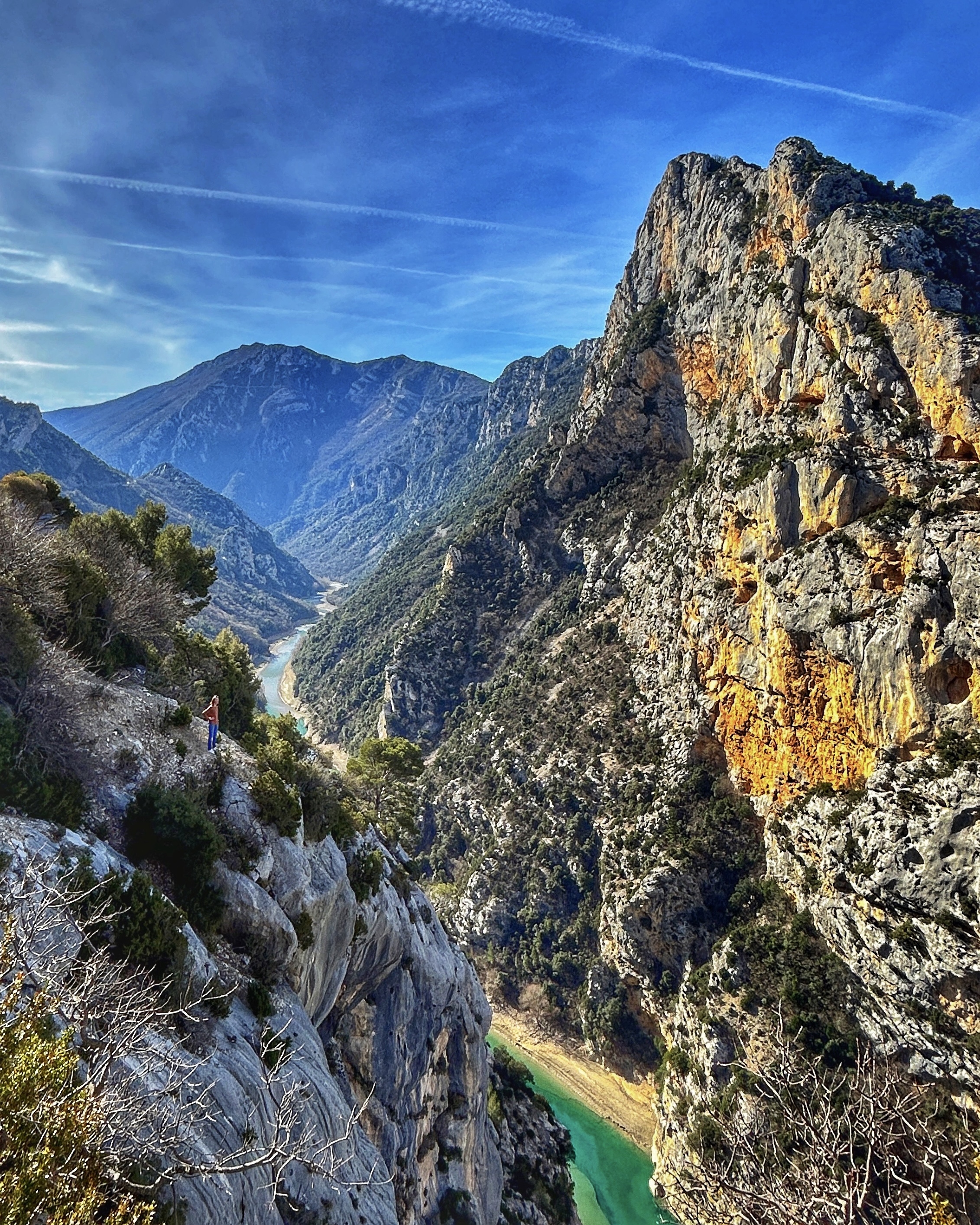 Days 5 and 6 were our favorite days of the whole trip! It’s plain to see why. On our way out of Roumoules we stopped in Riez to grab bakery treats for breakfast at Jean-Pascal et Hélène and Boulangerie Pain Prenelle. This served us well for most of the day for a picnic lunch on the go, too! Then we headed east toward Gorges du Verdon to drive the scenic D952 route. It was SO beautiful! Half of the fun was stopping at each scenic viewpoint along the way, but our ultimate goal was to hike the gorges.