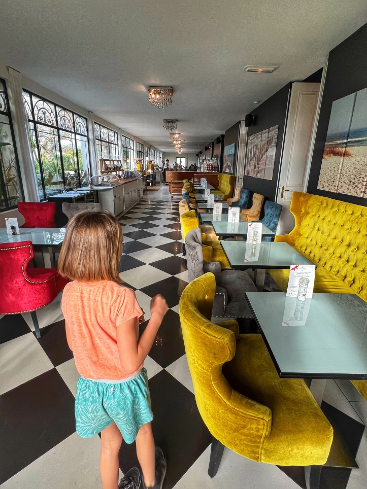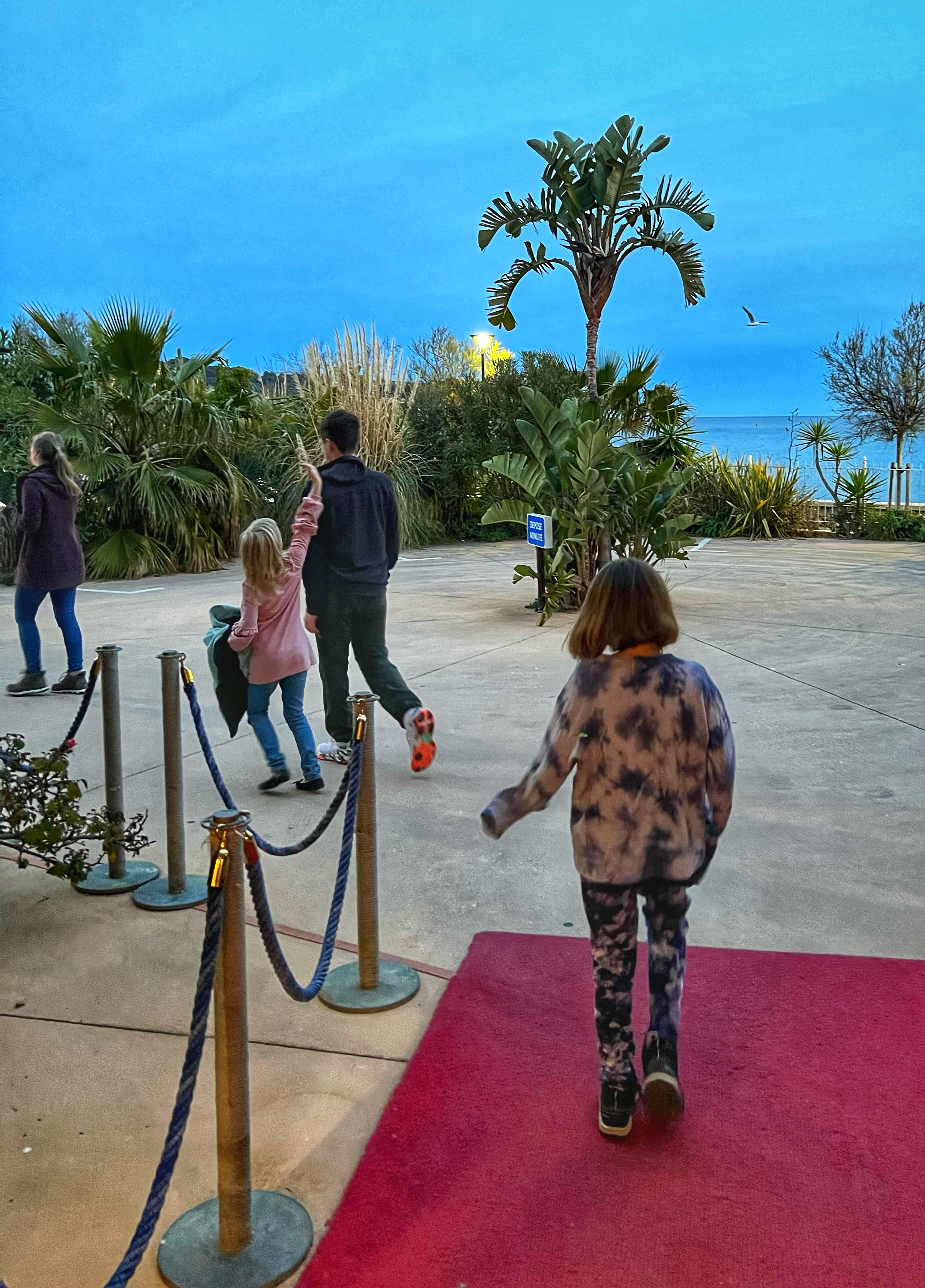 We went straight to our hotel – Grand Hotel des Sablettes Plage, Curio Collection by Hilton (highly recommend!) – and checked in, getting cozy in our robes and checking out the spa area. This hotel was awesome – tons of space in their family rooms, plus parking, pet friendly, beautiful breakfast and great restaurants nearby. We could’ve stayed a week! It was a bit chilly this day though, but that didn’t stop the kids from swimming in the outdoor pool. The staff assured us it was open even though it isn’t a heated pool, but that in March almost no one ever uses it. It sure is great for a cold plunge! There is also a lovely adults only spa area that the kids were bummed they couldn’t use, but the moms snuck away to enjoy it for a bit. It was the only location we stayed for two days and we were so glad as it was just the relaxing retreat we needed after 5 days of road trip grind!