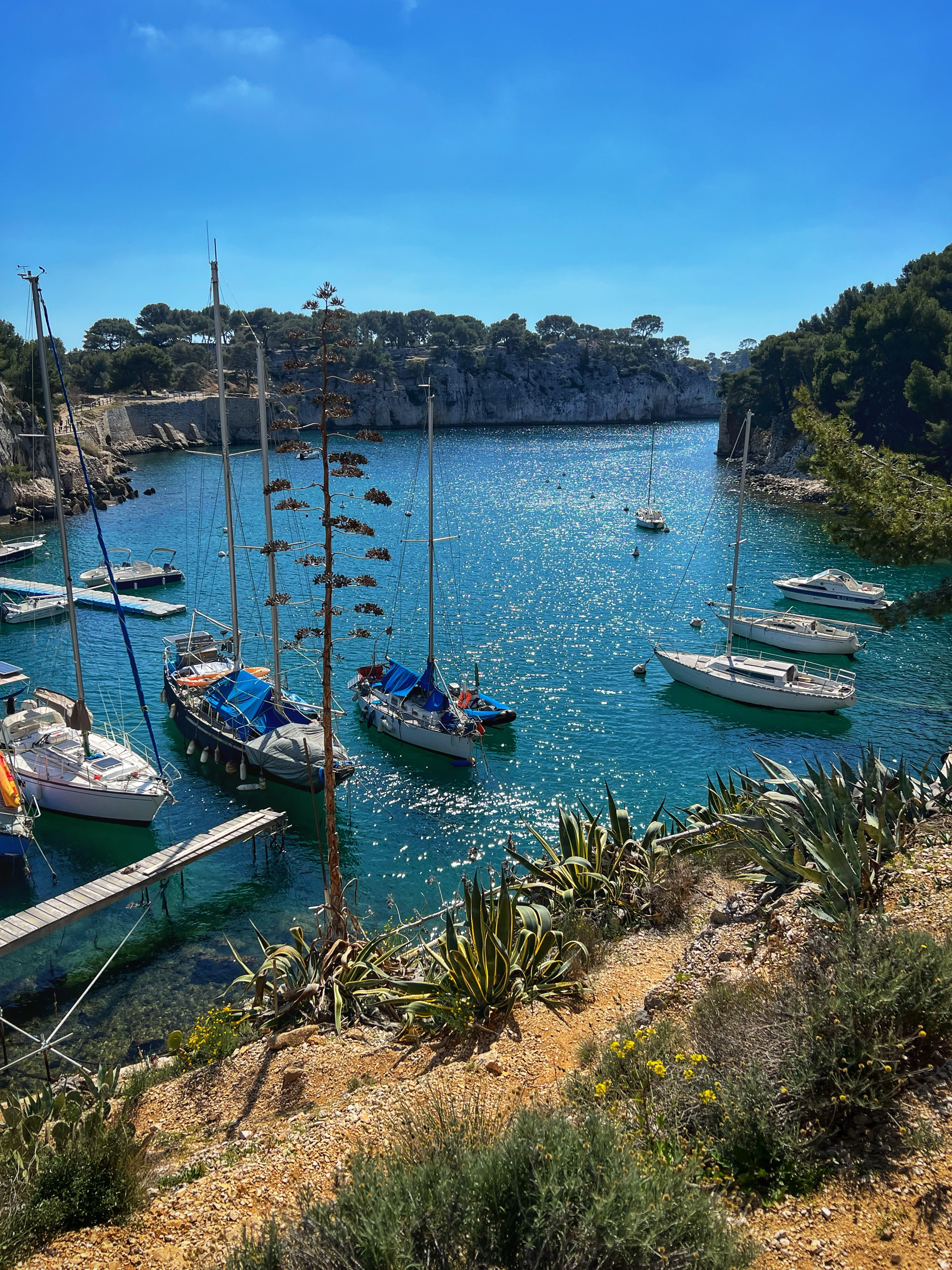 We couldn’t WAIT to hike in the gorgeous Calanque National Park … but it turned out we had to do A LOT of waiting. After breakfast we left the hotel at 10 and didn’t get to the trail head until about 1 PM to hike…2 hours later than we would’ve liked. We hadn’t been paying close enough attention to the news, and apparently during our time in France, there was a major fuel shortage due to strikes in certain ports. Gas stations were closed everywhere for miles, and if we were lucky, signs read “we open from 11-1” or something similar. Once open, many stations were rationing gas. We were in a bit of a pickle, as we definitely needed to fuel up before driving to the Calanques to hike. We tried about 8 gas stations before finding one that was open, but of course the line was astronomically long! It took us about an hour to find the station, then we waited over an hour to fill up – but it was so worth the wait! The south of France really suffered during the strikes. Sadly for them, I don’t think it did any good.