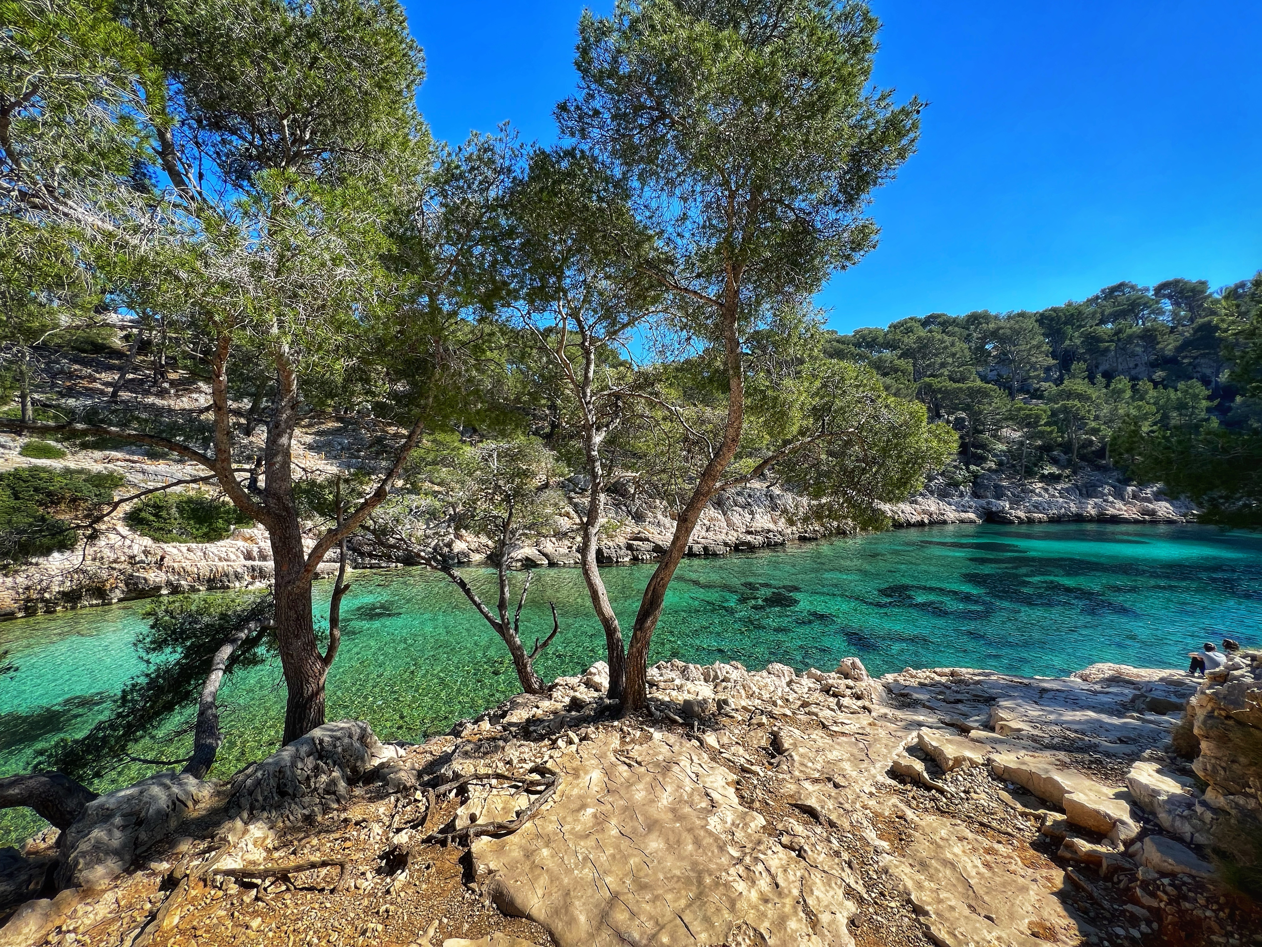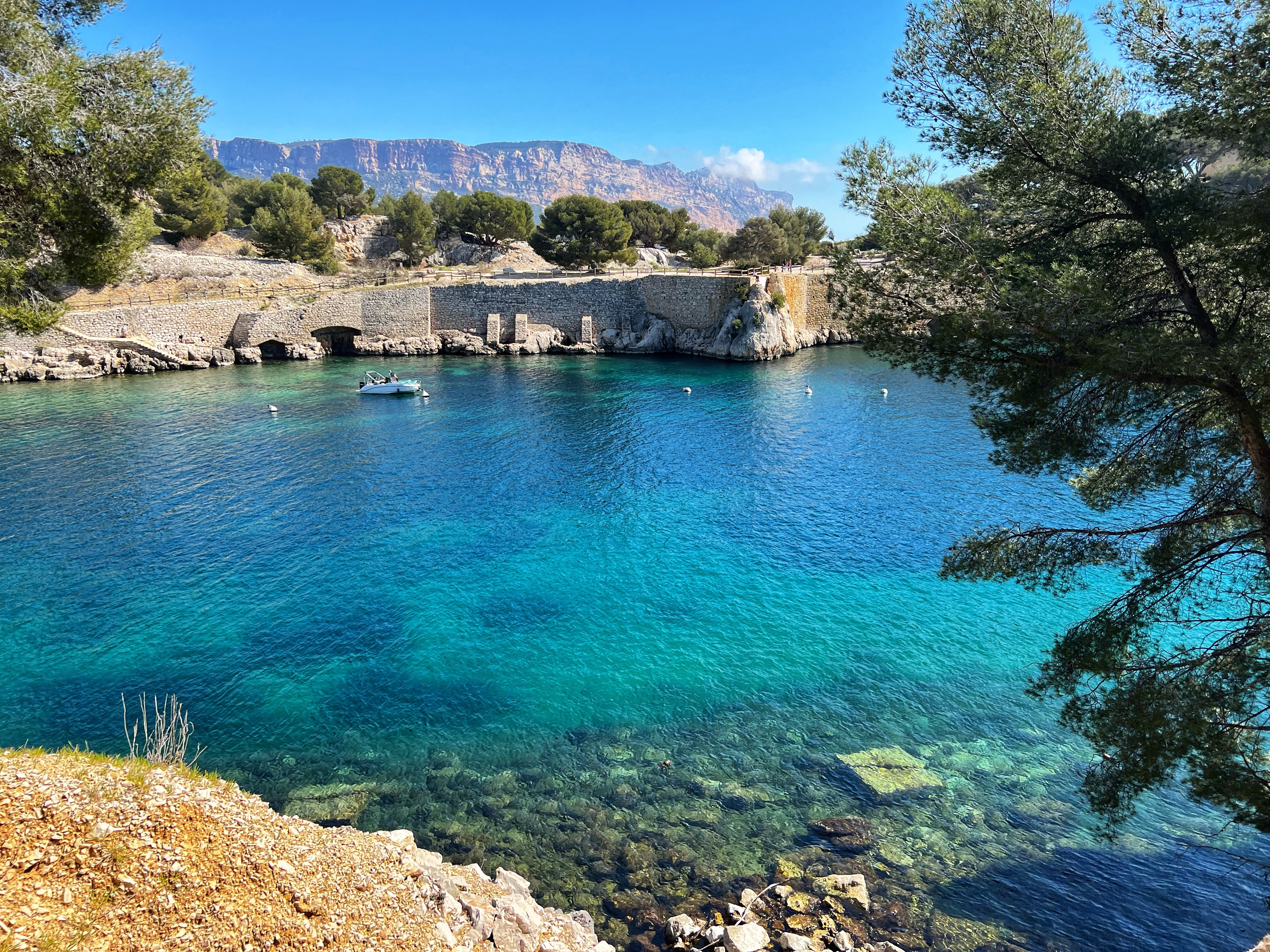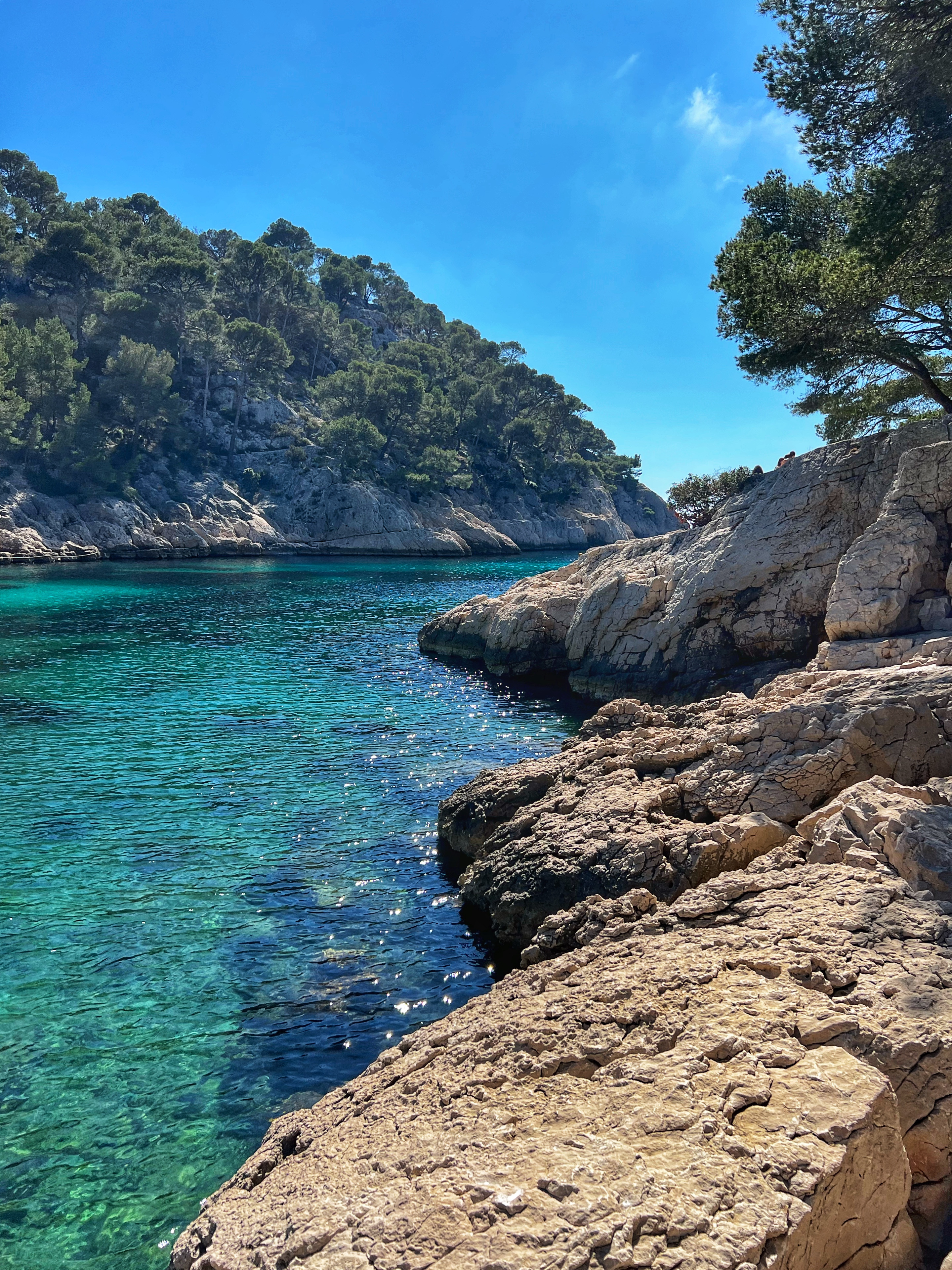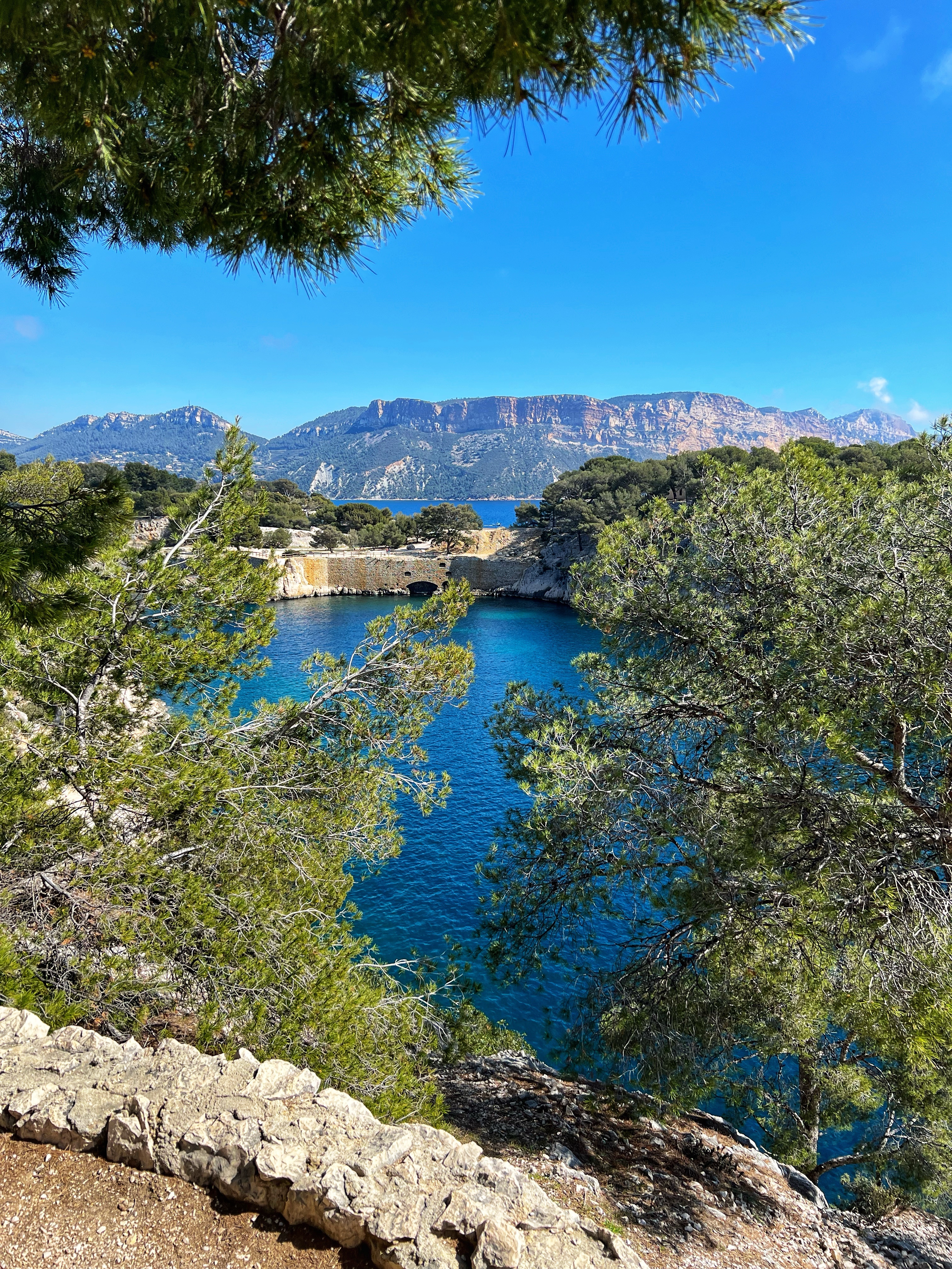 We drove to Cassis and parked along Avenue Notre Dame at the meter parking, which was plentiful. In the summer when it’s busier, I think Parking Calanque Port-Miou Cassis would be the best bet. From there we walked along Ave. de Calanques to the entrance of the park, and followed the trails past Calanque Port Miou, then onto Calanque de Port-Pin. This was definitely the kids’ favorite spot as it had a rocky beach and tons of rocks to climb around on. The hike from the entrance of the park to Port-Pin took approximately 40 minutes, and we took our time as the kids were wandering, stopping for photos, and exploring the entire route.