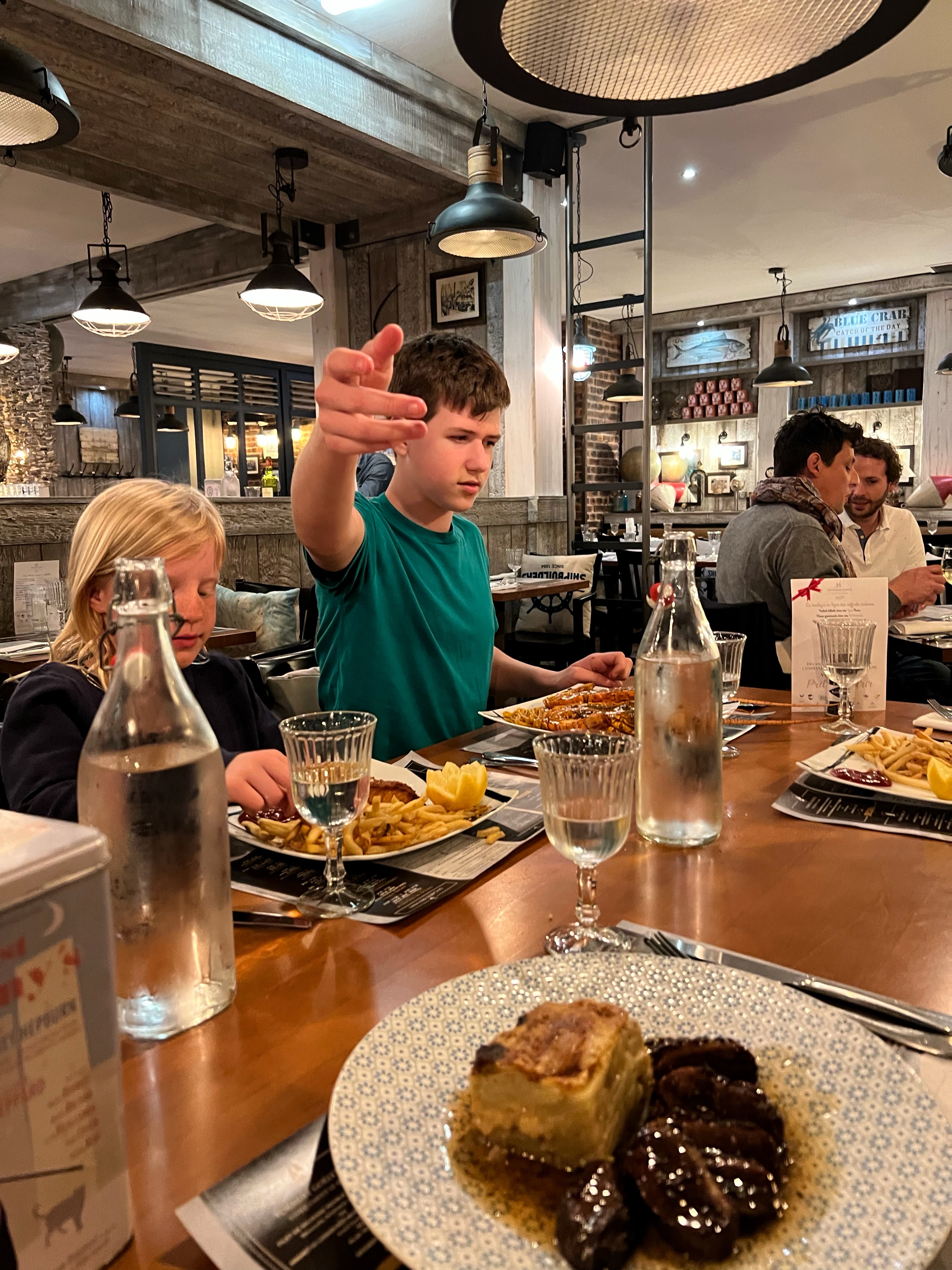 That night we dined at a hotel affiliated restaurant nearby called Navigateur. My girls tried oysters for the first time (to mixed reviews) and everyone had the most delicious seafood meals! It’s worth mentioning that our meals in France were so delicious, and the kids were all really good sports about staying up late to eat. My oldest is a growing teen, so he was falling asleep in his food most nights but he’s a food lover so it was motivating to stay awake! The food is – and should be – a big priority when traveling, especially in France, but keep in mind the timing of things when traveling with kids. It was also wonderful to see all the kids practicing their French! They did great!