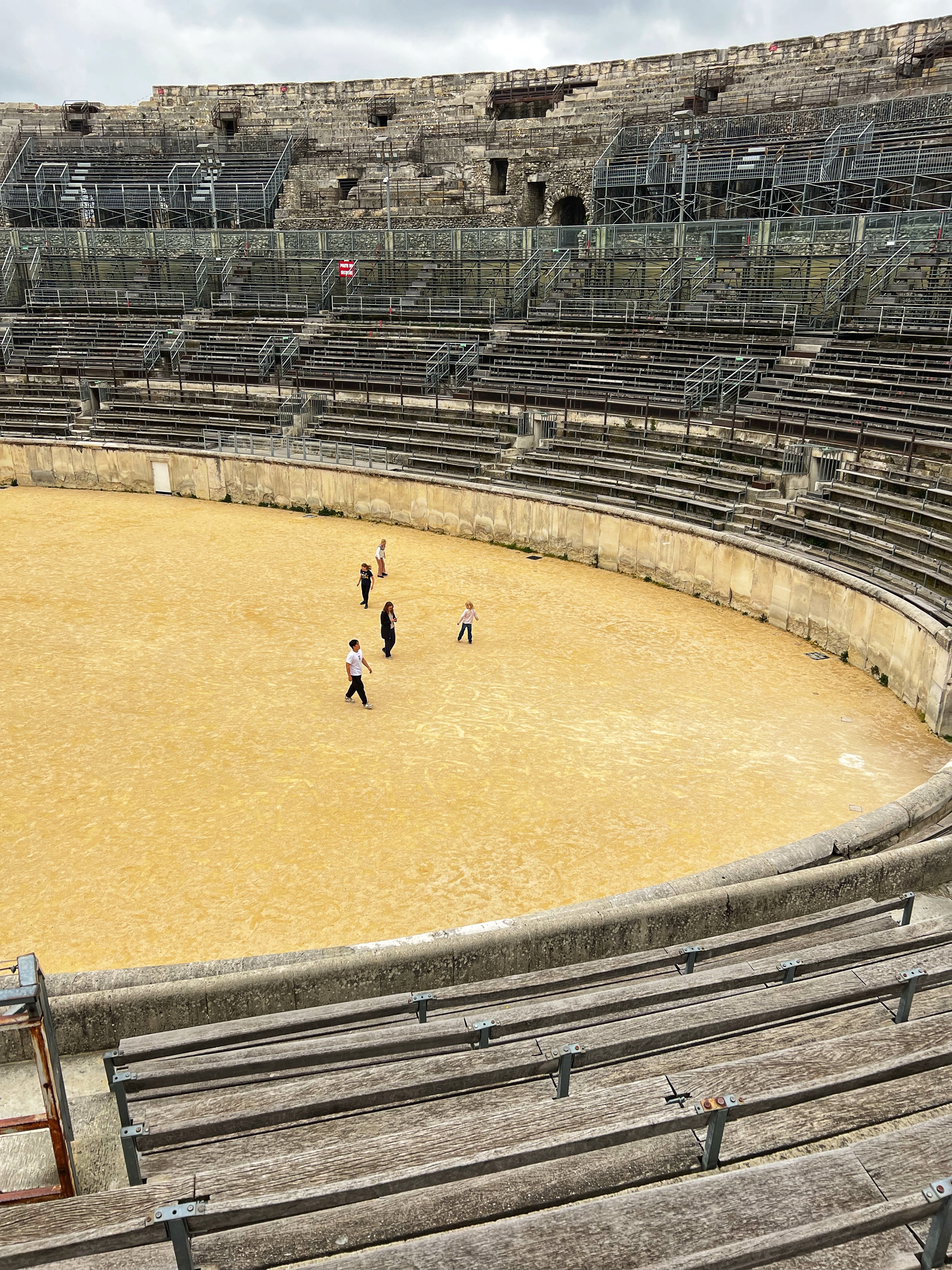 Needless to say I was a zombie the rest of the day, completely swept up in the emotion of it all, and probably wasn’t a great host or guide – in a daze soaking up the moments with my mustachioed man. We sat down for a light lunch at a cafe (not worth mentioning here) and although we would’ve loved to explore Marseille more, we were on a time crunch. We drove about 90 minutes to Nîmes to try to catch a quick tour of the infamous amphitheater before it closed.