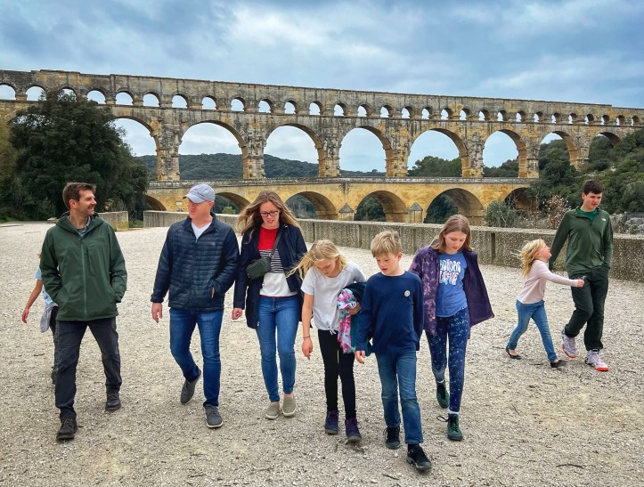 Today was mostly a travel day – on the road heading north, trying to bang out the miles as our guests would be departing the next day. Before leaving the Provence region we had one more stop, and then it was onward to Semer-en-Auxois for the night. We were excited to rent en entire home where we could all stay together and just hang out for the evening. After a quick continental breakfast at the hotel and stop at a local bakery for provisions, we drove about 30 minutes north to Pont du Gard.