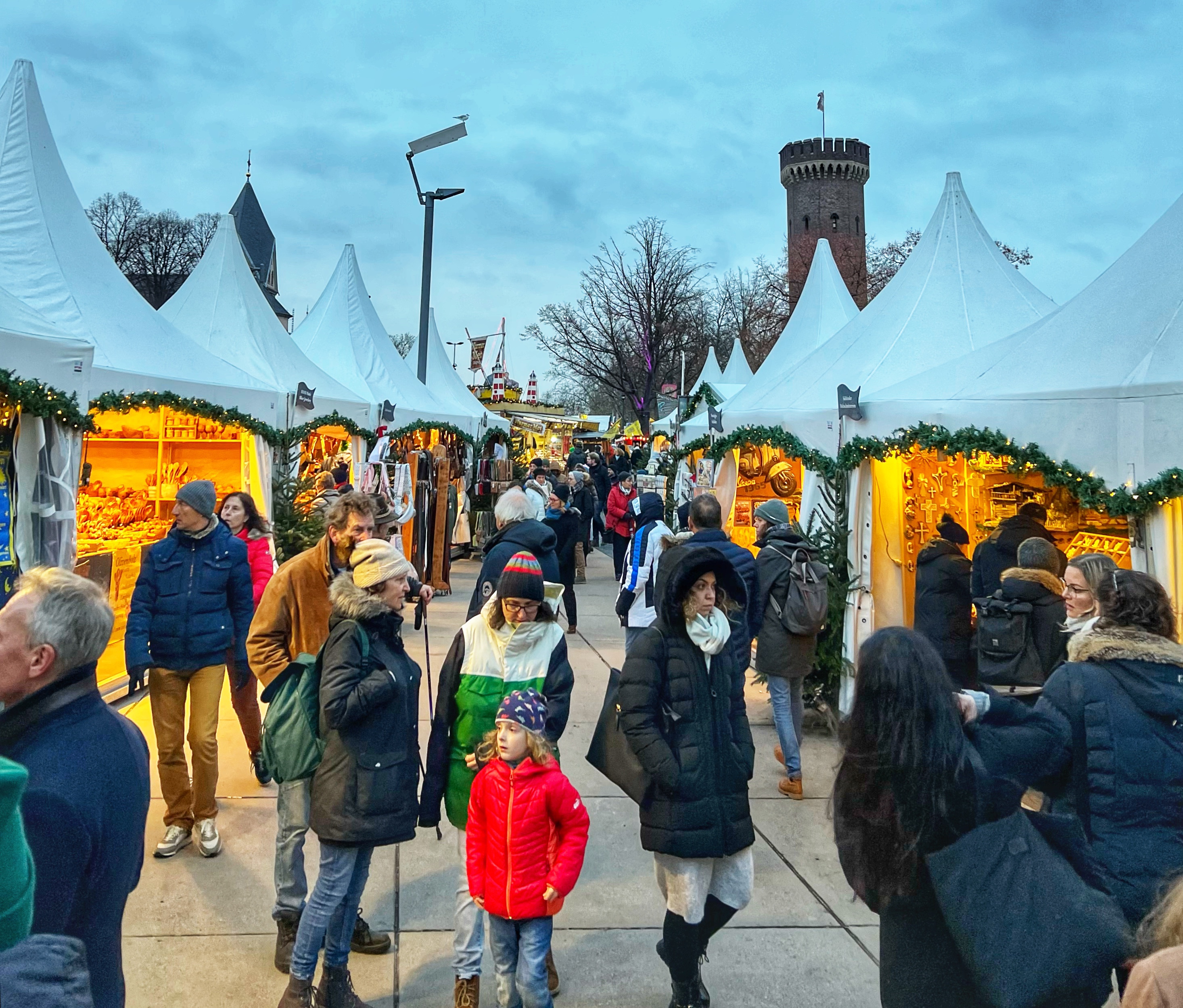 Billed as the “smallest Christmas market” in the city. Veihnachtsmarkt is hosted by volunteers and all proceeds from the huts are donated to aid projects. “Hot mulled wine, cool Kölsch beer, a changing range of food and evening live music by great Cologne bands ensure a happy and contemplative atmosphere every year.”