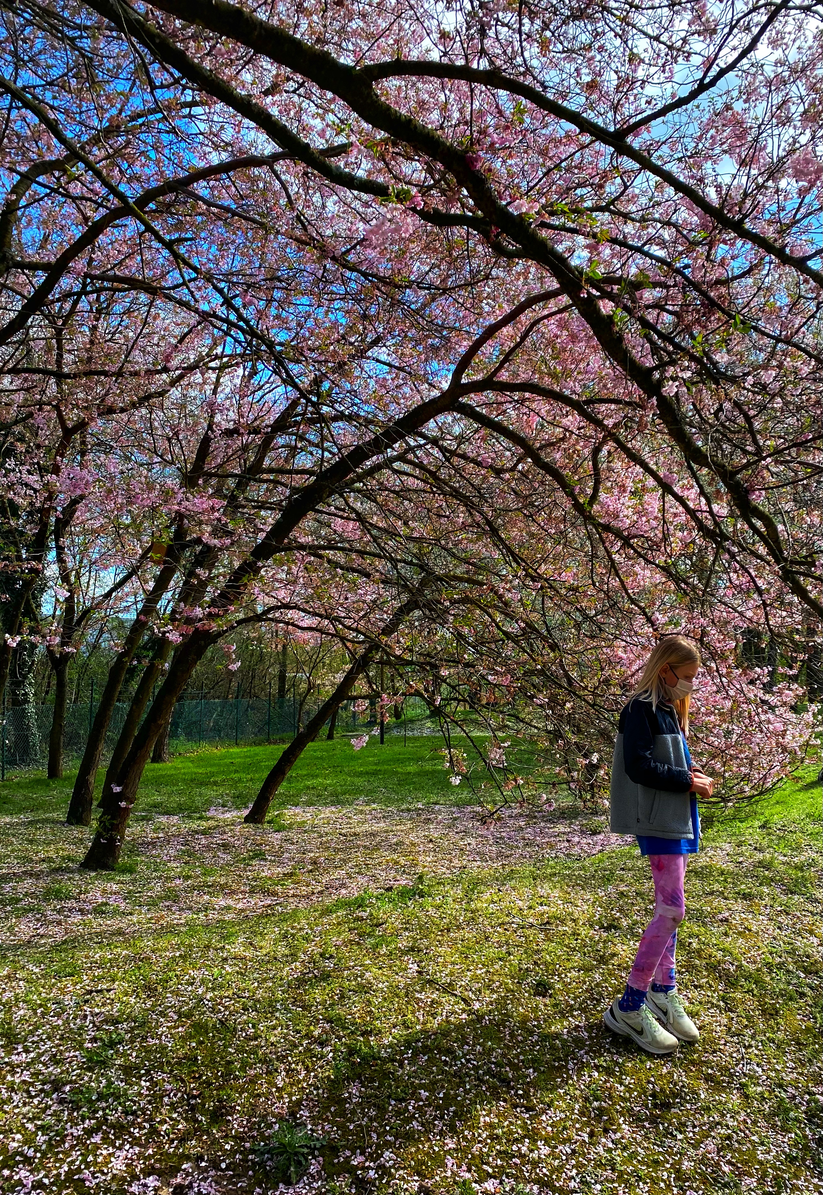 Often the tree blossoms will peak in early to mid April, but sometimes they start in mid to late March depending on the variety. I am a sucker for a good tree lined path or road!