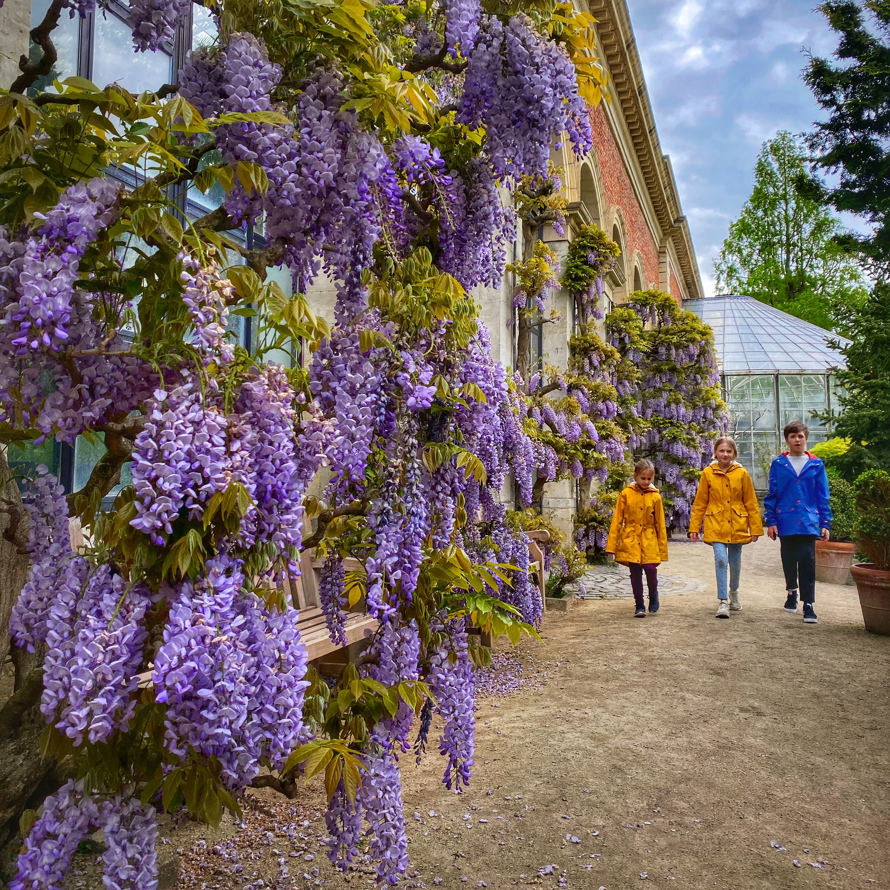 Loire Valley, France: Château Chenonceau. The fancy affluent French royalty always wanted to have the most beautiful trees and gardens, so most chateaus in France have wisteria somewhere on the property (often on fences or building facades). Château Chenonceau has incredible wisteria that we saw in April and were a bit early to see peak in May. If you can visit the Loire Valley, May is the perfect time to go!