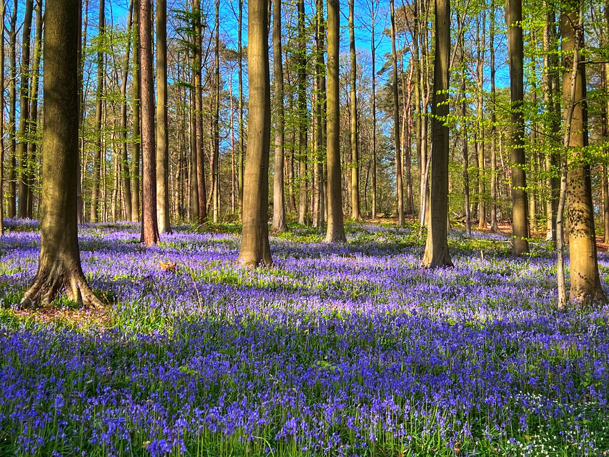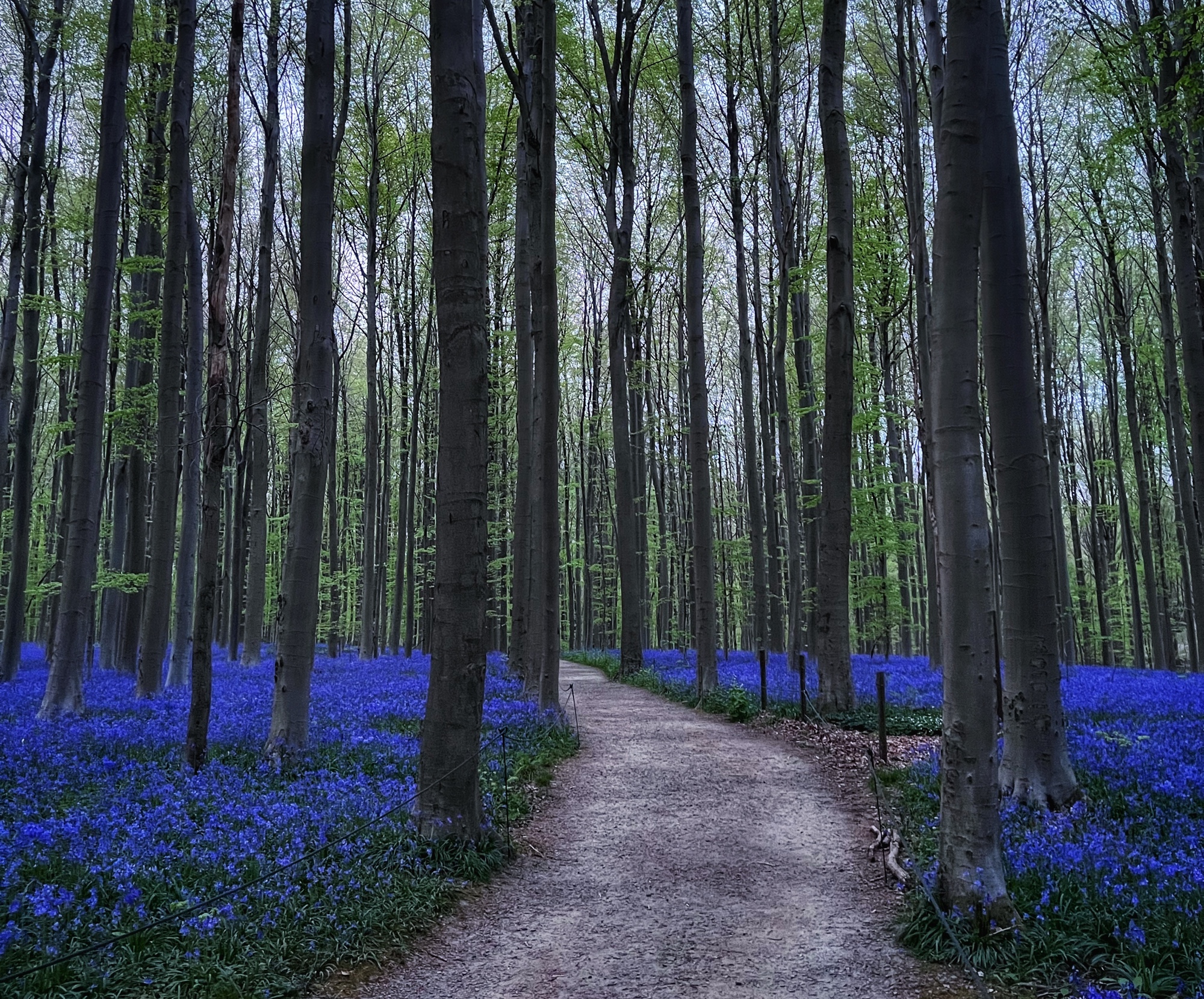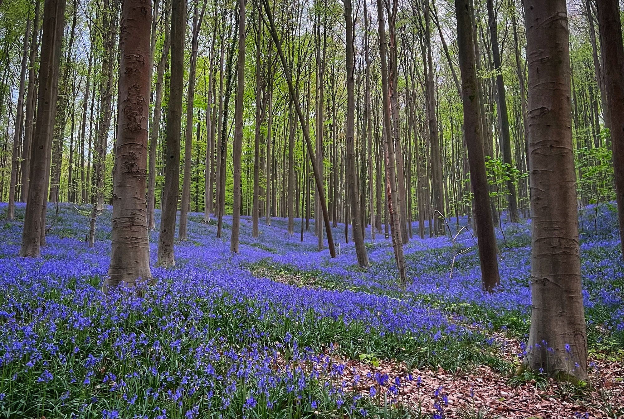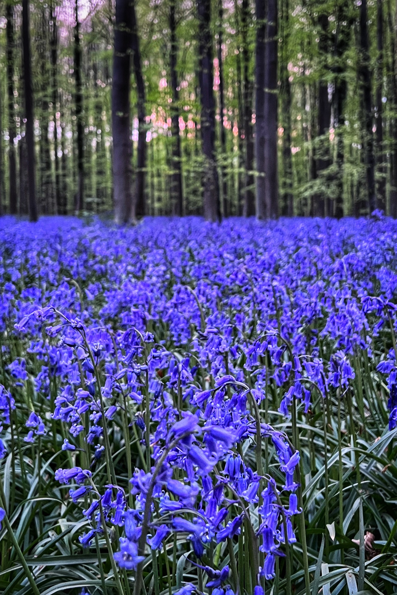 Hallerbos, Belgium: Bluebell forest Parking 1. This incredible protected area boasts the most beautiful collection of bluebells I have ever seen – and smelled! Follow the blue/purple trails in map below, with the best area circled in red. Check online under hashtag Hallerbos to visit during peak season in mid April.