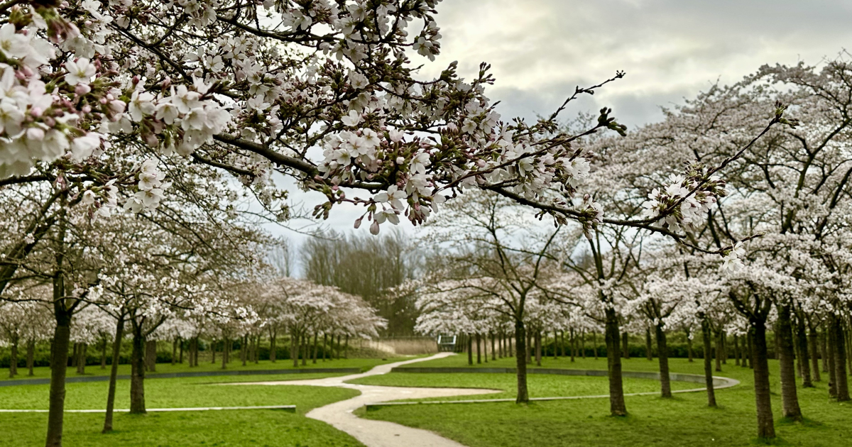 Amsterdam, Netherlands: Bloesempark. This large park outside of the city near the airport is chock full of white blossoms that you can wander and explore for hours. It’s a great place for a picnic! Amsterdam downtown at Museumplein near the Van Gogh museum has lovely rows of cherry blossoms as well.